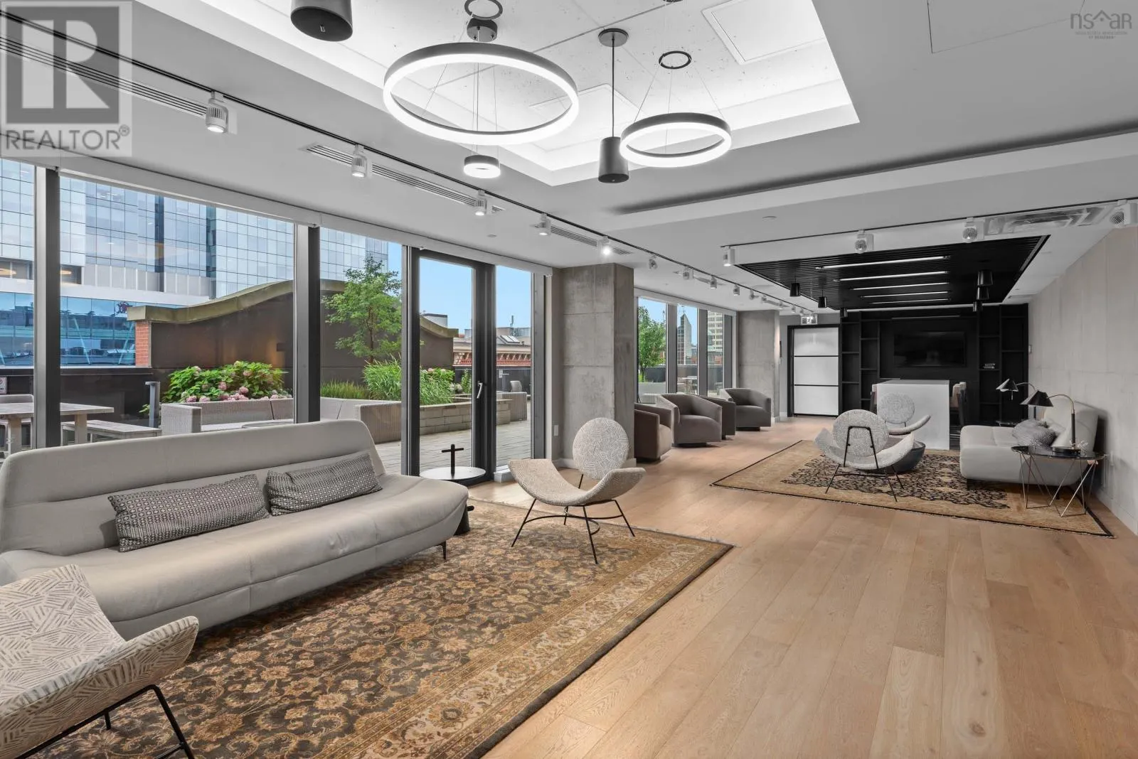 Sackville to Granville Experience an elevated living experience of classic grandeur and modern comfort in the heart of Halifax. The iconic design by Page + Steele IBI Group and Union 31 reinvigorates one of downtown Halifax's landmark buildings. The Roy is the perfect balance of aesthetic and practical considerations. Enjoy floor to ceiling windows that flood the room with sun and dynamic views of our beautiful city. The kitchen island has seating for 4 and is lined with quartz. Setting this unit apart is an upgraded kitchen appliance package, custom motorized blinds, and in-unit laundry. The set back terrace allows you to experience the vibe of the city while enjoying incredible views of the Halifax Harbor in both directions. The Roy Club occupies the entire 8th floor of the building (10,000 square feet) and is exclusively available to residents. Rejuvenate yourself in the pool, sauna, steam room, or private treatment room. Stay active year-round in the yoga room and the well-equipped fitness center. Curl up with a book in the library, watch a film or the big game in the theatre, or play billiards. If you're entertaining, there is a party room, dining space, a kitchen and a bar, as well as a BBQ on the furnished terrace. Overnight guests will enjoy having their own space in the guest suite. (id:27476)