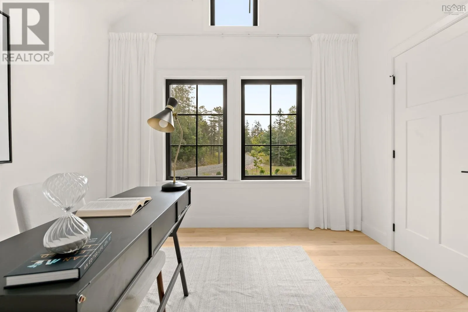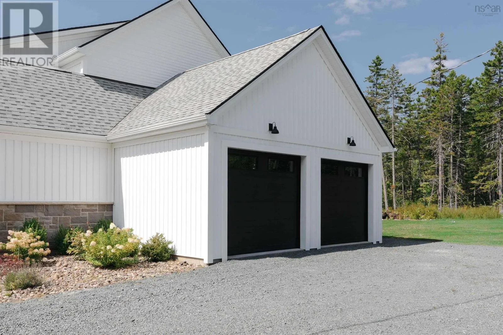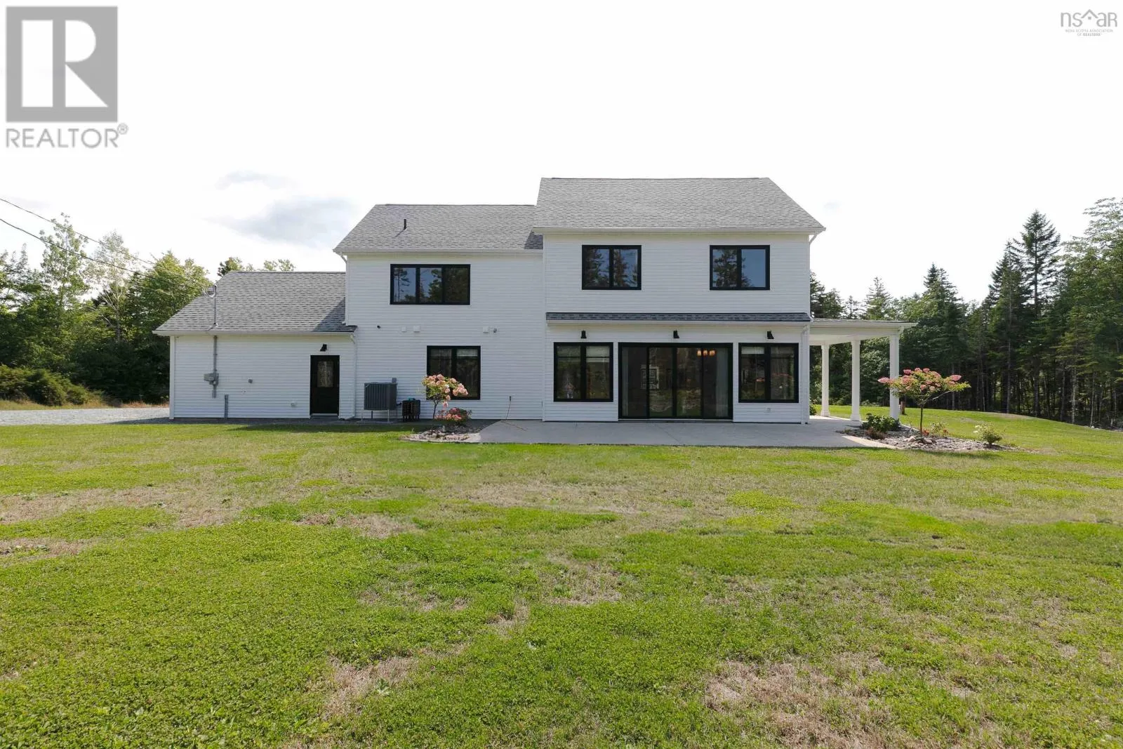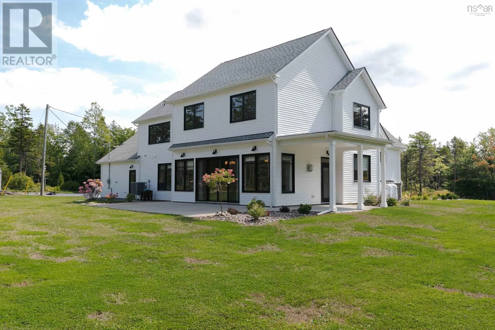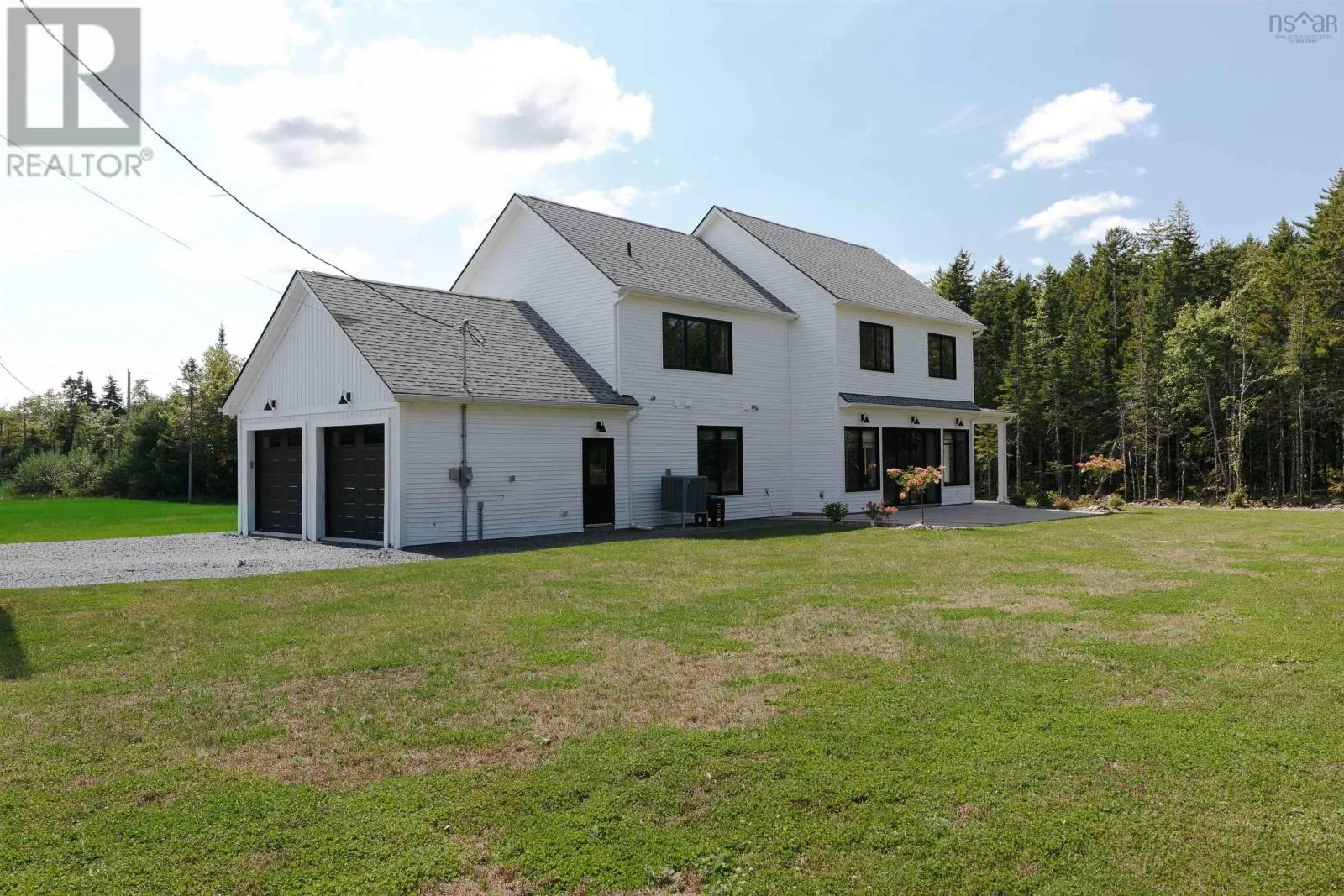 Hammonds Plains Rd to Voyageur Way to Civic 709. Set at the end of a long, private drive and embraced by two acres of level land, this 4-year-young residence by Highgate Homes is a study in contemporary elegance and everyday ease. Nearly 3,400 square feet of bright, open living unfold beneath soaring vaulted ceilings, where walls of well-placed windows frame the beauty of Voyageur Lakes' natural landscape. Inside, the palette is fresh and refined - clean lines, generous proportions, and a thoughtful layout designed for connection. At the heart of the home, a sleek open-concept living space gathers around a propane fireplace, with natural light streaming in to animate every corner. Flowing seamlessly into this space, the kitchen is a showpiece in its own right: wide open and perfectly arranged for both casual meals and culinary ambition. A dramatic quartz island anchors the room, complimented by top-tier appliances and a pantry that keeps all the details within reach. For more formal occasions, the dining room is expansive, yet intimate, thoughtfully designed to turn even the simplest gatherings into an elegant affair. Even the practical details are elevated, from a well-placed mudroom with direct access to the heated double garage, to convenient upper-level laundry. Comfort comes standard with in-floor heating on the main level, a fully ducted system for year-round climate control, and a wired security system for peace of mind. Five spacious bedrooms, plus a generous office/den provide room for all. Four full baths, each crisp and beautifully appointed, carry the home's understated luxury throughout. Step outside and the lifestyle expands: a wide level lawn for play, landscaped gardens, and a covered porch that invites you to linger long after the day is done. Here, you can enjoy the balance of convenience and calm - great schools, shops, and cafes just minutes away, with wooded trails and natural beauty all around. This is more than a home - it's a lifestyle, carefully crafted and waiting to be lived. (id:27476)
