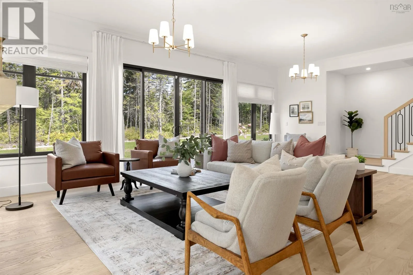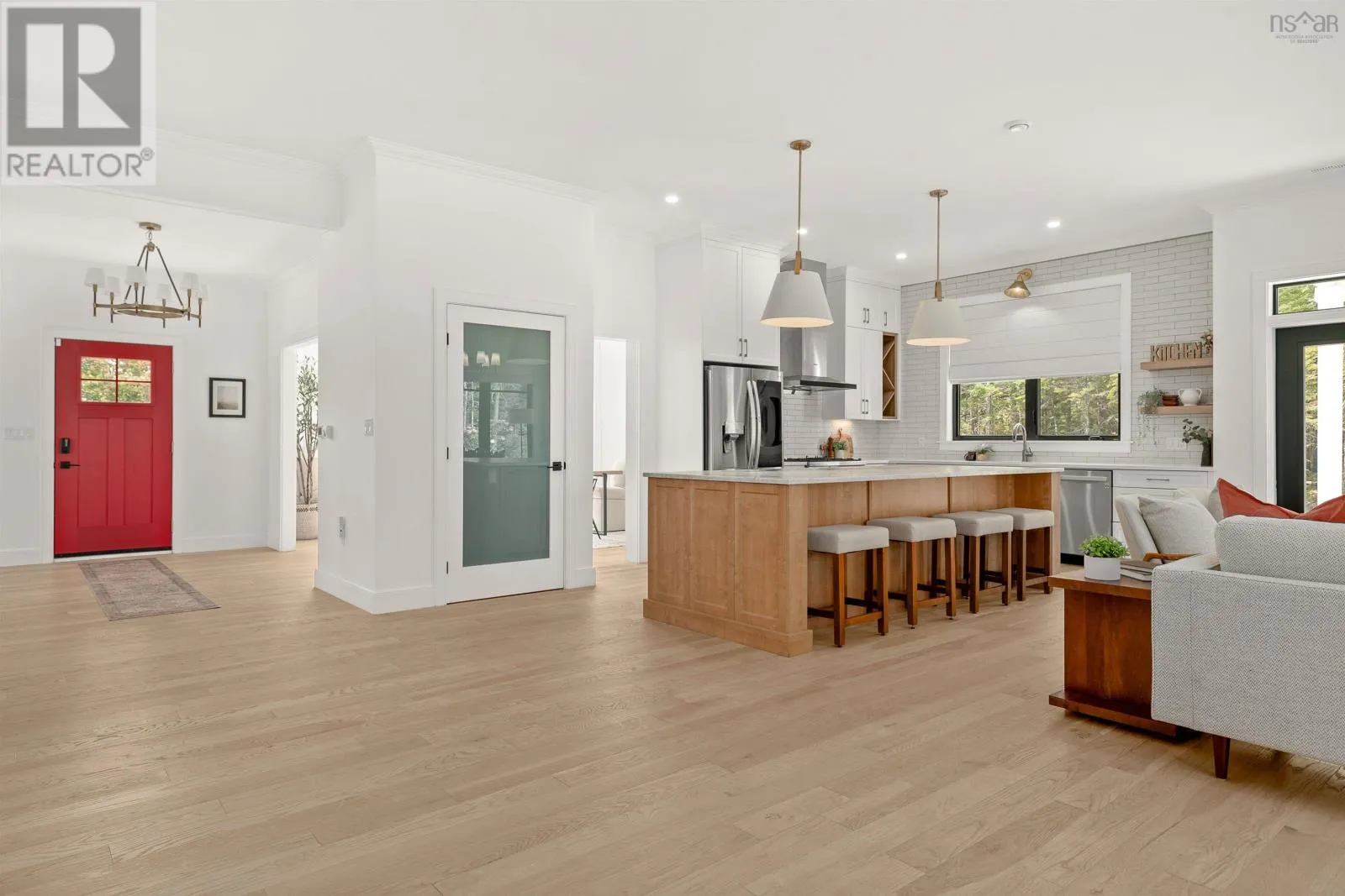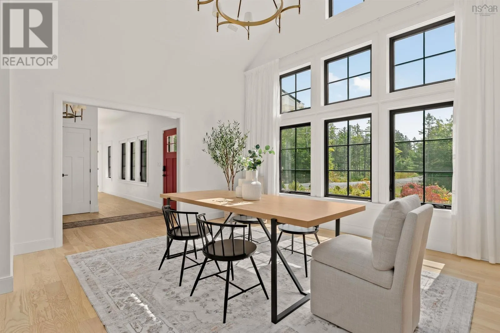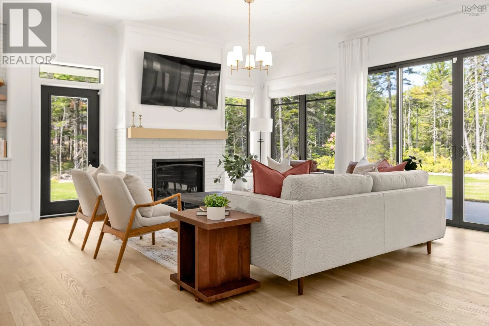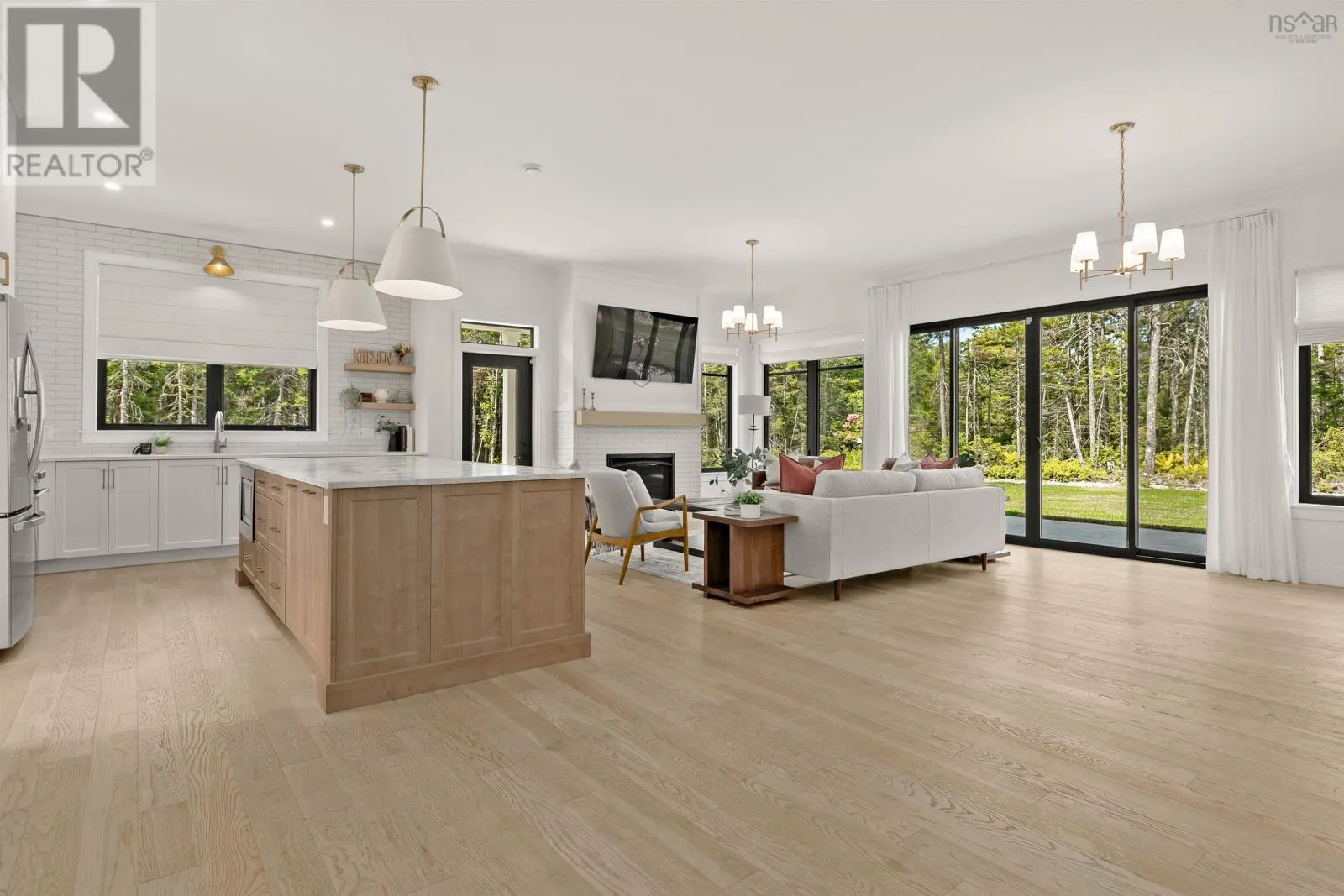 Hammonds Plains Rd to Voyageur Way to Civic 709. Set at the end of a long, private drive and embraced by two acres of level land, this 4-year-young residence by Highgate Homes is a study in contemporary elegance and everyday ease. Nearly 3,400 square feet of bright, open living unfold beneath soaring vaulted ceilings, where walls of well-placed windows frame the beauty of Voyageur Lakes' natural landscape. Inside, the palette is fresh and refined - clean lines, generous proportions, and a thoughtful layout designed for connection. At the heart of the home, a sleek open-concept living space gathers around a propane fireplace, with natural light streaming in to animate every corner. Flowing seamlessly into this space, the kitchen is a showpiece in its own right: wide open and perfectly arranged for both casual meals and culinary ambition. A dramatic quartz island anchors the room, complimented by top-tier appliances and a pantry that keeps all the details within reach. For more formal occasions, the dining room is expansive, yet intimate, thoughtfully designed to turn even the simplest gatherings into an elegant affair. Even the practical details are elevated, from a well-placed mudroom with direct access to the heated double garage, to convenient upper-level laundry. Comfort comes standard with in-floor heating on the main level, a fully ducted system for year-round climate control, and a wired security system for peace of mind. Five spacious bedrooms, plus a generous office/den provide room for all. Four full baths, each crisp and beautifully appointed, carry the home's understated luxury throughout. Step outside and the lifestyle expands: a wide level lawn for play, landscaped gardens, and a covered porch that invites you to linger long after the day is done. Here, you can enjoy the balance of convenience and calm - great schools, shops, and cafes just minutes away, with wooded trails and natural beauty all around. This is more than a home - it's a lifestyle, carefully crafted and waiting to be lived. (id:27476)
