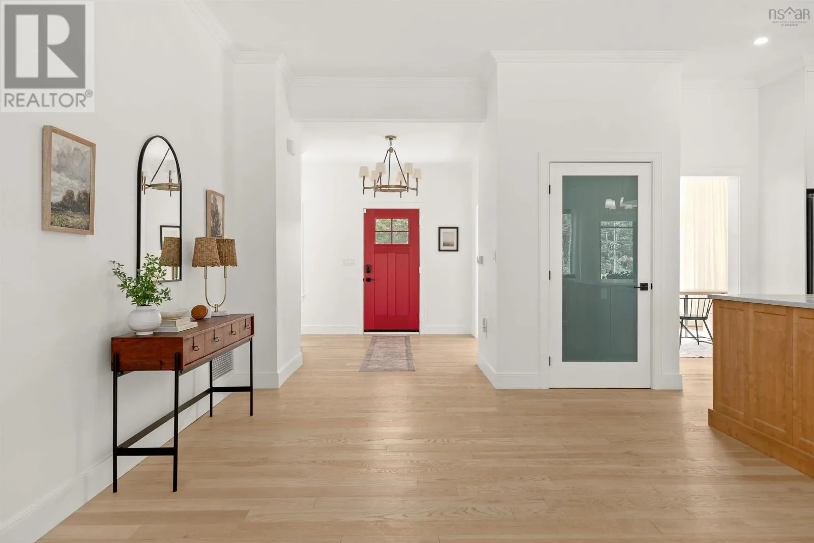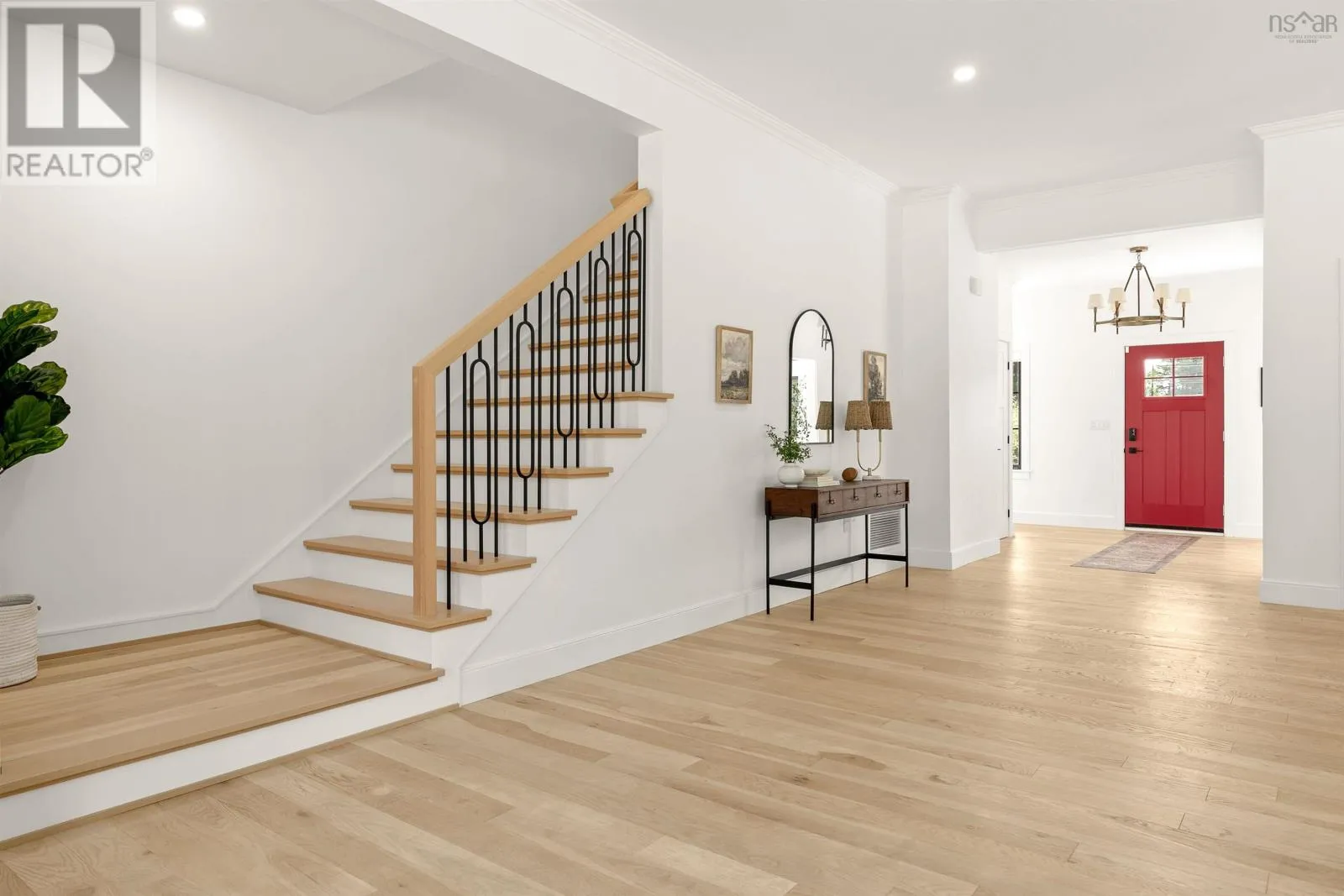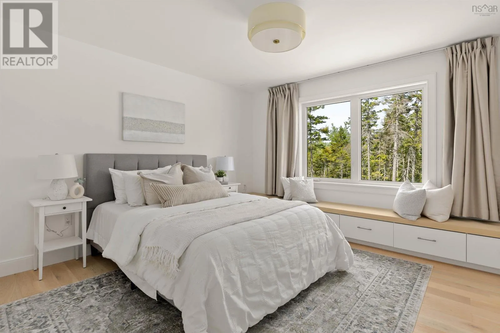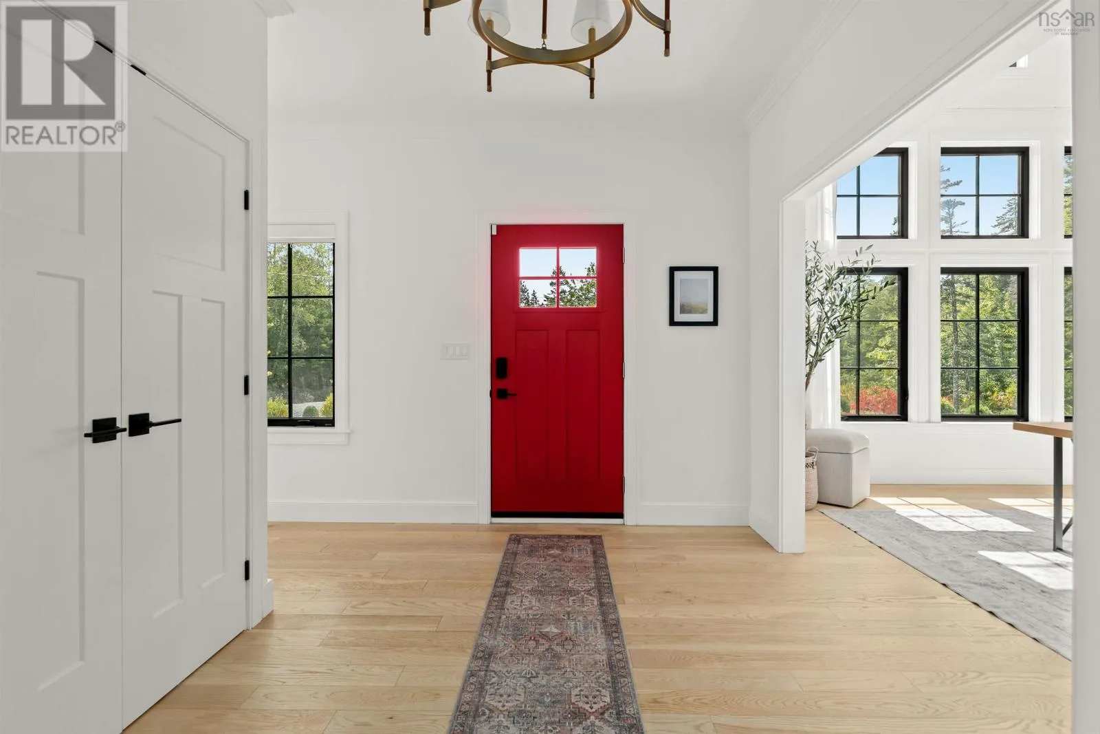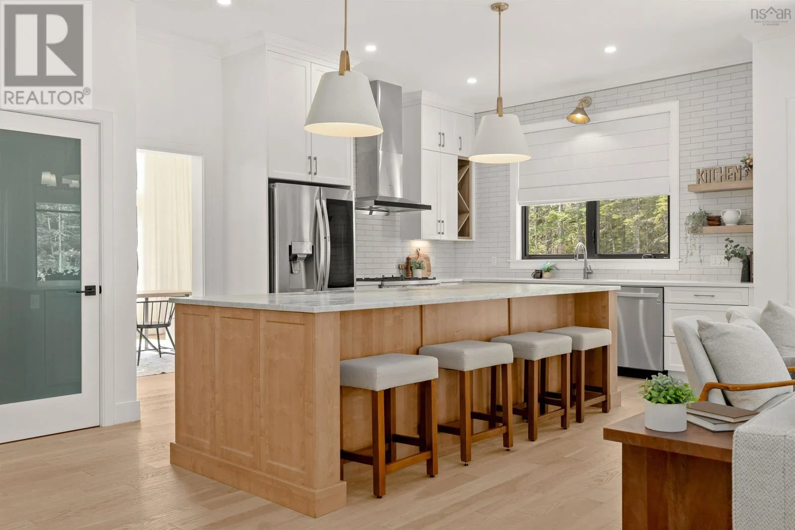 Hammonds Plains Rd to Voyageur Way to Civic 709. Set at the end of a long, private drive and embraced by two acres of level land, this 4-year-young residence by Highgate Homes is a study in contemporary elegance and everyday ease. Nearly 3,400 square feet of bright, open living unfold beneath soaring vaulted ceilings, where walls of well-placed windows frame the beauty of Voyageur Lakes' natural landscape. Inside, the palette is fresh and refined - clean lines, generous proportions, and a thoughtful layout designed for connection. At the heart of the home, a sleek open-concept living space gathers around a propane fireplace, with natural light streaming in to animate every corner. Flowing seamlessly into this space, the kitchen is a showpiece in its own right: wide open and perfectly arranged for both casual meals and culinary ambition. A dramatic quartz island anchors the room, complimented by top-tier appliances and a pantry that keeps all the details within reach. For more formal occasions, the dining room is expansive, yet intimate, thoughtfully designed to turn even the simplest gatherings into an elegant affair. Even the practical details are elevated, from a well-placed mudroom with direct access to the heated double garage, to convenient upper-level laundry. Comfort comes standard with in-floor heating on the main level, a fully ducted system for year-round climate control, and a wired security system for peace of mind. Five spacious bedrooms, plus a generous office/den provide room for all. Four full baths, each crisp and beautifully appointed, carry the home's understated luxury throughout. Step outside and the lifestyle expands: a wide level lawn for play, landscaped gardens, and a covered porch that invites you to linger long after the day is done. Here, you can enjoy the balance of convenience and calm - great schools, shops, and cafes just minutes away, with wooded trails and natural beauty all around. This is more than a home - it's a lifestyle, carefully crafted and waiting to be lived. (id:27476)