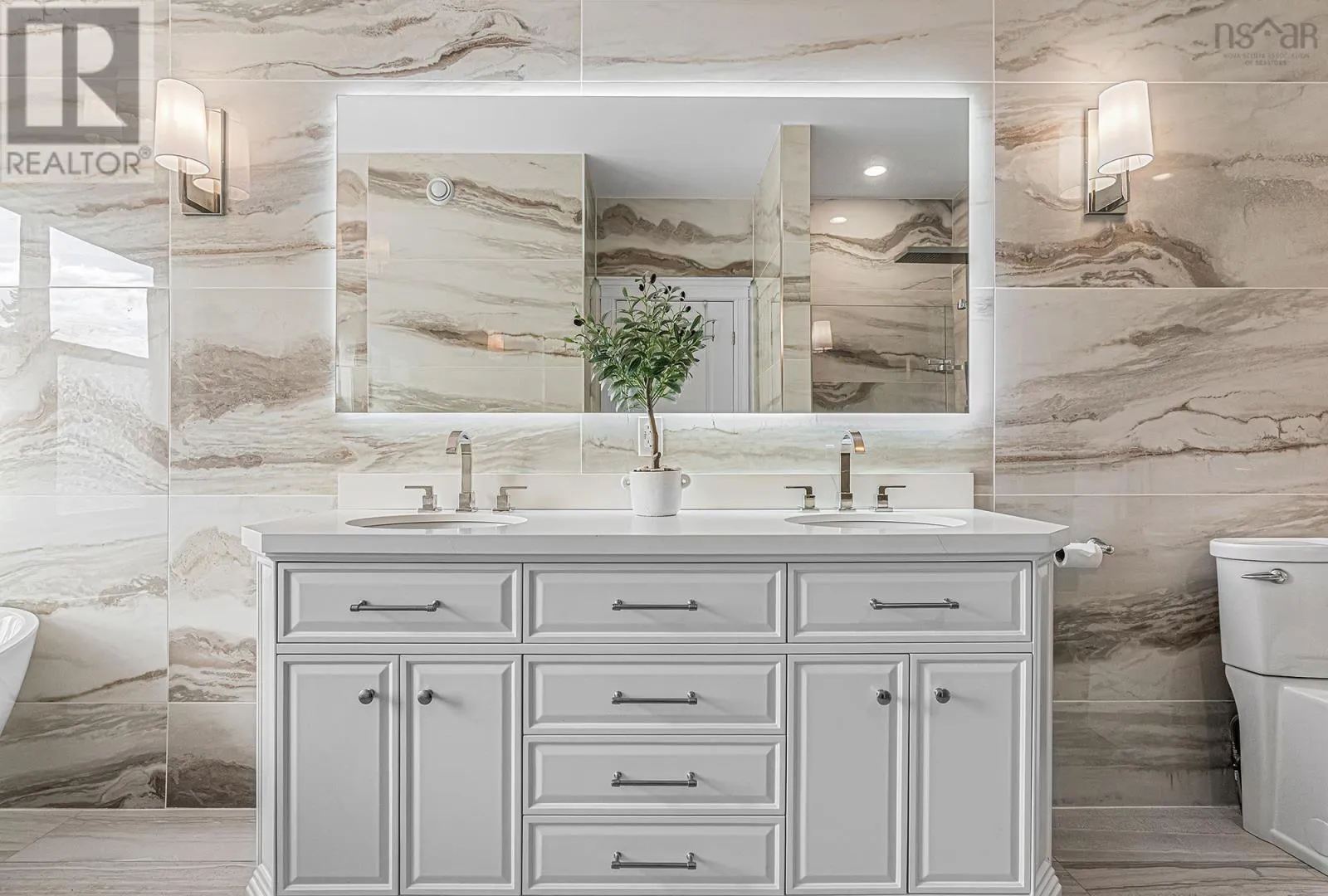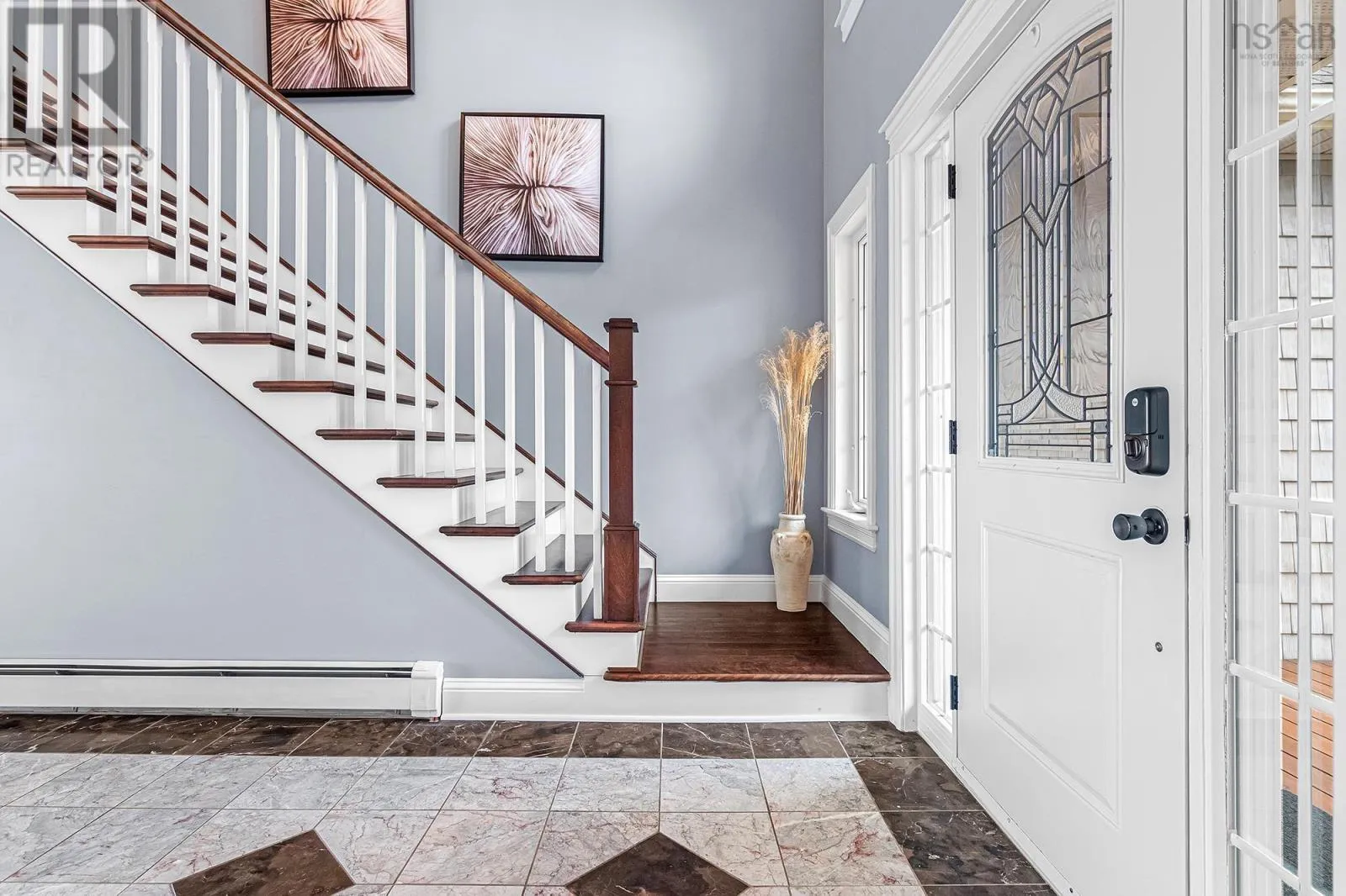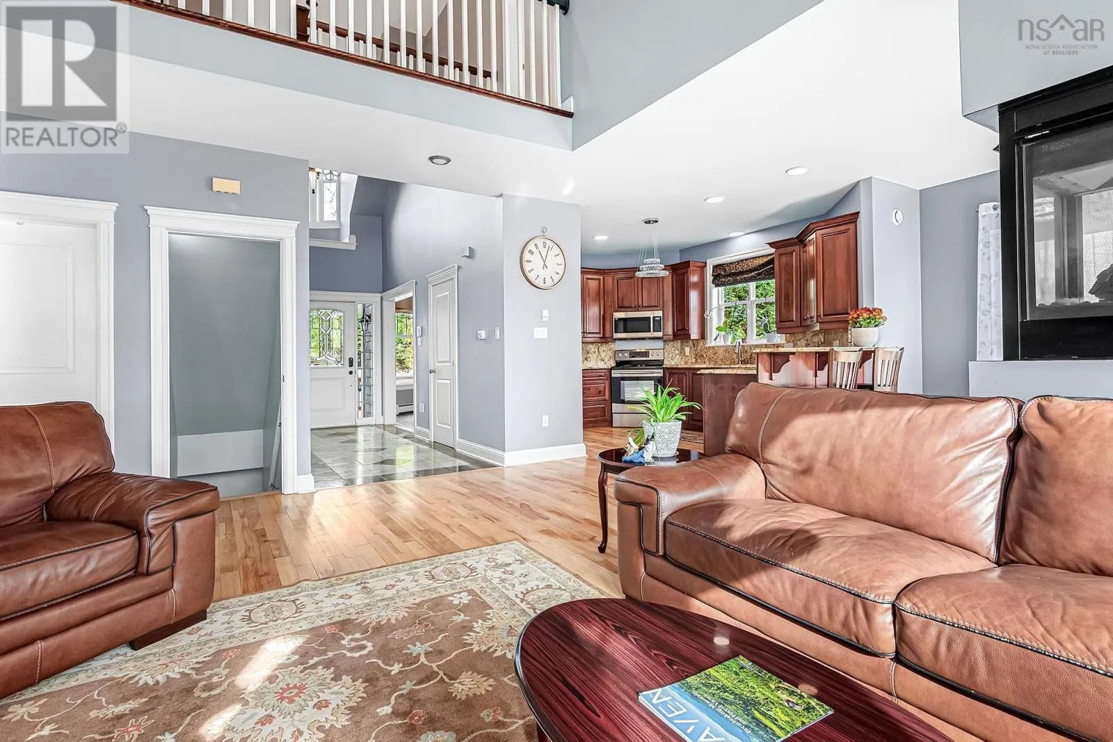 Highway 102 to exit 2B onto Larry Uteck Blvd, left onto Hammonds Plains Road, left onto Voyageur Way to Reining Way Welcome to 20 Reining Way in sought-after Voyageur Lakes a stunning lakefront home offering elegance, space, and tranquility. Community living at its best, this custom-designed residence takes full advantage of its beautiful lake frontage and breathtaking views. The main floor features a vaulted great room with expansive windows overlooking the water and a cozy three-sided propane fireplace. The grand kitchen is a showstopper, with rich hardwood cabinetry, granite countertops, and seamless flow to both formal and casual dining areas. The main-floor primary suite impresses with a new spa-inspired ensuite, featuring floor-to-ceiling marble tile and high-end finishes. Upstairs, youll find two spacious bedrooms and a full bath. The lower level offers even more flexibility, including a fourth bedroom, another full bath, and a comfortable family area with wood stove perfect for a potential in-law suite or guest retreat. Outside, enjoy the lakefront fishing, kayaking, skating or bird watching. Attached double garage, new decking and beautifully landscaped gardens. With excellent schools and amenities nearby, and just 25 minutes from downtown Halifax, this home perfectly combines luxury and lakefront serenity. (id:27476)