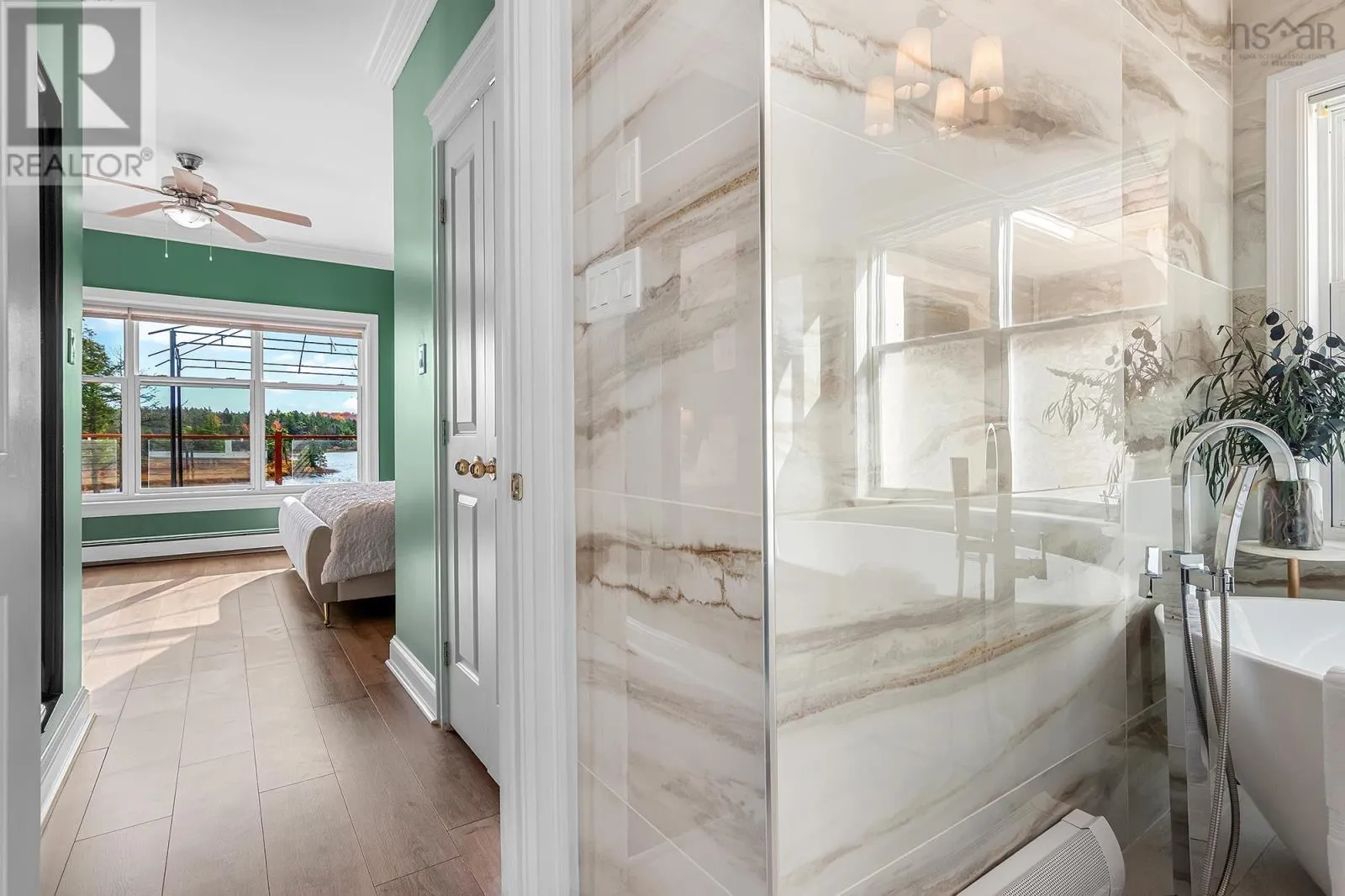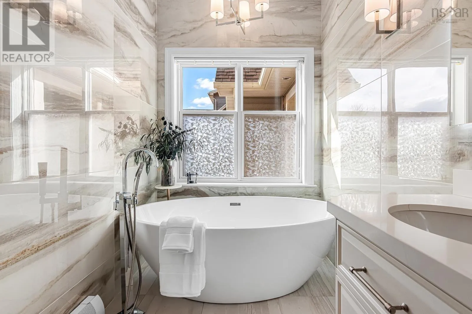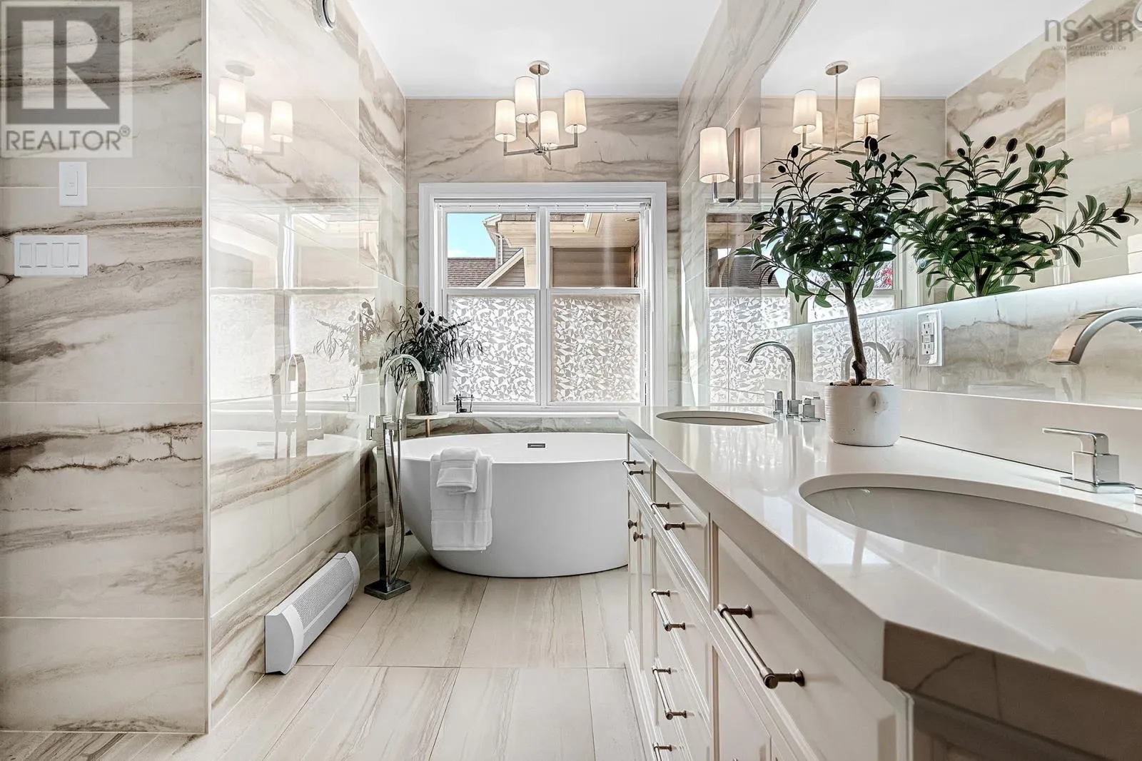 Highway 102 to exit 2B onto Larry Uteck Blvd, left onto Hammonds Plains Road, left onto Voyageur Way to Reining Way Welcome to 20 Reining Way in sought-after Voyageur Lakes a stunning lakefront home offering elegance, space, and tranquility. Community living at its best, this custom-designed residence takes full advantage of its beautiful lake frontage and breathtaking views. The main floor features a vaulted great room with expansive windows overlooking the water and a cozy three-sided propane fireplace. The grand kitchen is a showstopper, with rich hardwood cabinetry, granite countertops, and seamless flow to both formal and casual dining areas. The main-floor primary suite impresses with a new spa-inspired ensuite, featuring floor-to-ceiling marble tile and high-end finishes. Upstairs, youll find two spacious bedrooms and a full bath. The lower level offers even more flexibility, including a fourth bedroom, another full bath, and a comfortable family area with wood stove perfect for a potential in-law suite or guest retreat. Outside, enjoy the lakefront fishing, kayaking, skating or bird watching. Attached double garage, new decking and beautifully landscaped gardens. With excellent schools and amenities nearby, and just 25 minutes from downtown Halifax, this home perfectly combines luxury and lakefront serenity. (id:27476)
