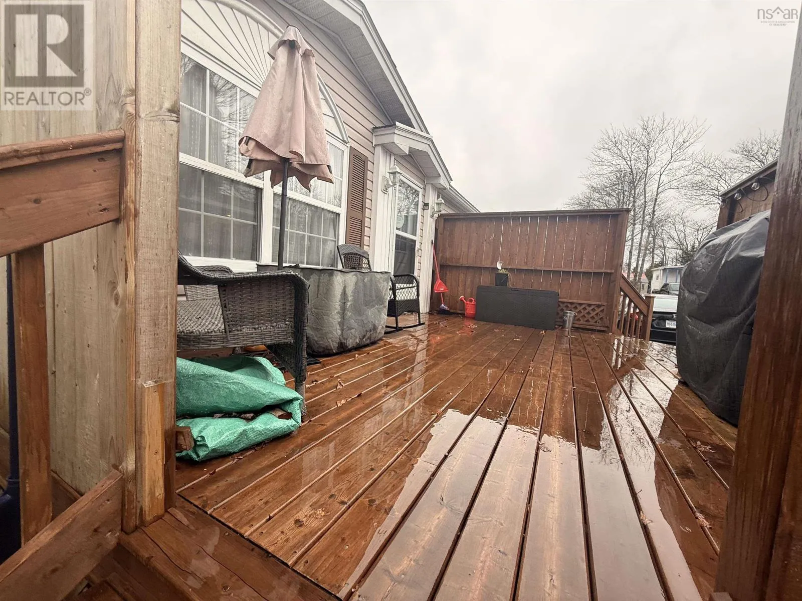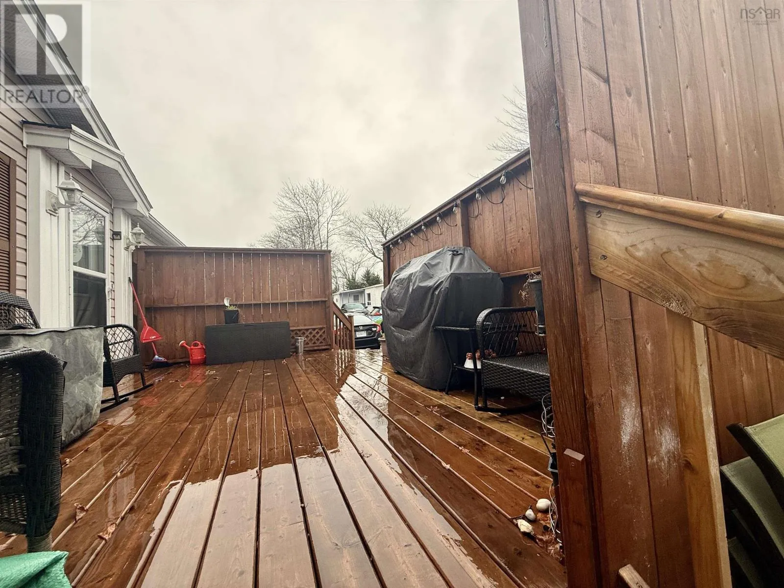 Hammonds Plains Road to Lucasville Road to Timber Trails Park to Third Street. Located in the desirable Timber Trails community, this well-cared-for 3-bedroom, 2-bath mini home offers inviting, efficient one-level living. The kitchen features raised oak cabinetry with a built-in dishwasher and stove, and opens to a bright living room accented by triple windows and cathedral ceilings. The thoughtful layout provides excellent privacy, with two bedrooms and the main bath at one end, and the primary suitecomplete with double closets and a spacious, spa-inspired ensuiteanchored at the opposite end. Pride of ownership is evident throughout. Over the years, the owners have invested in meaningful improvements, including a newer hot water tank and roof, the addition of energy-efficient heat pumps, and a refreshed deck. Recent updates such as a new washer and dryer, enhanced backflow prevention, and a newly added shed in 2025 round out this homes features, offering peace of mind and year-round comfort. This is a fantastic opportunity to own a well-updated home in a mature, established section of the parkoffering more trees, privacy, and charm than the newer areas. Book your viewing today! (id:27476)
