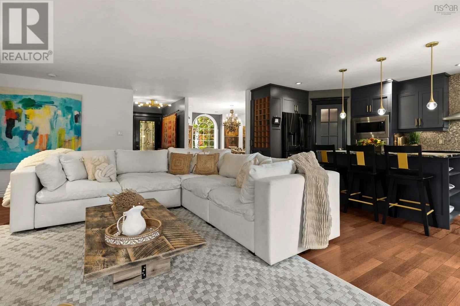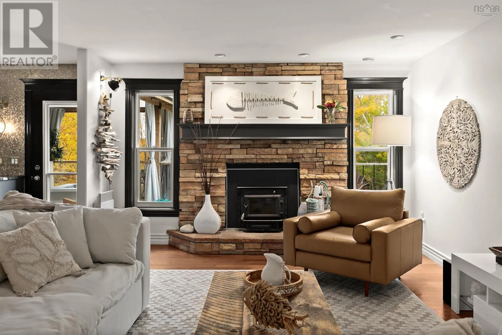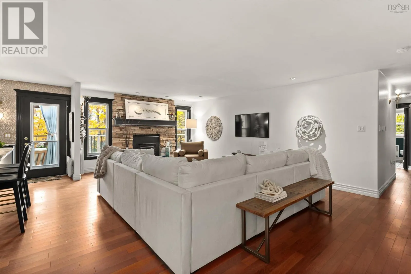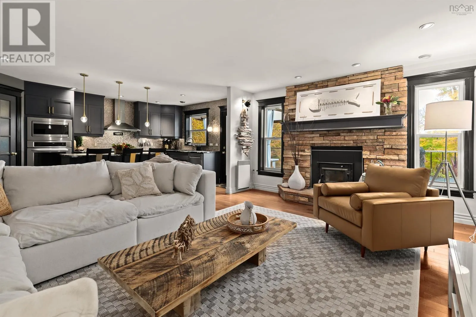 Google Maps: https://maps.app.goo.gl/2fzzVsZFHRhQrbuX9 Where luxury and nature meet in perfect balance - Welcome to your private 2.5-acre riverfront retreat just 30 minutes from downtown Halifax. Meticulously upgraded and cared for, this estate offers an effortless blend of curated design, serenity, and function. With 195 feet of river frontage flowing into McCabe Lake, the setting is quiet, restorative, and completely your own. Inside, rich hardwood floors, abundant private exposure windows, and natural light fill every space. The kitchen sets the stage for entertaining and everyday living with custom cabinetry, leathered granite counters, designer fixtures, walk-in pantry, and an oversized island that anchors the room. The dining area is perfect for hosting, while the living room centres around a wood-burning fireplace and opens to an expansive river-facing deck with two covered areas - the perfect perch for morning coffee or a glass of wine at sunset. Just off your foyer is a perfectly sized home office or secluded den space. The primary suite feels like a true retreat with an open invitation to the expansive deck, walk-in closet, tranquil views, and a spa-like ensuite with custom tile shower and freestanding tub. A second bedroom, full bath, and laundry leading to the double car garage complete the main level. Downstairs, the walk-out lower level was made for gathering - a spacious family room with pellet stove, two additional bedrooms, full bath, home gym, and a carefully curated wine-tasting room. Outside, stroll to your water view cabana and enjoy the lavender field while you wander the wooded path to the river for swimming, kayaking, or fishing right at home. New heat pumps in the main living space, primary bedroom, and lower level (2025) provide year-round comfort. Just minutes from golf, parks, top-rated schools, and city amenities - 390 Gleneagles Drive is more than a home. Its an escape youll never want to leave. (id:27476)