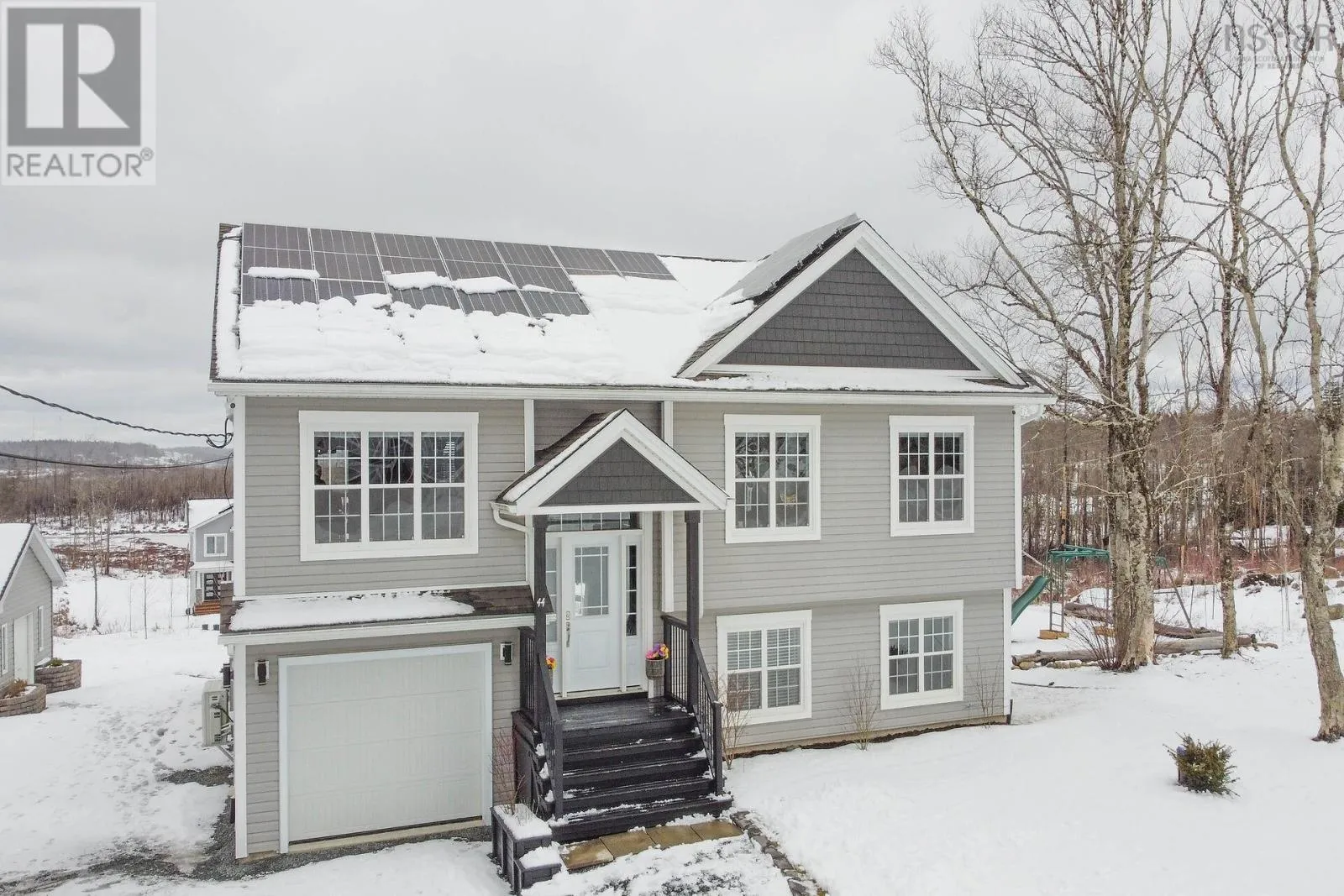 Hammonds Plains to Pockwock rd, Left onto Bonsai, Left on Yew Welcome to the very desirable Perry Pond Lifestyle. This sought-after subdivision boasts spacious lots in a fantastic family neighborhood located close to highways 102 & 103. Conveniently allowing quick access to Hammonds Plains and Tantallon with its great schools, hiking trails, recreation center, golf course, shopping and more. Here, you will find your new home and it is everything that you have been dreaming of. Pride of ownership inside and out!! This home allows extra space for your family and friends to gather with an option for extended family too. The main floor features a wonderful open concept kitchen, dining and living room with amazing natural light. There are 3 bedrooms on this floor with the primary bedroom having a walk-in closet and ensuite. The lower level has a large family room, 4th bedroom, full bathroom, laundry & utility room. It offers a walk-out to the back yard and also access to the attached garage which is currently used as a mudroom & storage. Very convenient for the active family. There is also a detached 30' x 30' heated garage that has a 17' x 30' loft area to suit all of your needs. If you require more space, you will find a 12' x 16' wired shed with loft here, as well. The options are endless. This beautifully maintained home has certainly had great upgrades. A wonderful living space with no extra expense to the new owners because the 18.72 KW solar array panels produce almost 100% of power to run this home. A very economical feature that will save you so much money on monthly household power bills. There are two ductless heat pumps and the electrical panel is also wired for a generator. Everything that you need for convenience and comfort. Outside, there has been lovely landscaping completed with 75 fresh hardwood trees planted, a stamped concrete pad in the backyard and a playground area. Book a viewing today!! (id:27476)