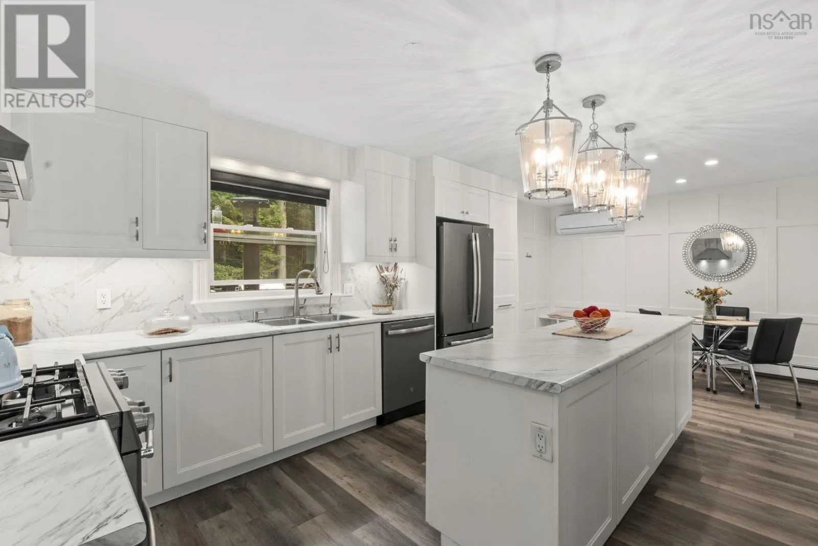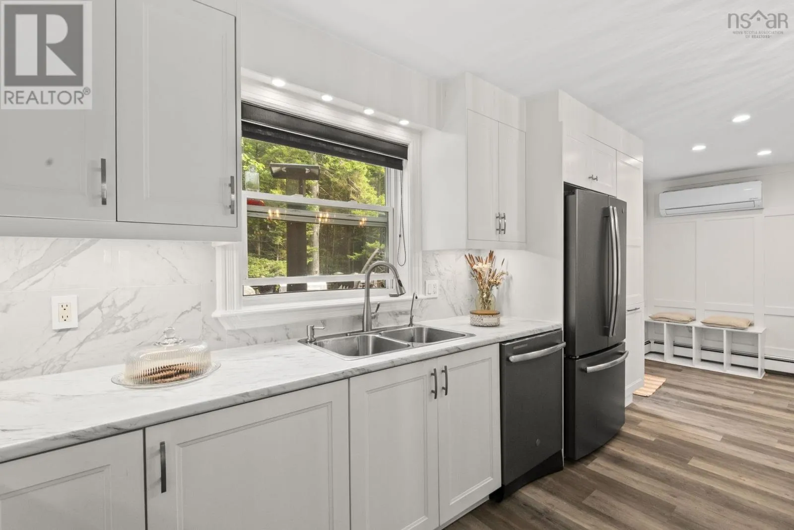 Hammonds Plains Road to Lucasville Road to Waterstone Run, or Sackville Dr to Lucasville Road to Waterstone Run Welcome to 579 Waterstone Run, where modern updates meet the tranquility of a private, natural setting. From the landscaped front yard to the light-filled interior, this home offers comfort and style at every turn. Inside, the dining room with its grey accent wall sets the stage for gatherings, while the adjoining living room provides a warm retreat with hardwood floors and a propane fireplace. The kitchen flows seamlessly into the space, featuring a large island and ample countersideal for both family meals and entertaining. Step outside to a spacious deck overlooking a lush, forested oasis. A gentle stream runs through the property, creating a peaceful backdrop for evenings by the firepit or time spent in the greenhouse. Upstairs, two well-sized bedrooms share a full bath, while the impressive primary suite offers a sunlit retreat with a spa-like ensuite and jacuzzi tub framed by forest views. The lower level adds versatility, perfect for a home office, media room, or secondary suite to suit your needs. A Generac generator provides reliable backup power during outages.Thoughtful updates, flexible living spaces, and a serene natural setting make this property truly special. Come experience all that 579 Waterstone Run has to offer. (id:27476)