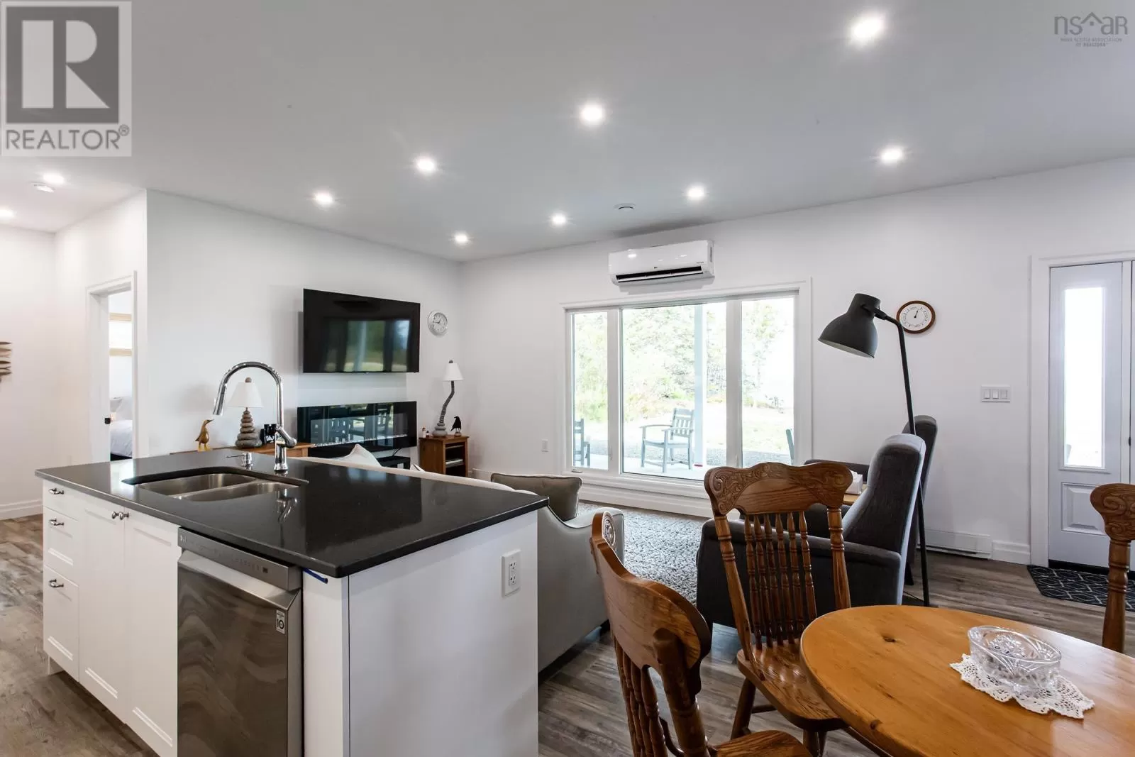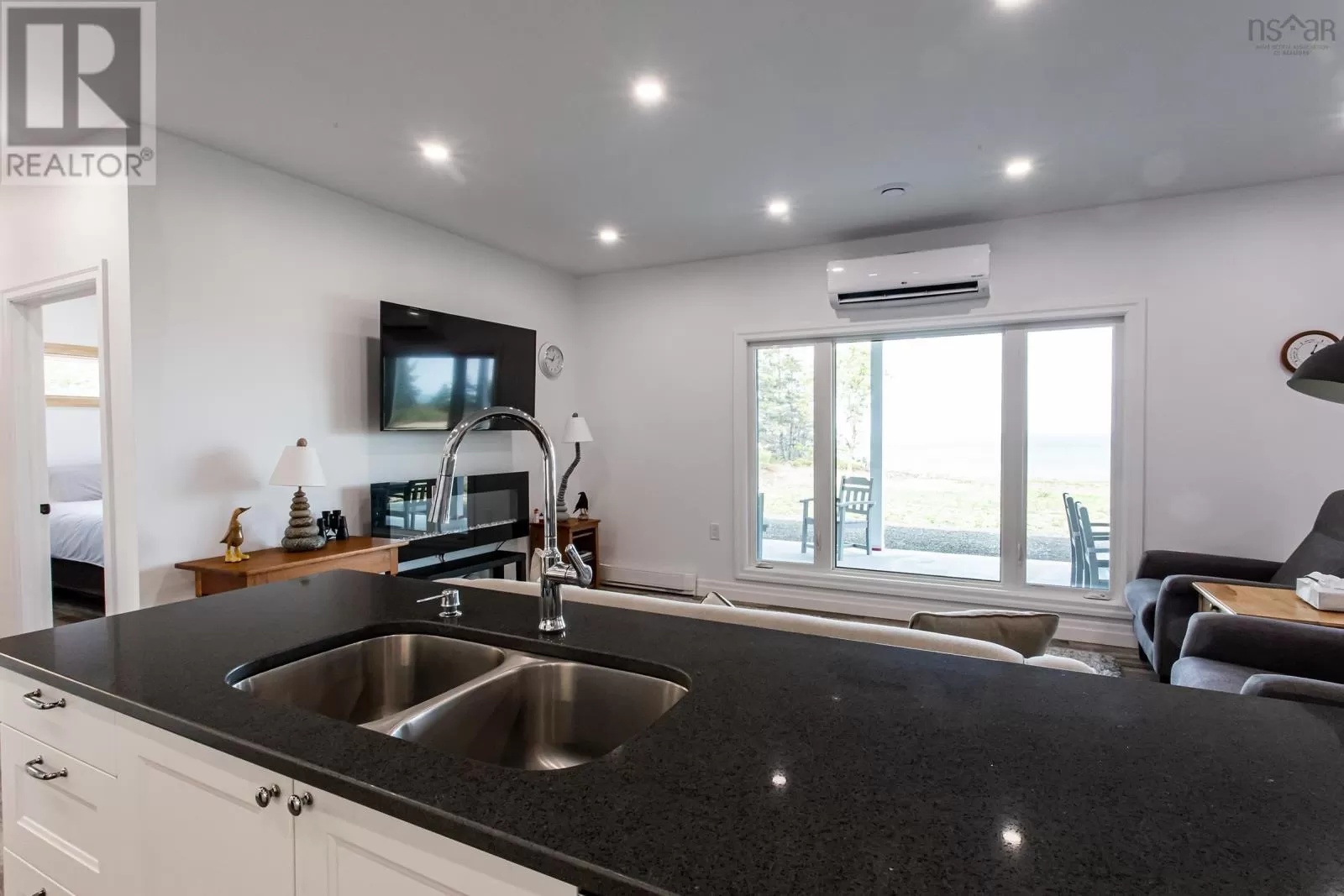 From Bridgetown: North on Church St, which becomes Hampton Mtn Rd. Continue straight through intersection at Shore Rd toward Bay. Civic on LHS, down to end of laneway. Welcome to this like new oceanfront property completed in 2022, a barndominium style bungalow designed with both comfort and practicality in mind. The structure measures 50 by 50 feet and includes an enormous attached garage, while the main living area offers 1100 square feet of thoughtfully designed space. Exceptionally private 3.85 acre oceanfront lot, only moments from the amenities of Bridgetown and perfectly situated in the heart of the Annapolis Valley. The property also features a large cleared and levelled area adjacent to the dwelling, already serviced with power and water lines and ready for construction of a second building if desired. Built to exceed code, this home is extremely efficient to heat with two heat pumps and also includes a 400 amp electrical entrance, a durable metal roof, and fibre internet access. The covered patio measures 50 by 10 feet, with insulated flooring beneath, offering the potential to easily enclose and expand your living space. Inside you will find two bedrooms and two and a half baths, highlighted by bright open concept living with modern finishes. Whether enjoying the serenity of your oceanfront setting, entertaining in the spacious garage and patio areas, or planning future development of the additional building site, this property offers unmatched flexibility and opportunity. Combining the appeal of new construction, modern efficiency, and an incredible setting on Nova Scotias picturesque coast, this home is a rare find that blends lifestyle and convenience in one exceptional package. (id:27476)