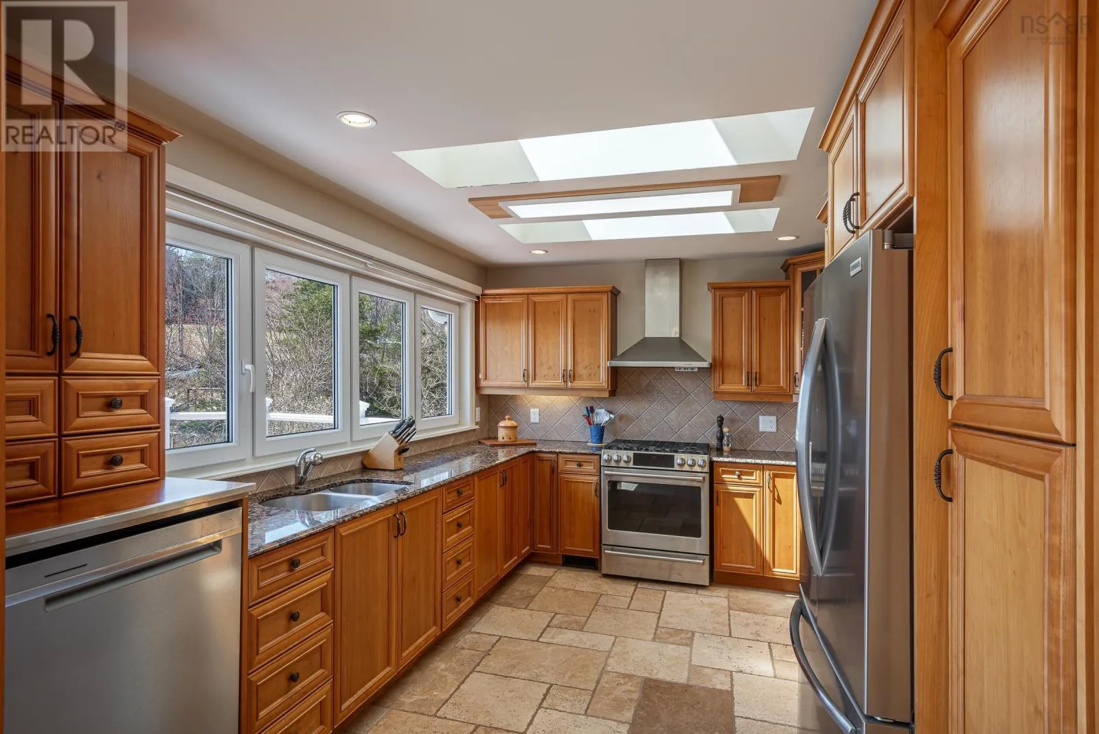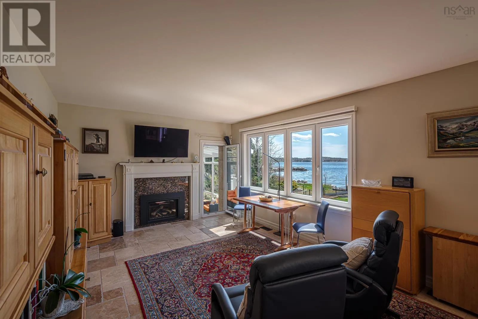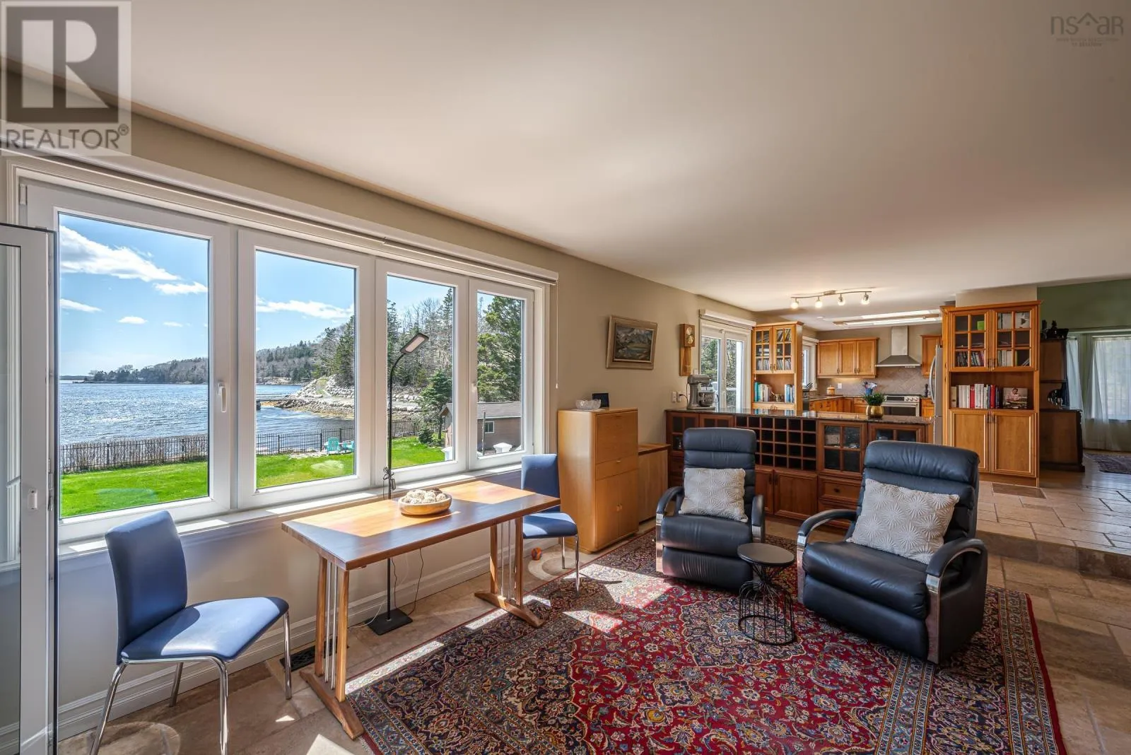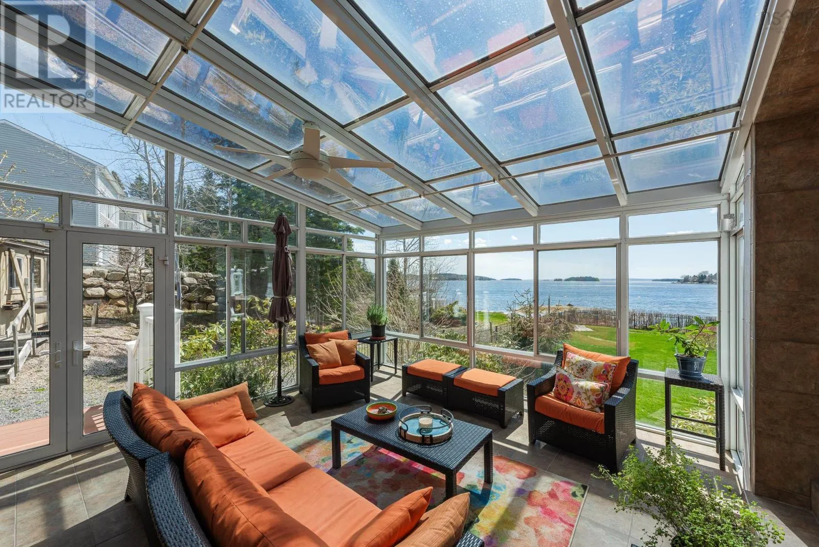 From Highway 103, take Exit 5. Left onto St. Margaret's Bay Rd, then right on Highway 3, then left on Masons Point Road. Property on the right. Discover relaxed coastal living at 129 Masons Point Road. This impressive 4-bedroom, 3.5-bathroom home is set on a beautifully landscaped 0.72-acre lot with 140 feet of direct ocean frontage on some of the best sailing waters along the Eastern Seaboard. Designed to maximize its southwest exposure, the home is flooded with natural light and offers breathtaking water views from nearly every room. From the moment you step inside, you're welcomed by soaring vaulted ceilings and expansive windows that frame spectacular sunsets over St. Margarets Bay. The main level features a formal living and dining room, a warm and inviting family room with a propane fireplace (2023), and a custom cherry wood kitchen with a propane range (2021). A glass solarium with in-floor radiant heat offers a year-round space to enjoy the view or nurture your plants. Main-level laundry and an attached triple garage add to the home's everyday convenience. Upstairs, the primary suite boasts a 4pc. ensuite and a spacious walk-in closet. The oversized second bedroom could easily be reconfigured back into two bedrooms, providing the option for three bedrooms on the upper level. The fully finished walk-out basement offers bright and versatile living space with stunning ocean views - perfect for guests or extended family. Premium features include a Cummins whole-home generator, on-demand hot water, a fully ducted heat pump (2022), a Confederation water lot with mooring (2022), and a private pebbled beach. A detached 13'x24' heated workshop (2022) with a ductless heat pump (2022) provides an ideal space for hobbies, work, or storage. Located just 25 minutes from downtown Halifax, minutes from all the amenities in Tantallon, and steps from Rails-to-Trails (a 33km multi-use recreational trail offering elevated panoramic views of St. Margarets Bay), this is coastal living at its finest. (id:27476)