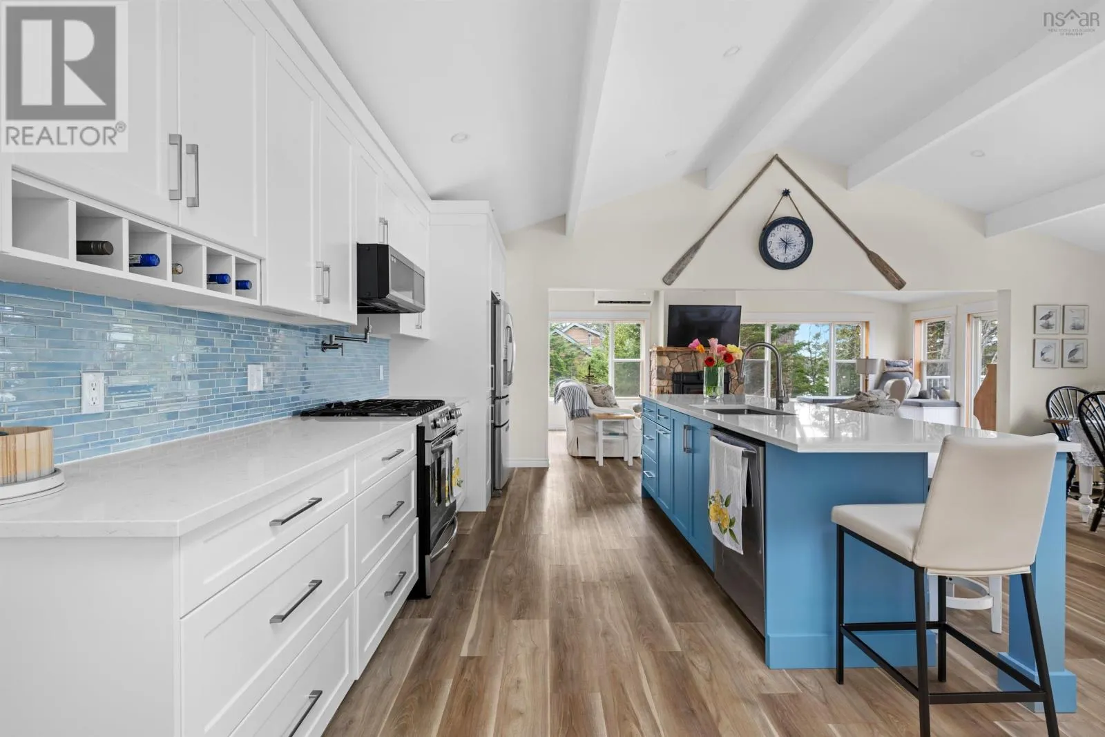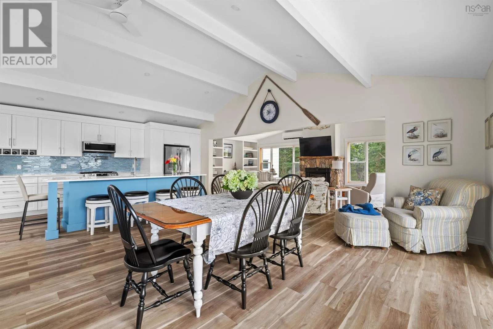Take Blue Rocks Road from Lunenburg, left at Heckmans Island Sign. Stay on main road to Hebb Point Road, turn left on Goldfinch Fabulous Oceanfront Home on Heckmans Island Welcome to your coastal sanctuary on picturesque Heckmans Island, just 10 minutes from historic Lunenburg. Tucked away on a quiet lane, this oceanfront property offers a rare blend of privacy, natural beauty, and modern comfortideal as a year-round residence or seasonal retreat. Inside, every area of the home has been refreshed with new paint and stylish laminate flooring throughout, creating a bright and modern feel. The main floor features a beautifully updated open-concept kitchen and living area, perfect for entertaining or enjoying cozy evenings around the beautiful stone fireplace with ocean views. The spacious primary bedroom includes its own private patio decka perfect place to unwind in nature. A second room on this level serves well as a home office or an additional bedroom, with a full bathroom and main-floor laundry completing the layout. The lower level, with its ground-level entry, includes two more bedrooms and another full bathroom, offering privacy and flexibility for guests, extended family, or a potential in-law suite. A brand-new, energy-efficient ICF-built two-story garage adds significant value, with space for two cars below and roughed-in water aboveproviding exciting potential for a guest suite, studio, or future rental unit. Step outside and enjoy the expansive yard and peaceful surroundings. Follow the gentle slope down to your own private waterfront sitting area and take in the serene beauty of the Atlantic coastline. (id:27476)