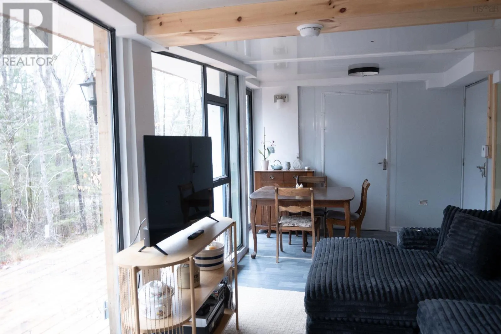 From Hwy 103 take Exit 13, drive into Bridgewater, left on St. Phillips St. which turns into Upper Branch Rd to Forest Dr. (signs for Hemford Forest subdivision), take the second entrance, left onto Hirtle dr. Property on left. Welcome to Hemford Forest, a peaceful setting where you can relax and unwind. This 2 bedroom, 2 bath home features an open concept kitchen and living area and is situated on a 1.36 acre lot with tons of privacy in a small community with a mixture of year round and seasonal residents. Nearby Hirtle Park is complete with a boat launch so you can get out and enjoy the lake, have a game of tennis, or take a stroll to the beach with deeded lake access. The trailer with addition provides room for additional guests with a detached kitchen and separate driveway. There is also a shed that provides extra storage. Located on Hirtle lake just outside of East Clifford, 25 minutes to the town of Bridgewater. (id:27476)