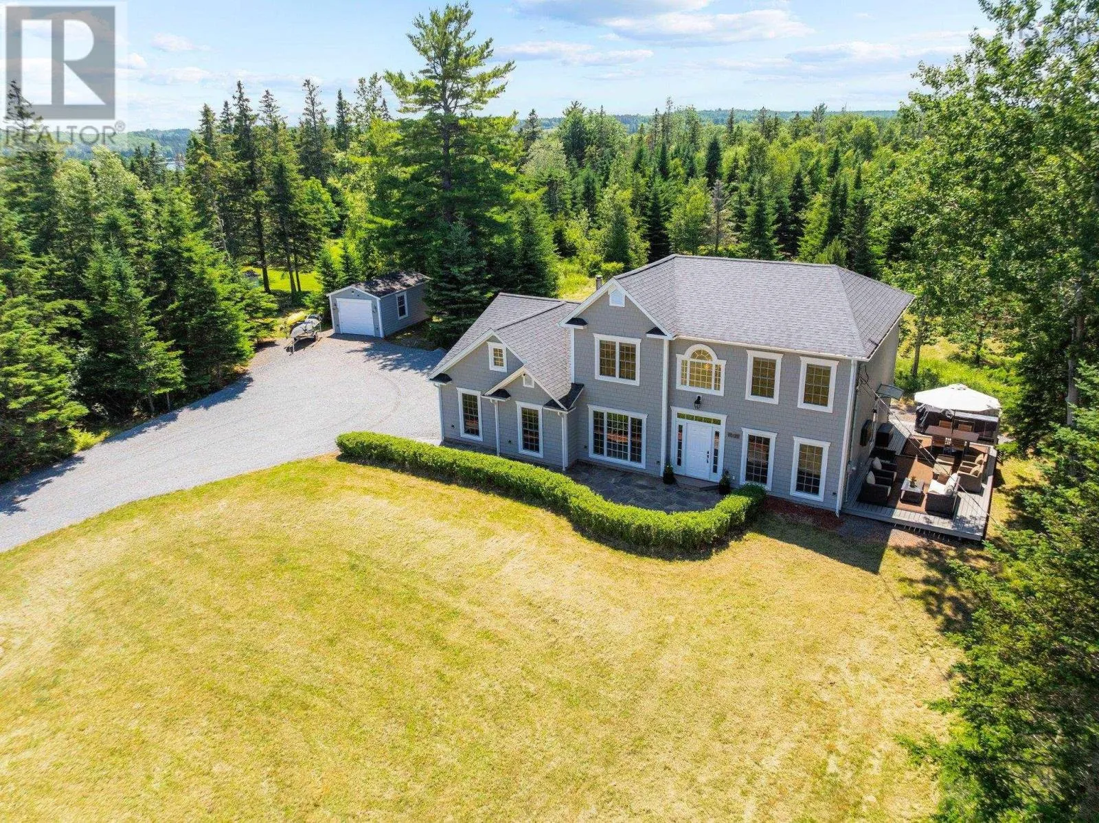 Highway 103 to Exit 10 to Mahone Bay on Highway 3, turn left on Maders Cove, left on Herman's Island Road past the Yacht Club to private road, property on left. Welcome to Prestigious Herman's Island A Coastal Paradise at 71 Hermans Point Road! This meticulously maintained 4-bedroom, 3-bathroom home sits on a stunning 3.4-acre lot, blending open greenspace with private wooded surroundings for the perfect mix of peace and privacy. With both an attached double garage and a detached single garage, theres plenty of room for your vehicles, boats, and recreational toys. From the moment you arrive, the slate walkway and beautifully landscaped front yard will draw you in. Step onto the spacious composite deck and take in panoramic views of Mahone Bay, while listening to the calls of local wildlifedeer, foxes, and songbirds are regular visitors. Thoughtfully Designed for Comfort & Security . Inside, the home offers over 2,100 sq. ft. of warm and functional living space: Main Level: A gourmet kitchen with stainless steel appliances, elegant formal dining room, large living area, cozy family room, and a full bathroom. Upper Level: Three spacious bedrooms, including a primary suite with a private ensuite, plus a third full bath complete with convenient laundry. The home is equipped with gelled radiant heat, ductless mini-splits on both levels, a new HRV system, and high-end finishes such as slate-style porcelain tile and wool broadloom flooring. For added peace of mind, the property includes a state-of-the-art remote wireless control and security system, so you can monitor and manage your home wherever you are. Turnkey & Move-In Ready Everything you need is already here: All indoor and patio furniture Televisions and mounts BBQ and prep station Generator for backup power Location Perfection Just minutes away from: Lunenburg Yacht Club Dock your boat and join the thriving nautical community Downtown Mahone Bay Enjoy shops, restaurants, and all your essential amenities Only 1 hour to Halifax Perfect for a seasonal getaway or year-round living Common waterfront beach area deeded access to a community wharf and (id:27476)