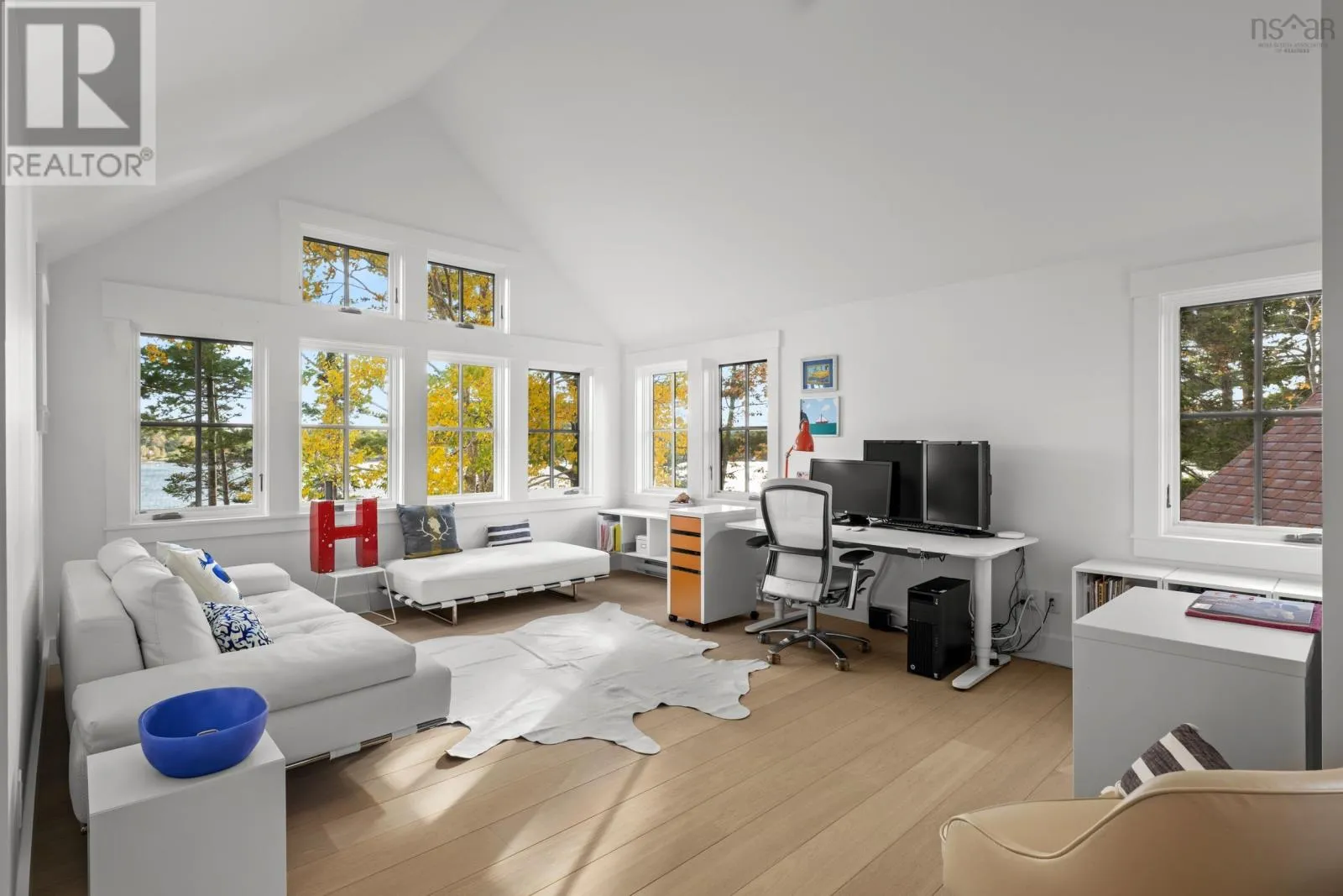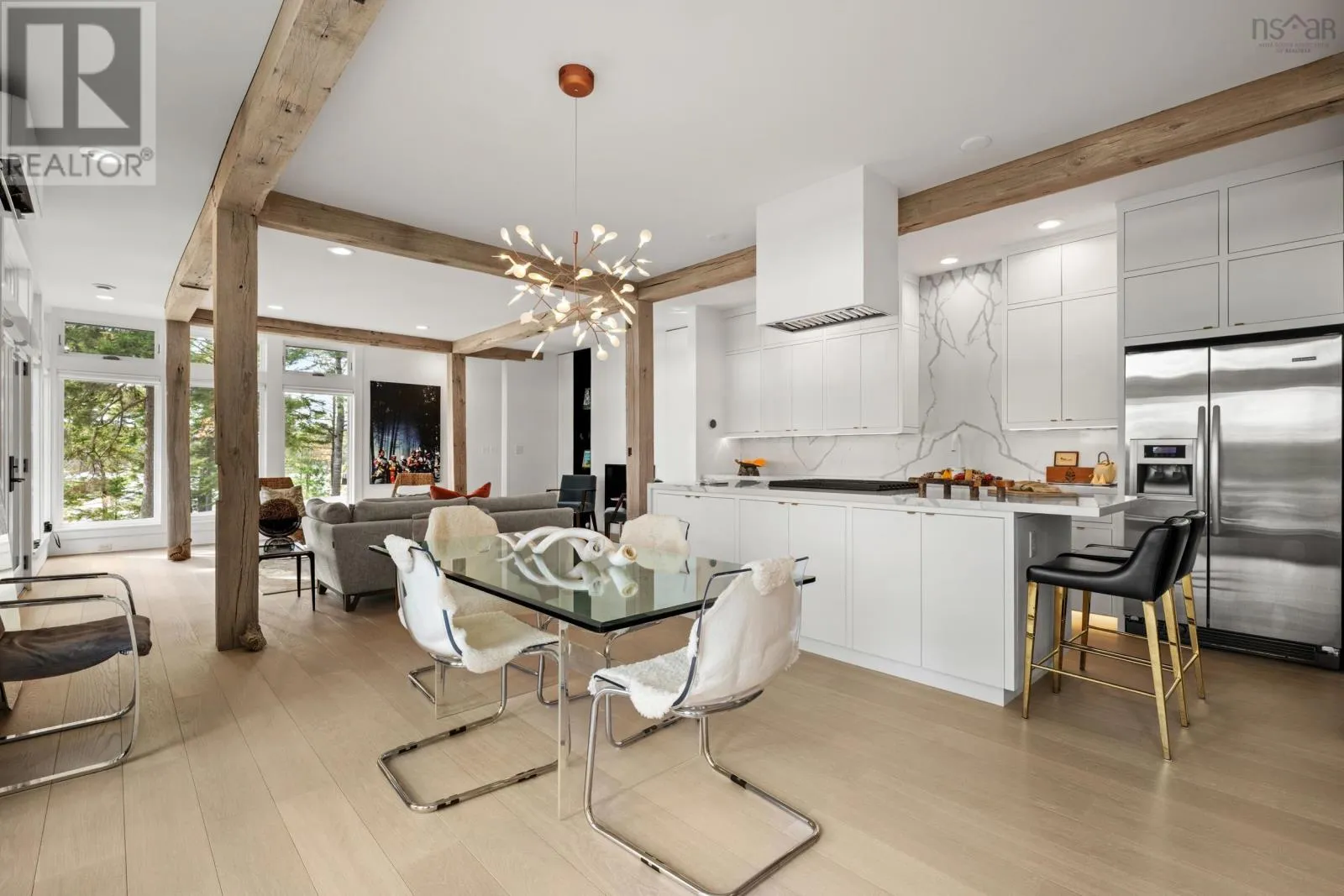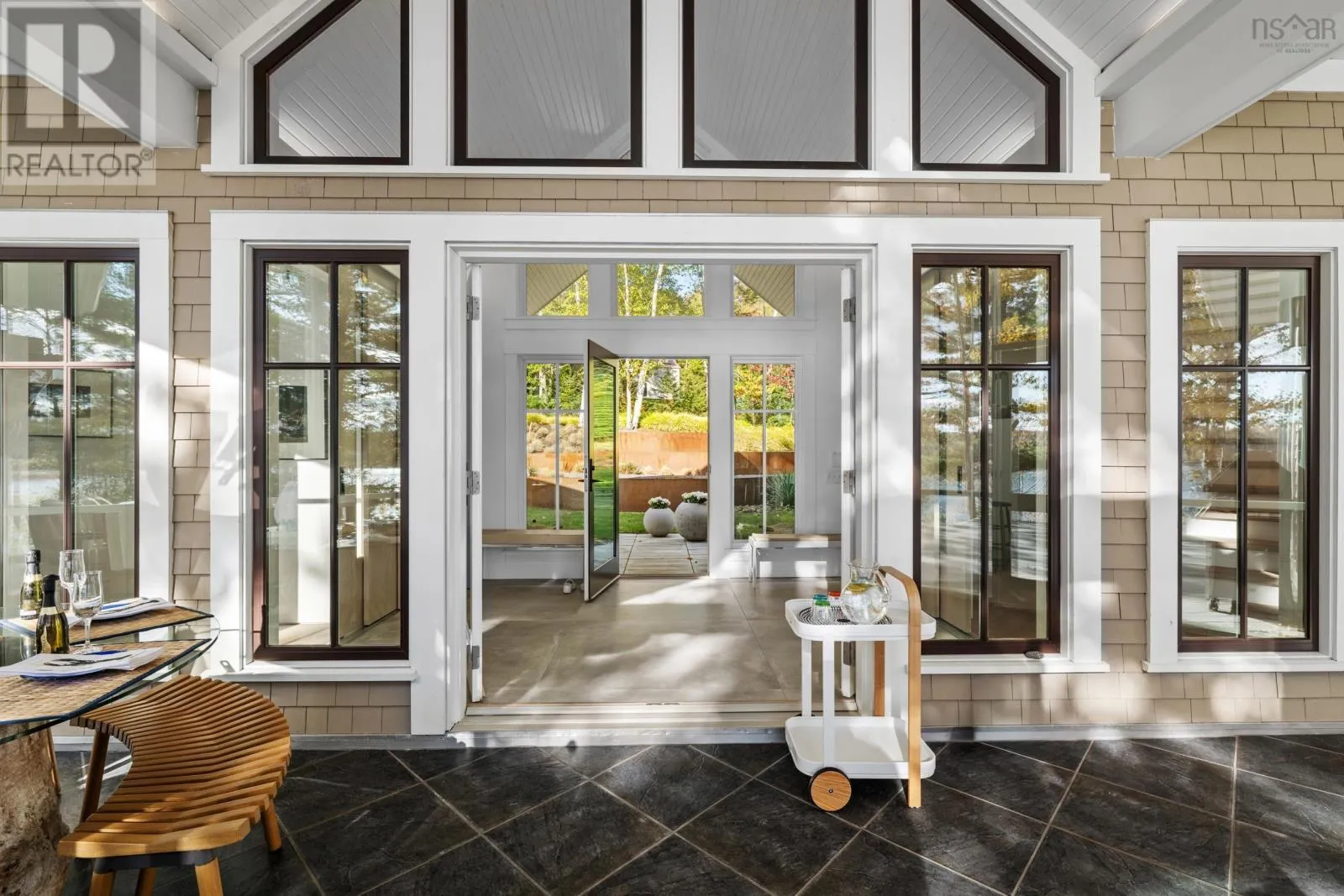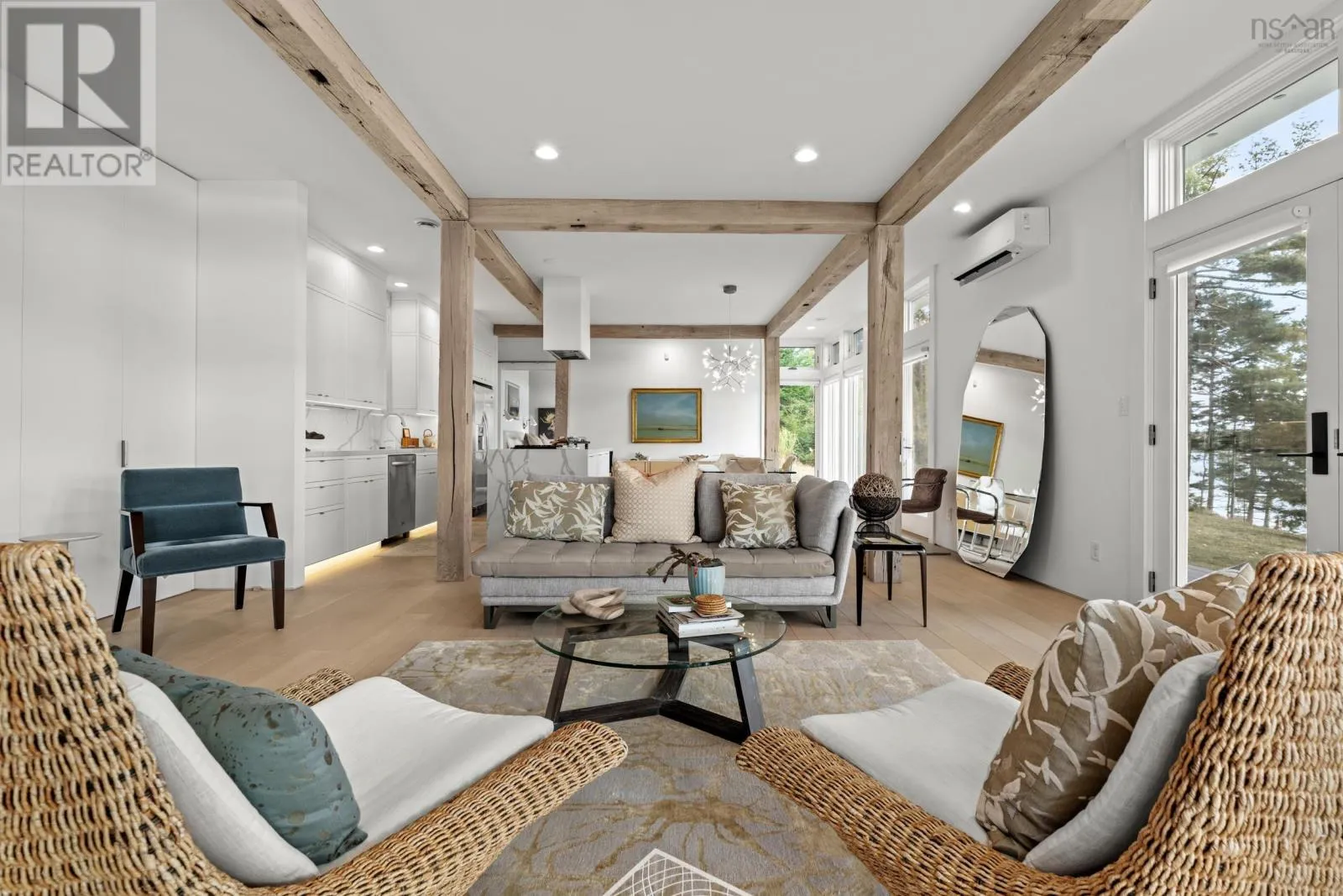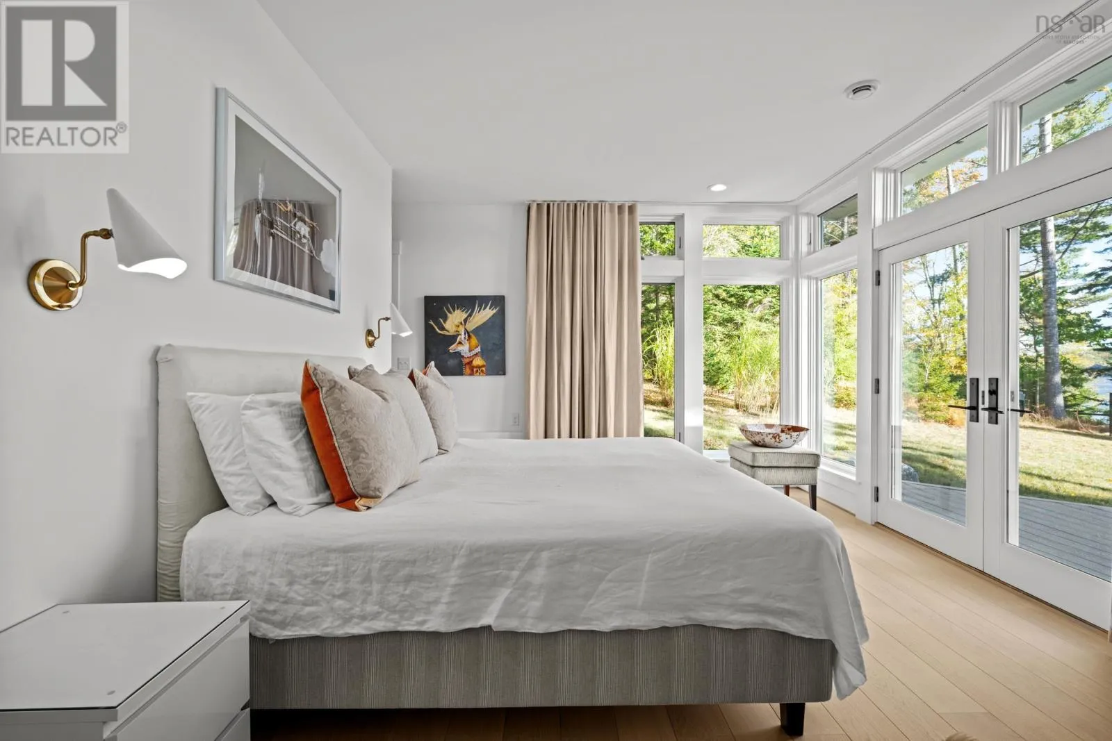 Highway 3 to Hermans Island Road, right onto Himmelman Lane, left at the fork, property on the right. Set upon 1.63 acres of pristine coastline with 200 feet of private ocean frontage, this contemporary oceanfront residence is a landmark of modern coastal design. As the first Platinum LEEDcertified home in the Maritimes, an international symbol of green building leadership and sustainability excellence, it represents the perfect balance between architectural sophistication and environmental consciousness. Reimagined through a complete interior transformation in 2017, the home blends clean modern lines with organic warmth. Expansive windows frame tranquil ocean views through a canopy of mature trees, filling the home with soft, shifting light from morning to dusk. Life here moves with the rhythm of the tides. Mornings might begin with coffee on the deck, afternoons spent sailing or kayaking from your own 116-foot wharf, and evenings gathered with friends as the horizon fades to soft gold. A private sandy beach and deep-water mooring make every day an opportunity for adventure or quiet reflection. The detached 1.5-storey garage offers flexible space for vehicles, hobbies, or a creative studio, complementing the home's thoughtful design. The grounds have been architecturally designed and professionally landscaped, with granite slab steps and paths, native plantings, and subtle lighting that highlight the property beautifully. As night settles and the lights reflect across the cove, the home feels calm, timeless, and connected A space that invites you to slow down, settle in, and stay awhile. (id:27476)