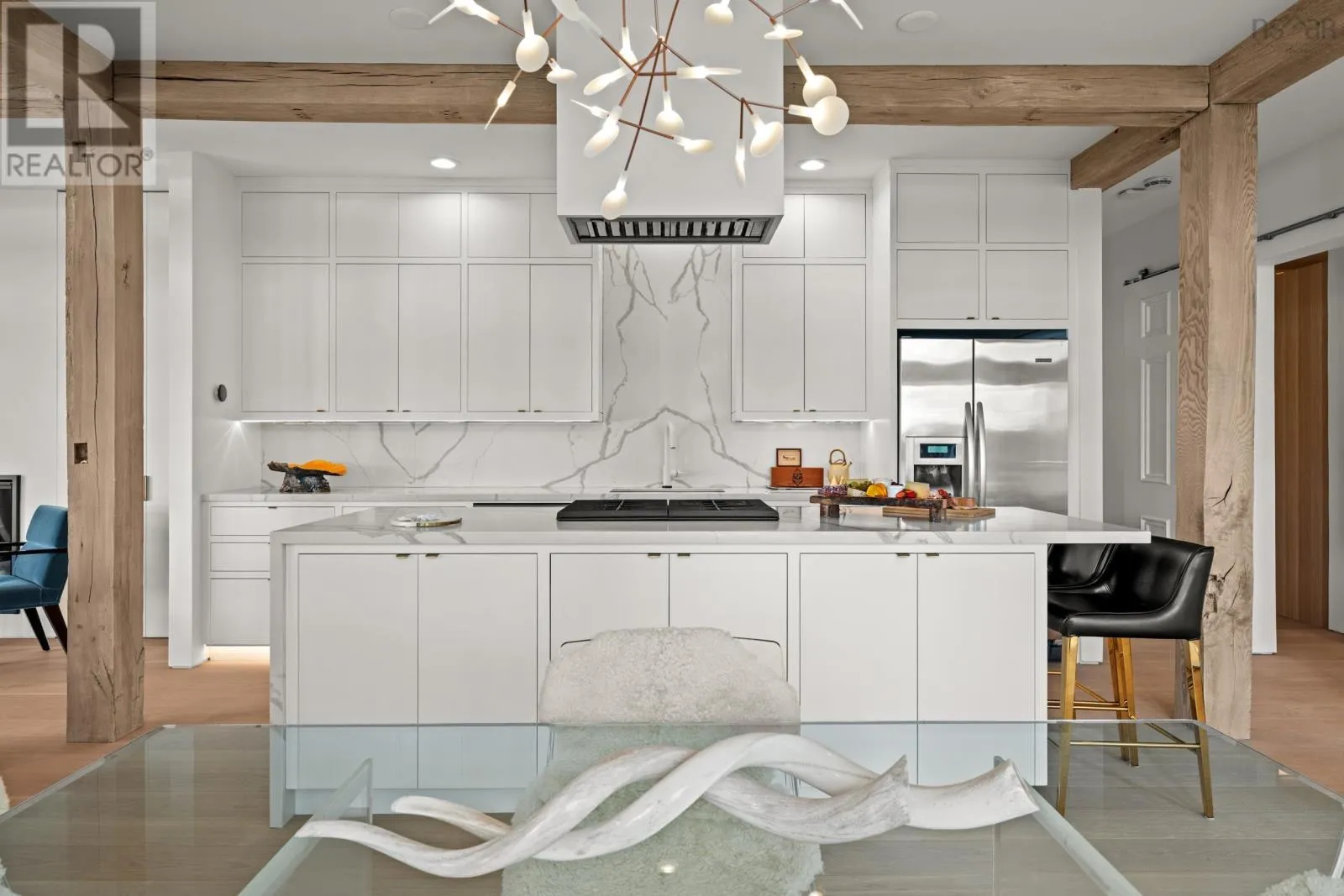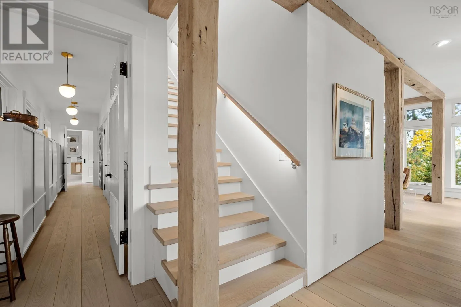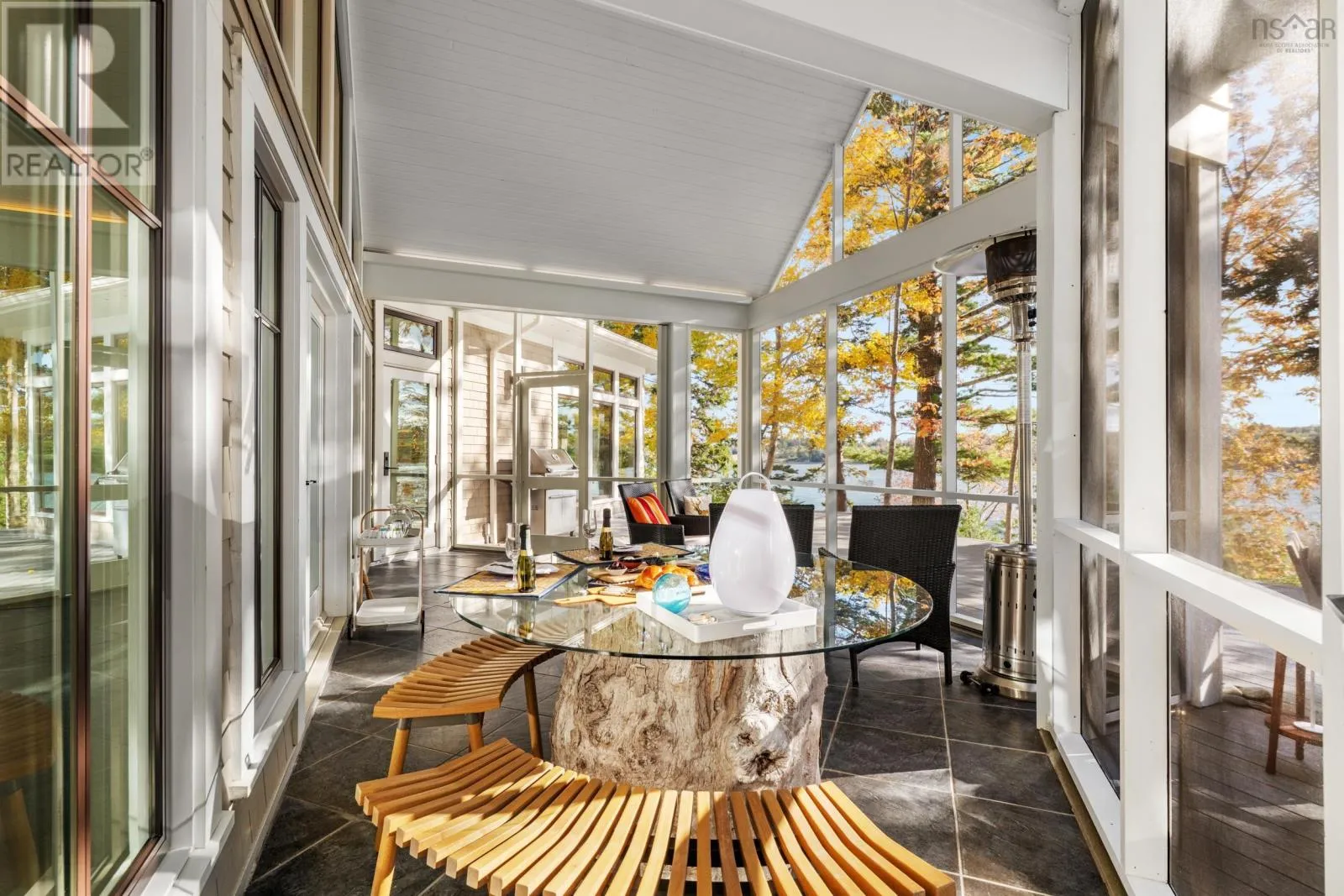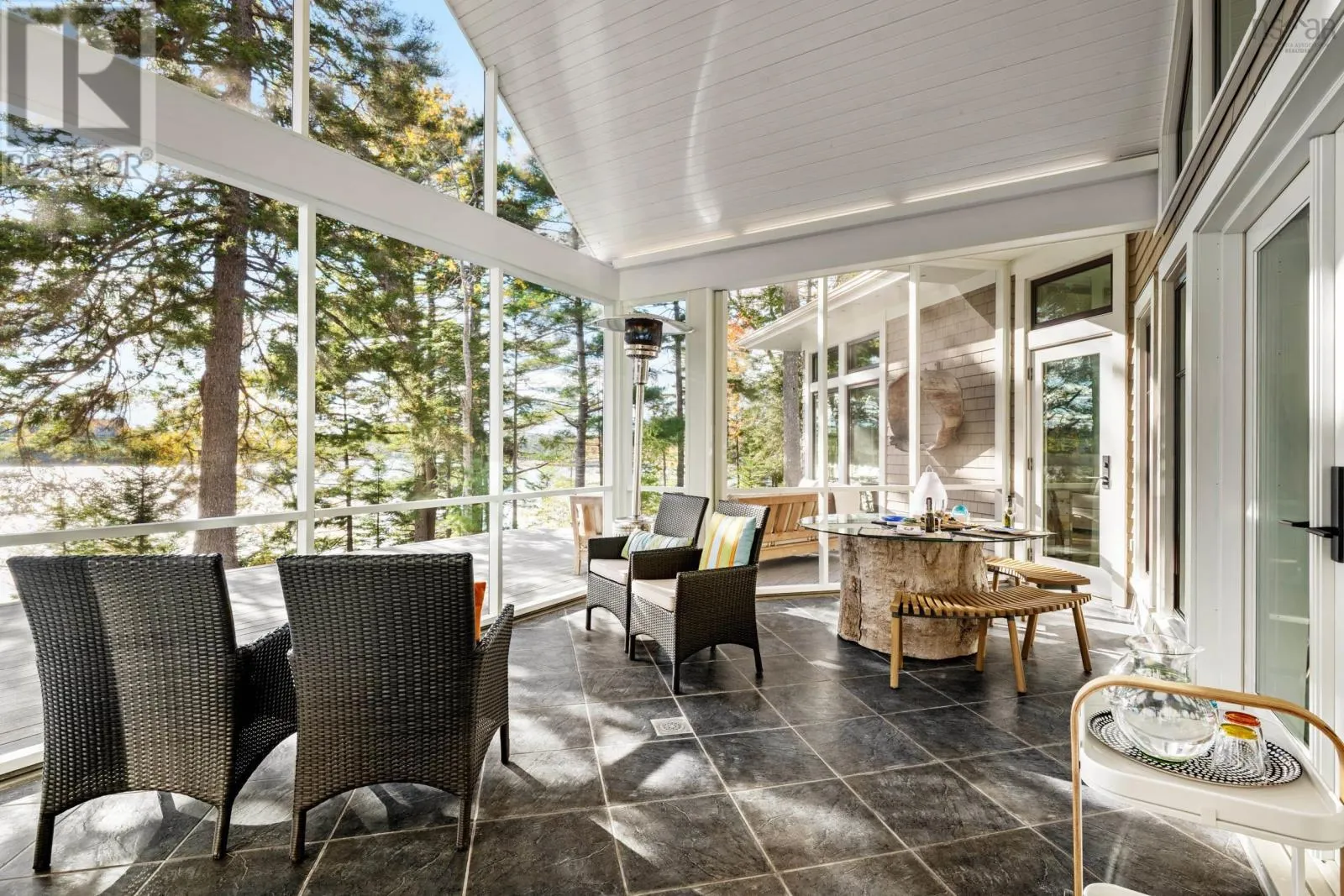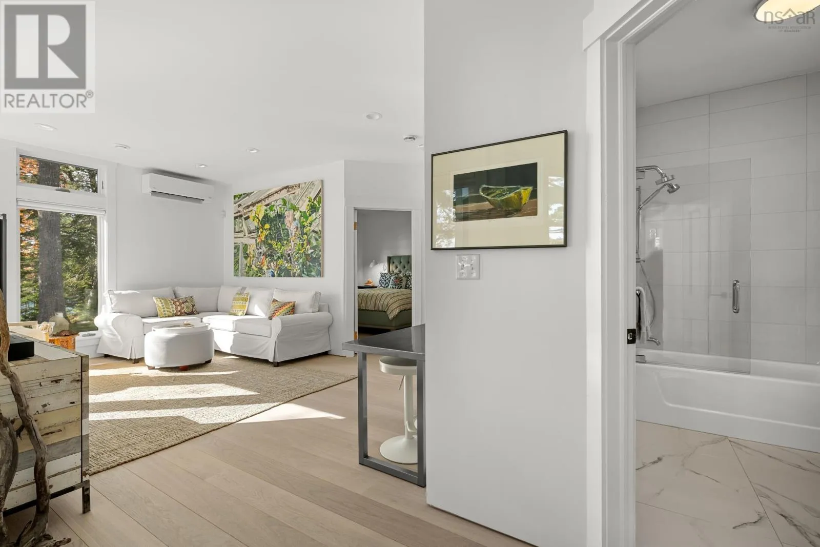Highway 3 to Hermans Island Road, right onto Himmelman Lane, left at the fork, property on the right. Set upon 1.63 acres of pristine coastline with 200 feet of private ocean frontage, this contemporary oceanfront residence is a landmark of modern coastal design. As the first Platinum LEEDcertified home in the Maritimes, an international symbol of green building leadership and sustainability excellence, it represents the perfect balance between architectural sophistication and environmental consciousness. Reimagined through a complete interior transformation in 2017, the home blends clean modern lines with organic warmth. Expansive windows frame tranquil ocean views through a canopy of mature trees, filling the home with soft, shifting light from morning to dusk. Life here moves with the rhythm of the tides. Mornings might begin with coffee on the deck, afternoons spent sailing or kayaking from your own 116-foot wharf, and evenings gathered with friends as the horizon fades to soft gold. A private sandy beach and deep-water mooring make every day an opportunity for adventure or quiet reflection. The detached 1.5-storey garage offers flexible space for vehicles, hobbies, or a creative studio, complementing the home's thoughtful design. The grounds have been architecturally designed and professionally landscaped, with granite slab steps and paths, native plantings, and subtle lighting that highlight the property beautifully. As night settles and the lights reflect across the cove, the home feels calm, timeless, and connected A space that invites you to slow down, settle in, and stay awhile. (id:27476)