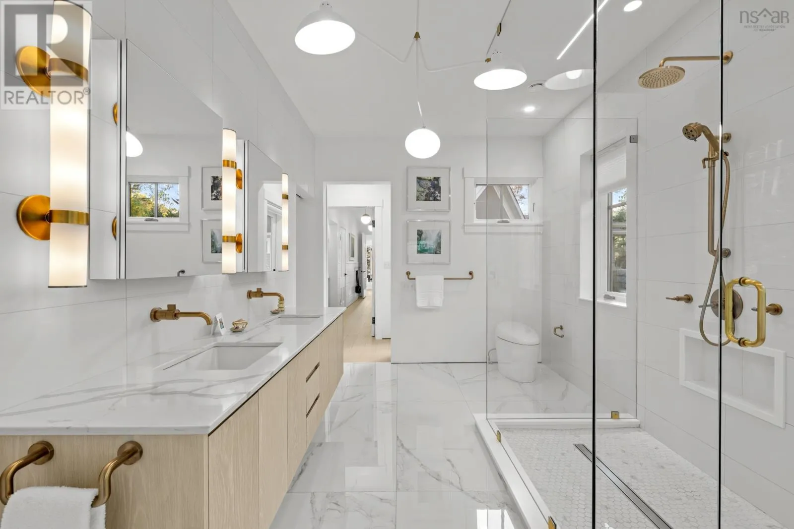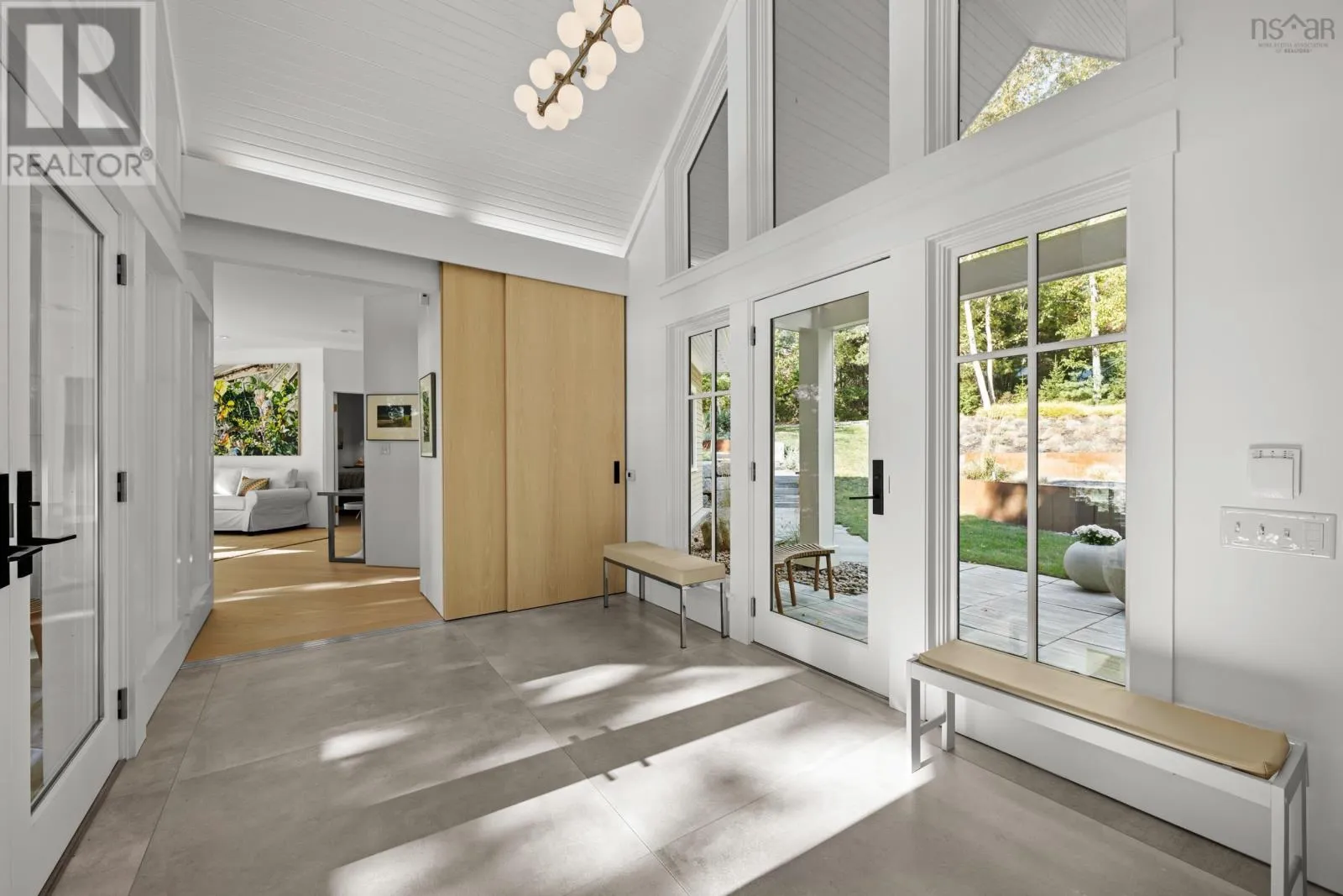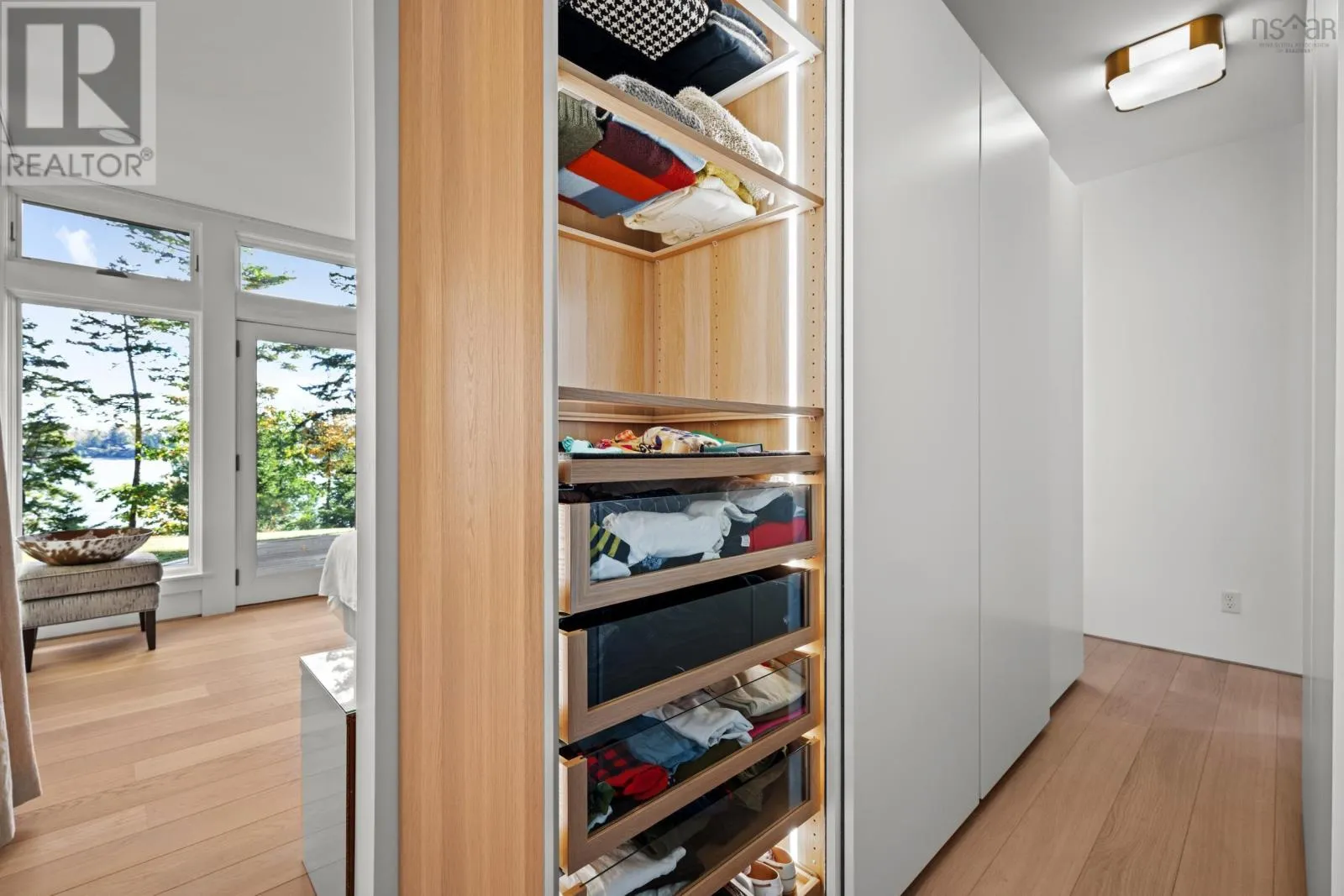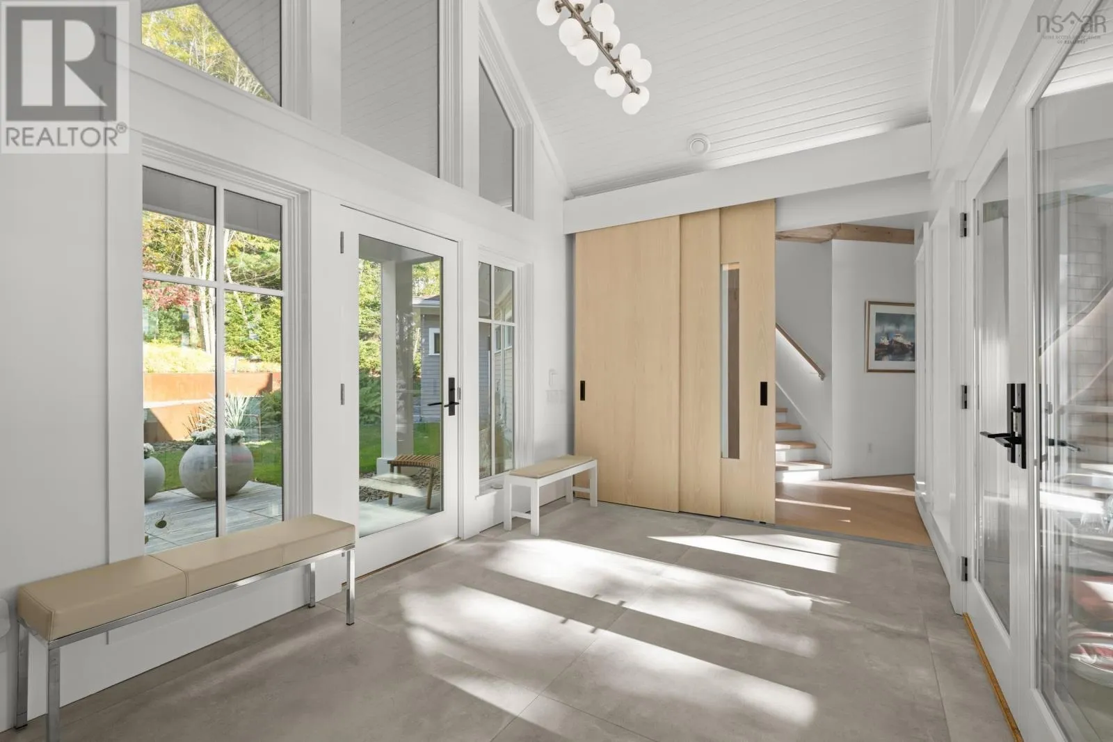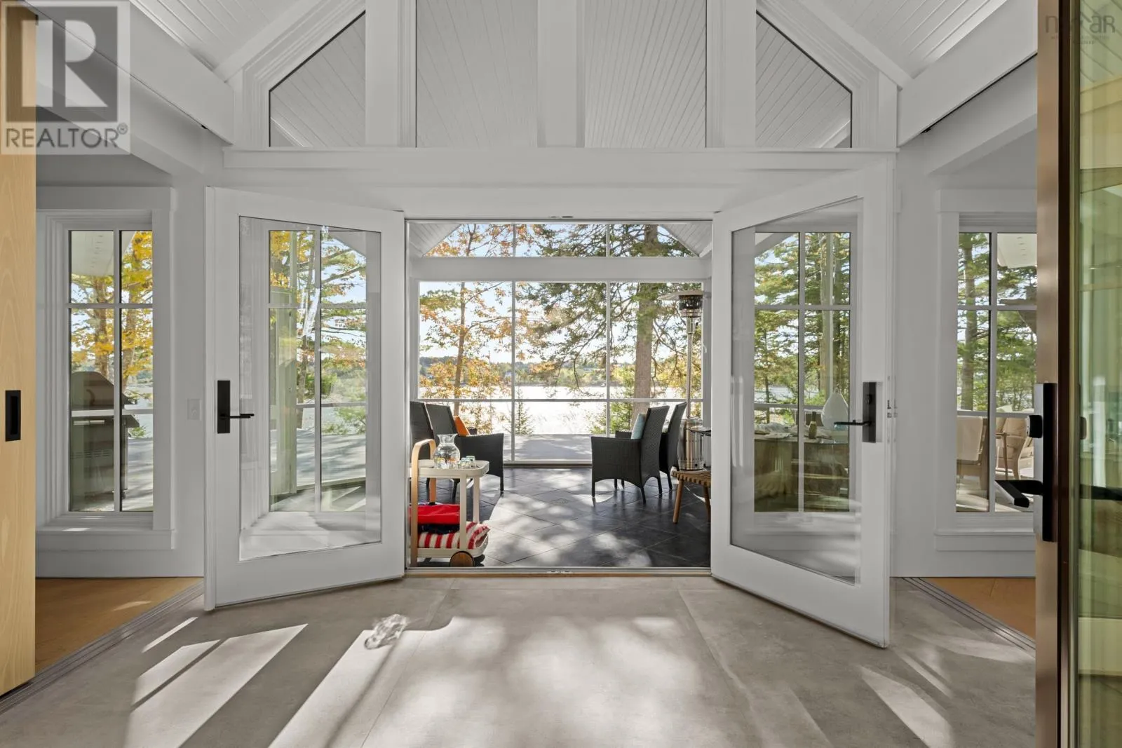 Highway 3 to Hermans Island Road, right onto Himmelman Lane, left at the fork, property on the right. Set upon 1.63 acres of pristine coastline with 200 feet of private ocean frontage, this contemporary oceanfront residence is a landmark of modern coastal design. As the first Platinum LEEDcertified home in the Maritimes, an international symbol of green building leadership and sustainability excellence, it represents the perfect balance between architectural sophistication and environmental consciousness. Reimagined through a complete interior transformation in 2017, the home blends clean modern lines with organic warmth. Expansive windows frame tranquil ocean views through a canopy of mature trees, filling the home with soft, shifting light from morning to dusk. Life here moves with the rhythm of the tides. Mornings might begin with coffee on the deck, afternoons spent sailing or kayaking from your own 116-foot wharf, and evenings gathered with friends as the horizon fades to soft gold. A private sandy beach and deep-water mooring make every day an opportunity for adventure or quiet reflection. The detached 1.5-storey garage offers flexible space for vehicles, hobbies, or a creative studio, complementing the home's thoughtful design. The grounds have been architecturally designed and professionally landscaped, with granite slab steps and paths, native plantings, and subtle lighting that highlight the property beautifully. As night settles and the lights reflect across the cove, the home feels calm, timeless, and connected A space that invites you to slow down, settle in, and stay awhile. (id:27476)