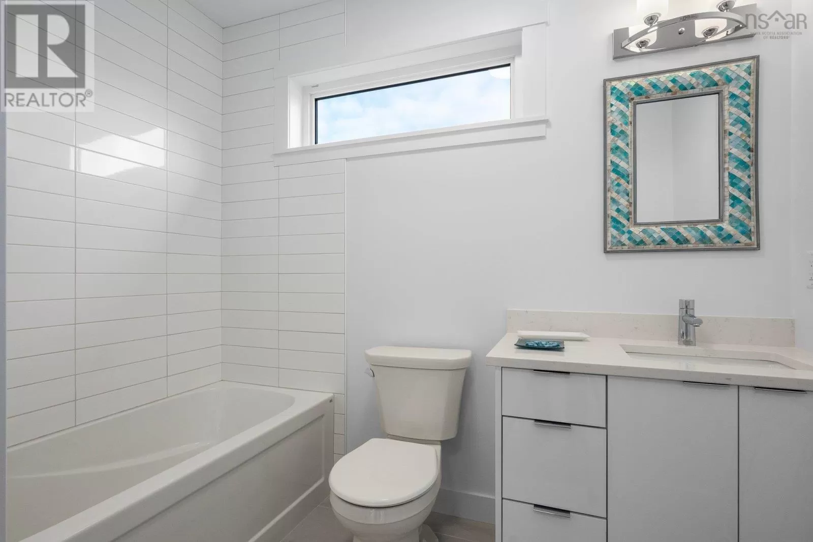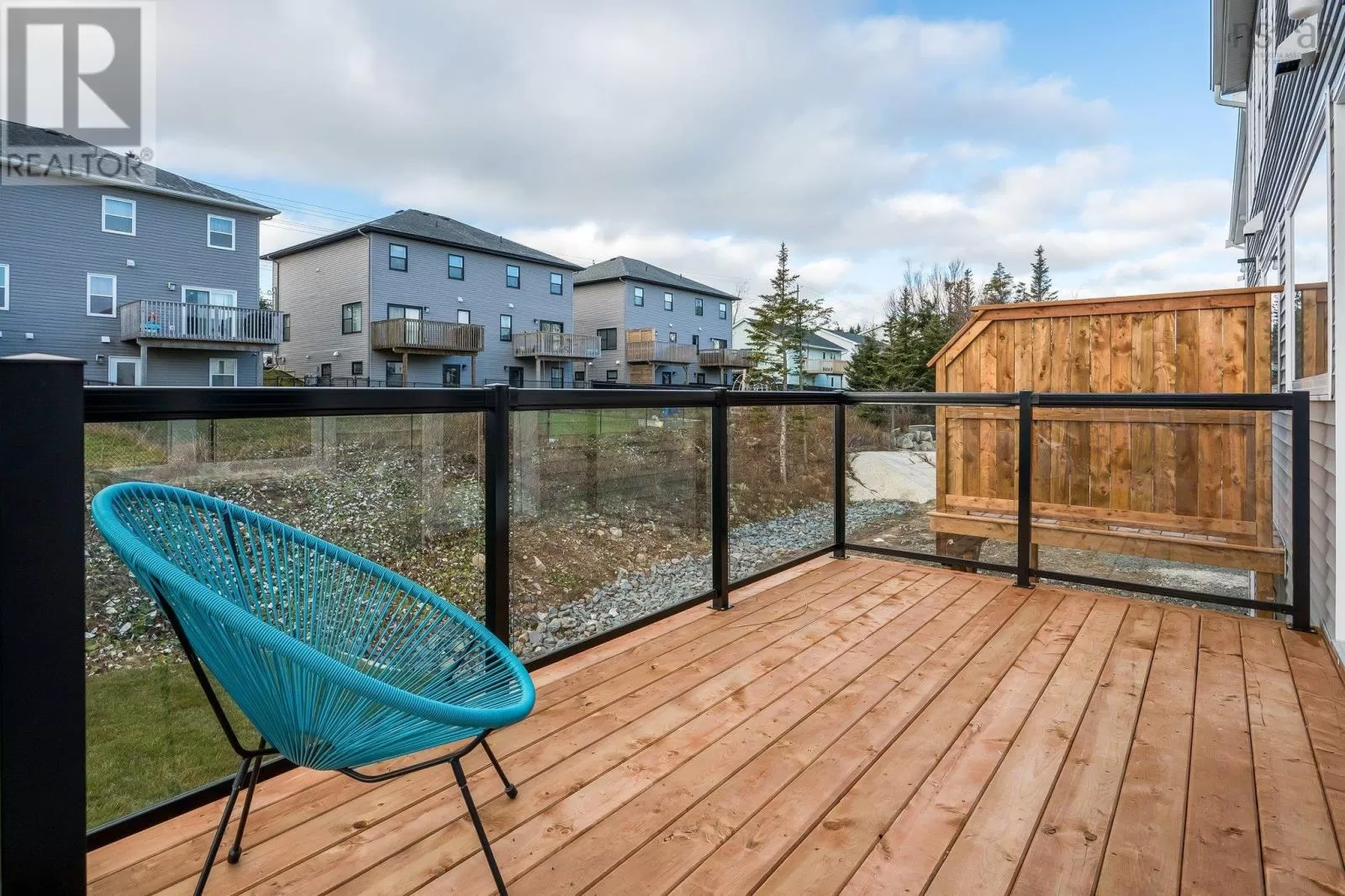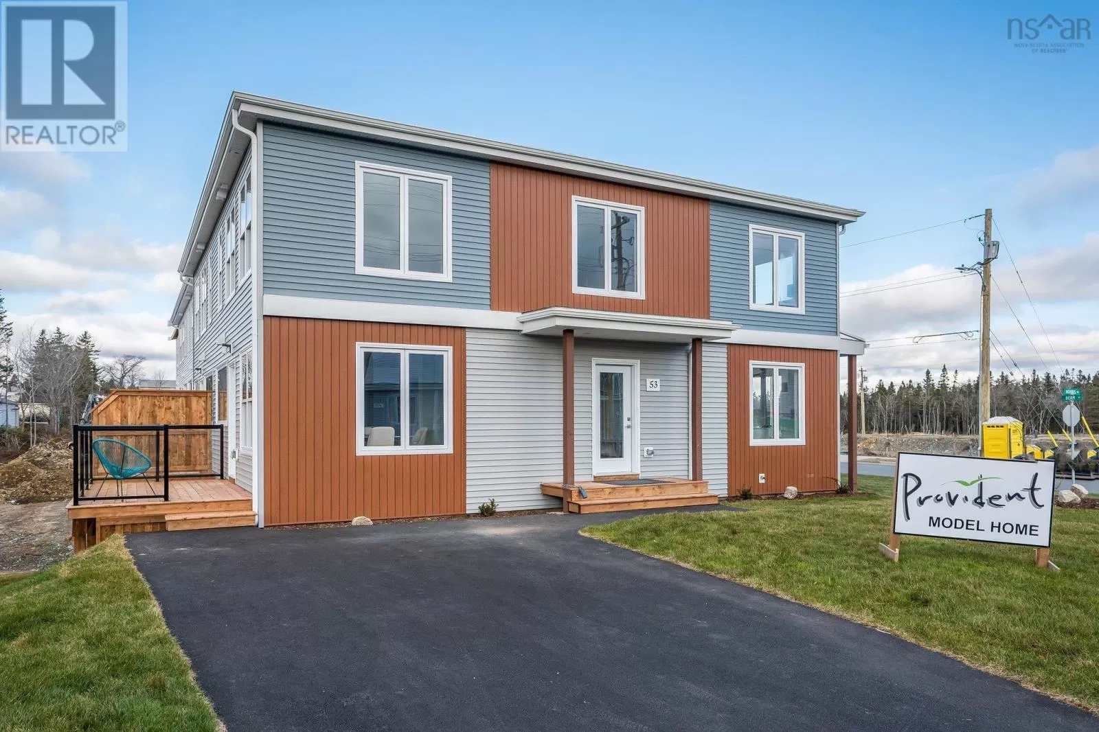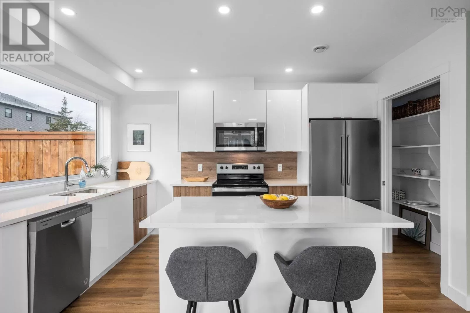 Herring Cove Road to Norris Drive, left on Berm Corner lot with private side entrance and double paved driveway! This very large, super bright, brand new semi-detached home is 2520 sqft. The unique corner lot gives the appearance of being a large detached home from the street. Enter the inviting front porch to a lovely foyer with designer tile flooring. Large kitchen and dining area feature exceptionally large windows for a welcoming space for the family to gather in. White gloss cabinets with wood accent details & quartz countertops, a massive fixed kitchen window bringing in so much light, a walk in pantry and fabulous island to gather around make this a chef's & entertainer's dream. The living room is a grand and a discrete powder room is ideal for guests. Comfort of a ductless heat pump on this level. Up the solid hardwood stairs you'll find a large master retreat with walk in closet and ensuite featuring a double vanity and shower. Two additional nice sized bedrooms up, upper floor laundry, and a 4 pc main bath complete this level. All hardsurface countertops in bathrooms. The basement is finished with a rec room that walks out to the yard, wet bar, good sized separate den/bedroom, and full bath. Carpet free with quality ceramic and laminate floors throughout. Located in the fabulous new Birchdale subdivision on the edge of Halifax/Herring Cove near the supervised beach at Long Pond and within 20 minutes to downtown Halifax. Come visit the furnished model home! Tremendous value in these Provident homes. Additional lots & layouts to choose from. Photos and Virtual tour are of the same layout for reference as facsimile. (id:27476)
