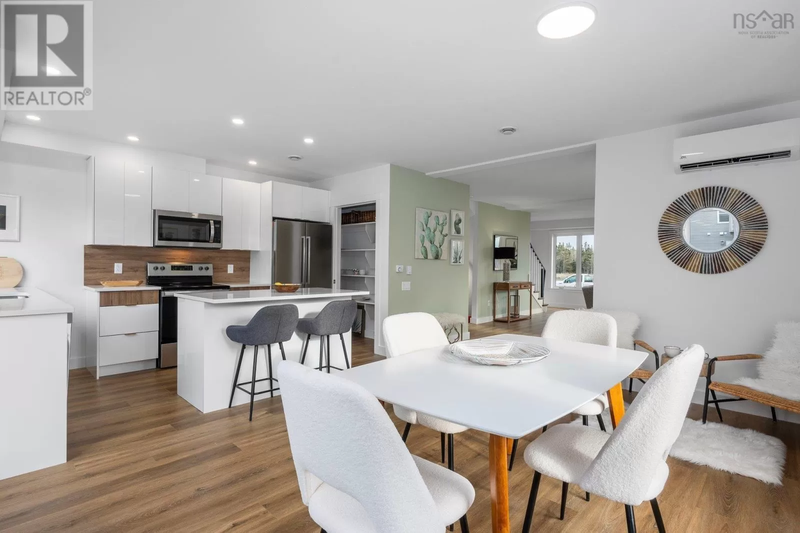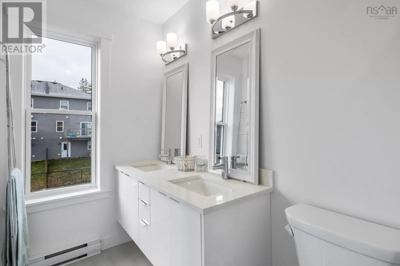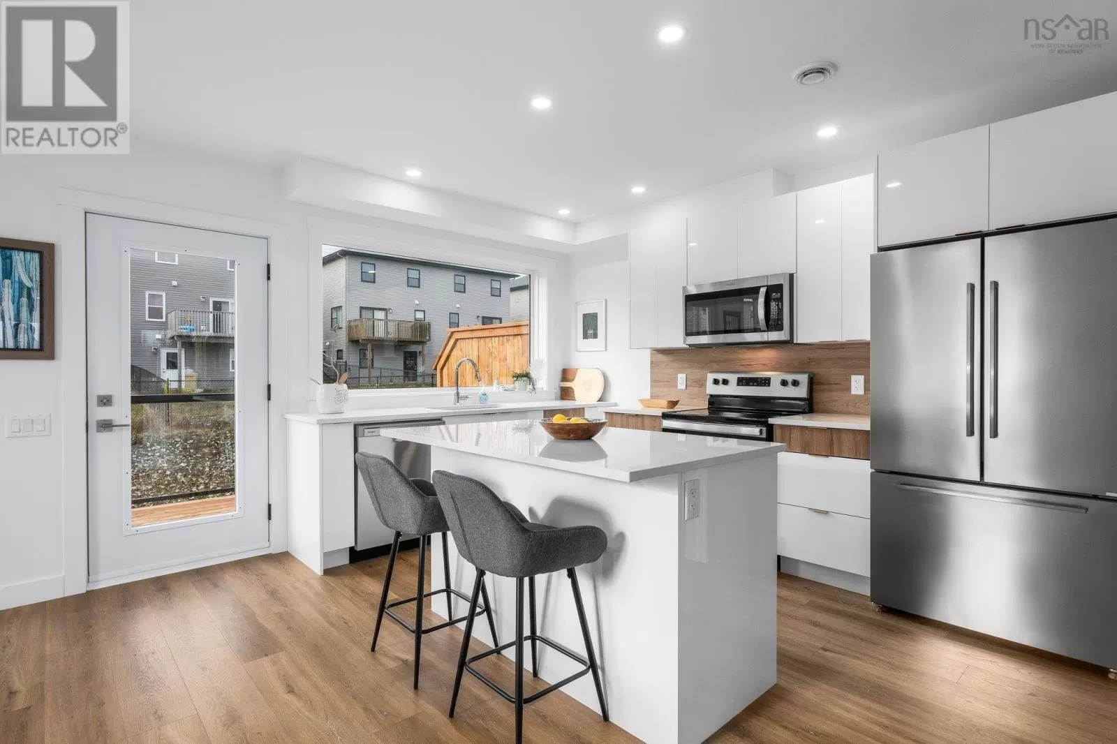 Herring Cove Road to Norris Drive, left on Berm Corner lot with private side entrance and double paved driveway! This very large, super bright, brand new semi-detached home is 2520 sqft. The unique corner lot gives the appearance of being a large detached home from the street. Enter the inviting front porch to a lovely foyer with designer tile flooring. Large kitchen and dining area feature exceptionally large windows for a welcoming space for the family to gather in. White gloss cabinets with wood accent details & quartz countertops, a massive fixed kitchen window bringing in so much light, a walk in pantry and fabulous island to gather around make this a chef's & entertainer's dream. The living room is a grand and a discrete powder room is ideal for guests. Comfort of a ductless heat pump on this level. Up the solid hardwood stairs you'll find a large master retreat with walk in closet and ensuite featuring a double vanity and shower. Two additional nice sized bedrooms up, upper floor laundry, and a 4 pc main bath complete this level. All hardsurface countertops in bathrooms. The basement is finished with a rec room that walks out to the yard, wet bar, good sized separate den/bedroom, and full bath. Carpet free with quality ceramic and laminate floors throughout. Located in the fabulous new Birchdale subdivision on the edge of Halifax/Herring Cove near the supervised beach at Long Pond and within 20 minutes to downtown Halifax. Come visit the furnished model home! Tremendous value in these Provident homes. Additional lots & layouts to choose from. Photos and Virtual tour are of the same layout for reference as facsimile. (id:27476)