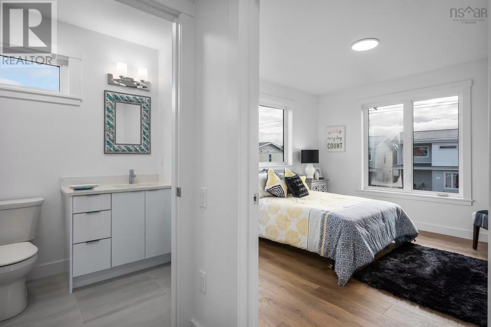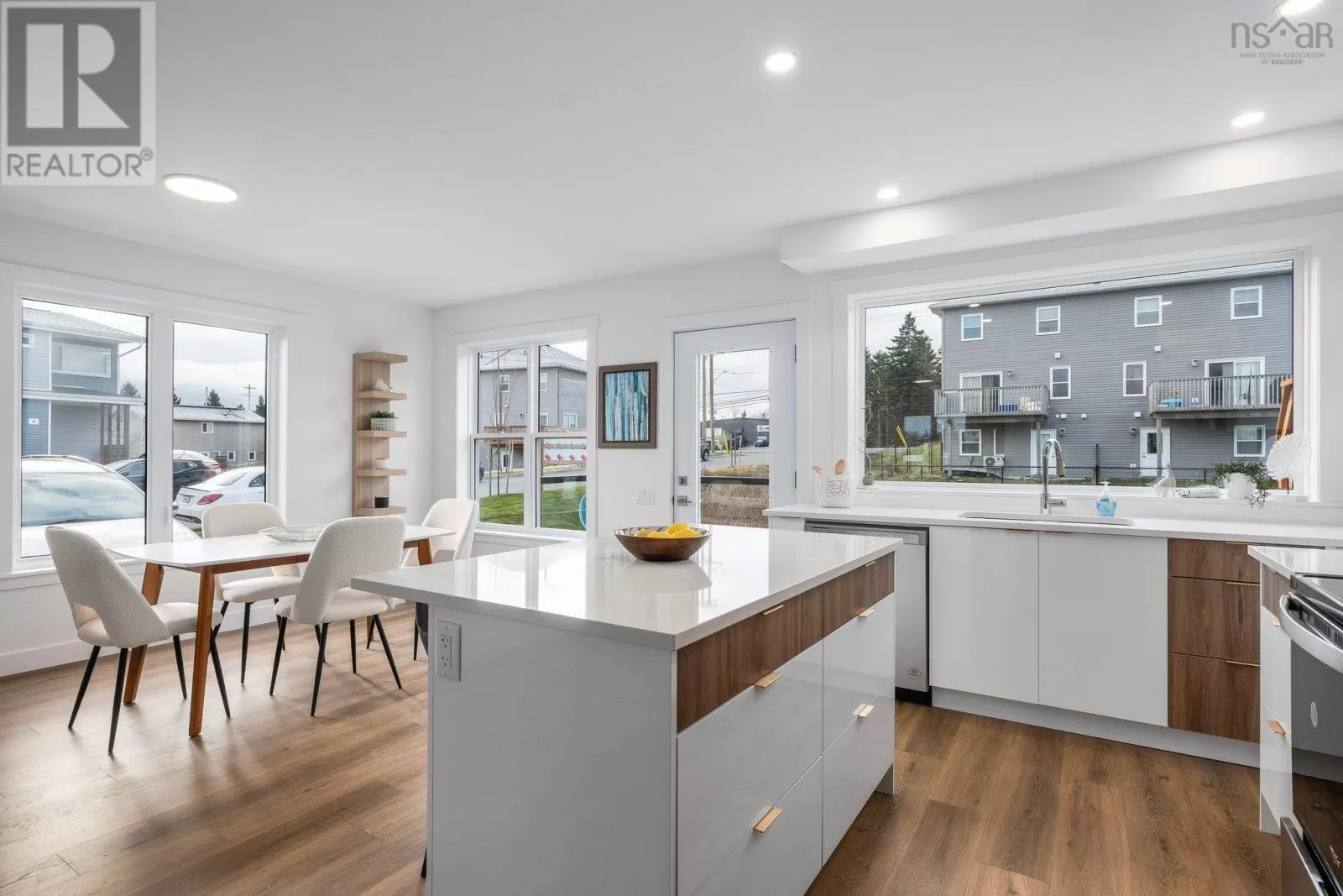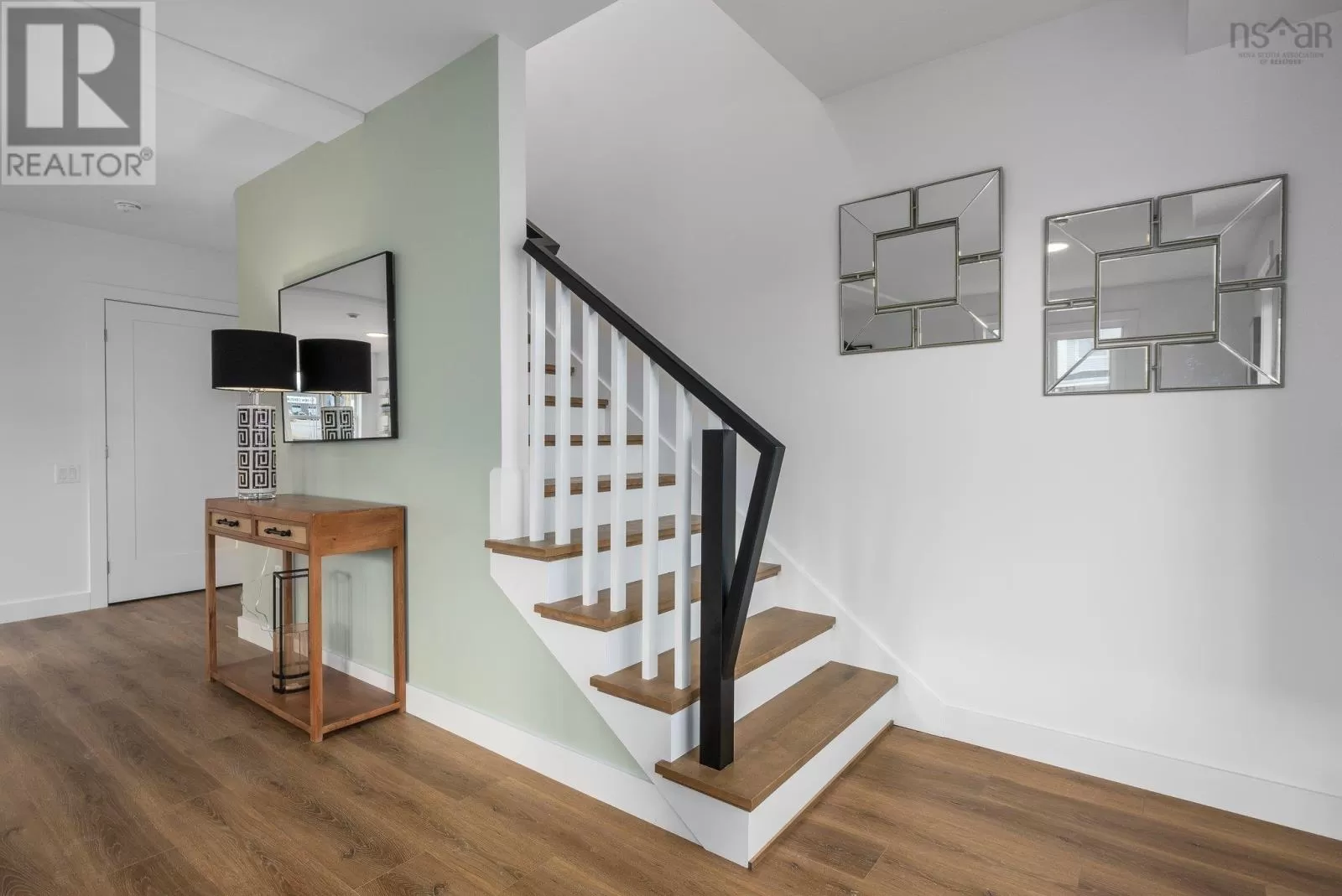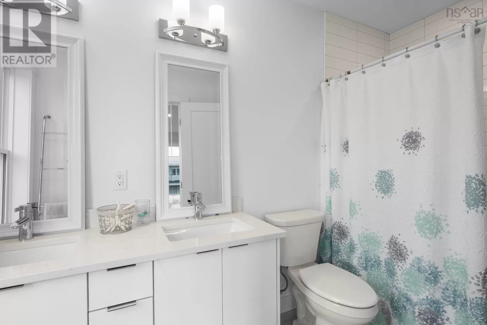 Herring Cove Road to Norris Drive, left on Berm Corner lot with private side entrance and double paved driveway! This very large, super bright, brand new semi-detached home is 2520 sqft. The unique corner lot gives the appearance of being a large detached home from the street. Enter the inviting front porch to a lovely foyer with designer tile flooring. Large kitchen and dining area feature exceptionally large windows for a welcoming space for the family to gather in. White gloss cabinets with wood accent details & quartz countertops, a massive fixed kitchen window bringing in so much light, a walk in pantry and fabulous island to gather around make this a chef's & entertainer's dream. The living room is a grand and a discrete powder room is ideal for guests. Comfort of a ductless heat pump on this level. Up the solid hardwood stairs you'll find a large master retreat with walk in closet and ensuite featuring a double vanity and shower. Two additional nice sized bedrooms up, upper floor laundry, and a 4 pc main bath complete this level. All hardsurface countertops in bathrooms. The basement is finished with a rec room that walks out to the yard, wet bar, good sized separate den/bedroom, and full bath. Carpet free with quality ceramic and laminate floors throughout. Located in the fabulous new Birchdale subdivision on the edge of Halifax/Herring Cove near the supervised beach at Long Pond and within 20 minutes to downtown Halifax. Come visit the furnished model home! Tremendous value in these Provident homes. Additional lots & layouts to choose from. Photos and Virtual tour are of the same layout for reference as facsimile. (id:27476)