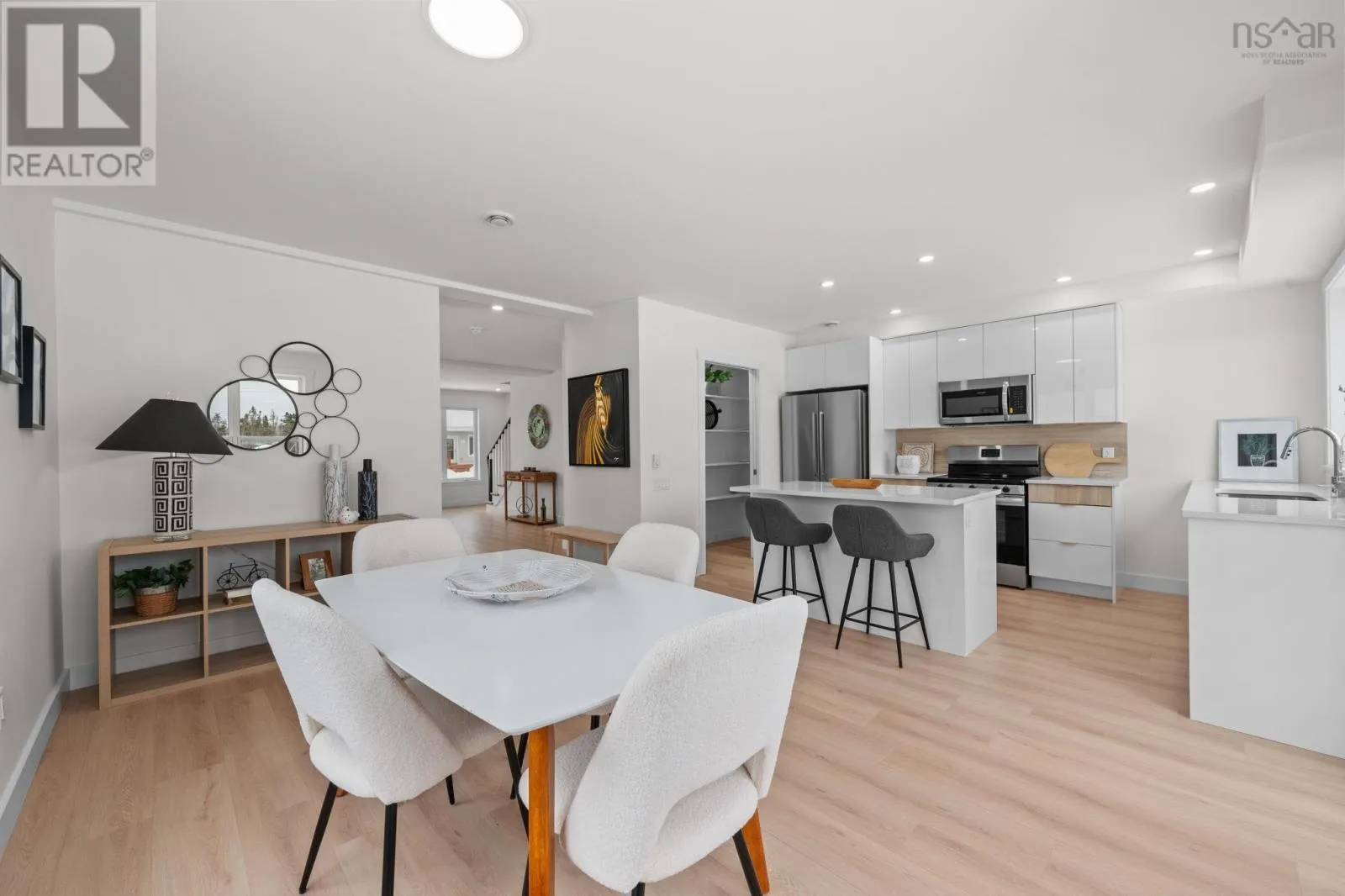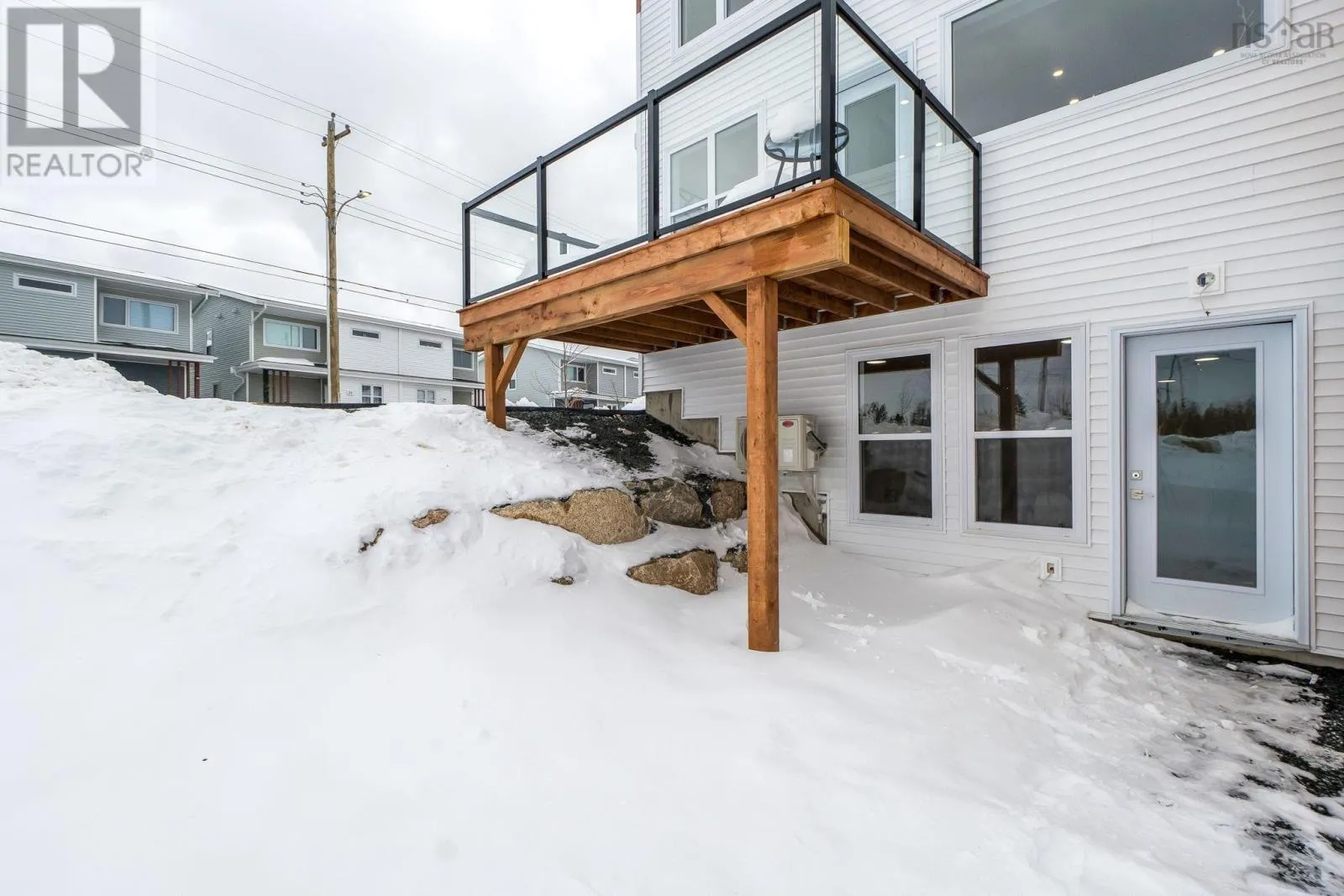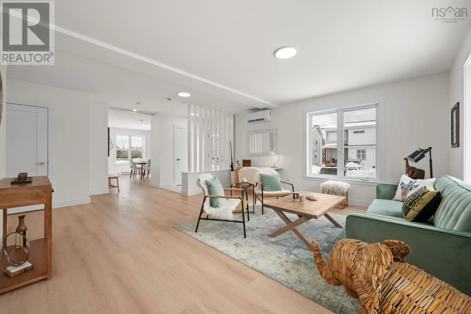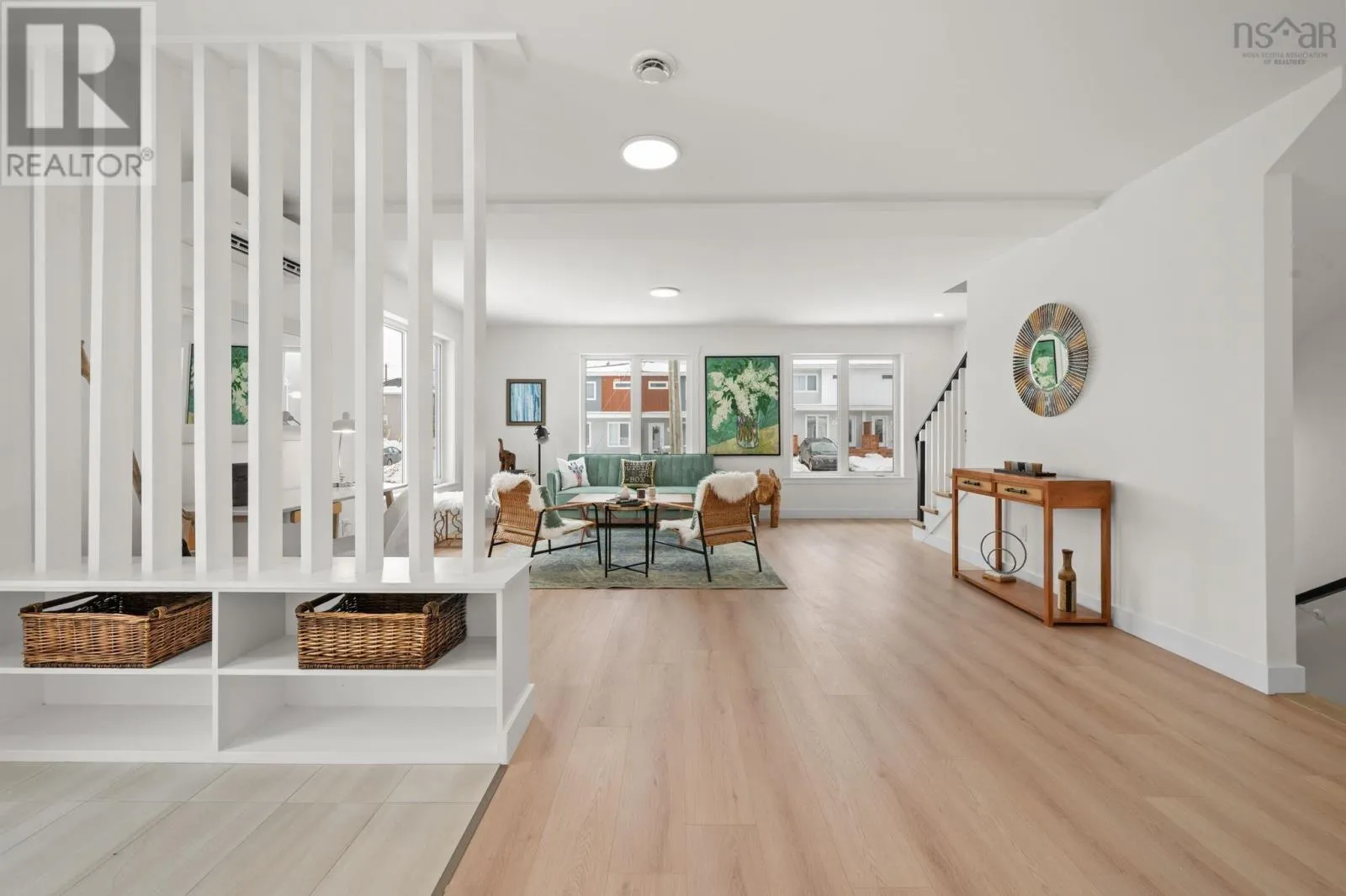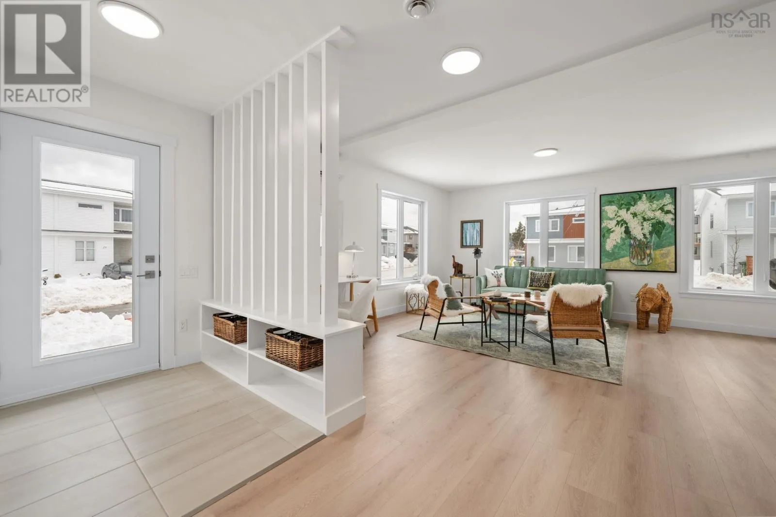 Herring Cove Road to Norris Drive, left on Berm Corner lot with private side entrance and double paved driveway! This very large, super bright, brand new semi-detached home is 2520 sqft. The unique corner lot gives the appearance of being a large detached home from the street. Enter the inviting front porch to a lovely foyer with designer tile flooring. Large kitchen and dining area feature exceptionally large windows for a welcoming space for the family to gather in. White gloss cabinets with wood accent details & quartz countertops, a massive fixed kitchen window bringing in so much light, a walk in pantry and fabulous island to gather around make this a chef's & entertainer's dream. The living room is a grand and a discrete powder room is ideal for guests. Comfort of a ductless heat pump on this level. Up the solid hardwood stairs you'll find a large master retreat with walk in closet and ensuite featuring a double vanity and shower. Two additional nice sized bedrooms up, upper floor laundry, and a 4 pc main bath complete this level. All hardsurface countertops in bathrooms. The basement is finished with a rec room that walks out to the yard, wet bar, good sized separate den/bedroom, and full bath. Carpet free with quality ceramic and laminate floors throughout. Located in the fabulous new Birchdale subdivision on the edge of Halifax/Herring Cove near the supervised beach at Long Pond and within 20 minutes to downtown Halifax. Come visit the furnished model home! Tremendous value in these Provident homes. Additional lots & layouts to choose from. Photos and Virtual tour are of the same layout for reference as facsimile. (id:27476)