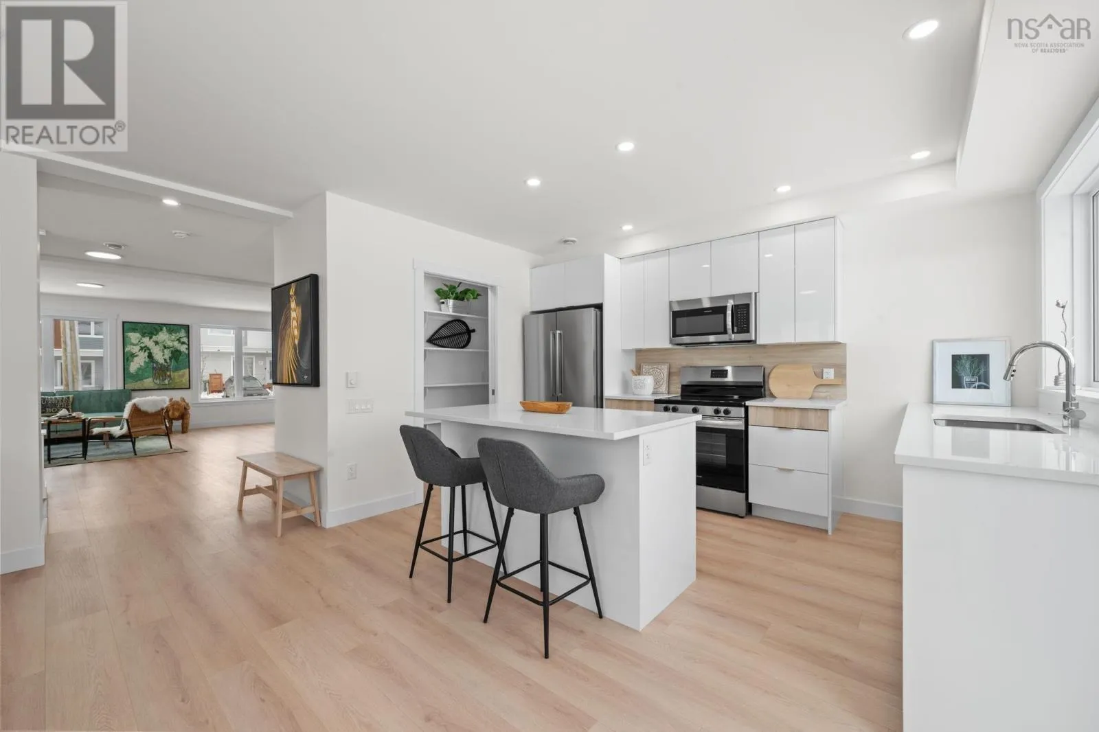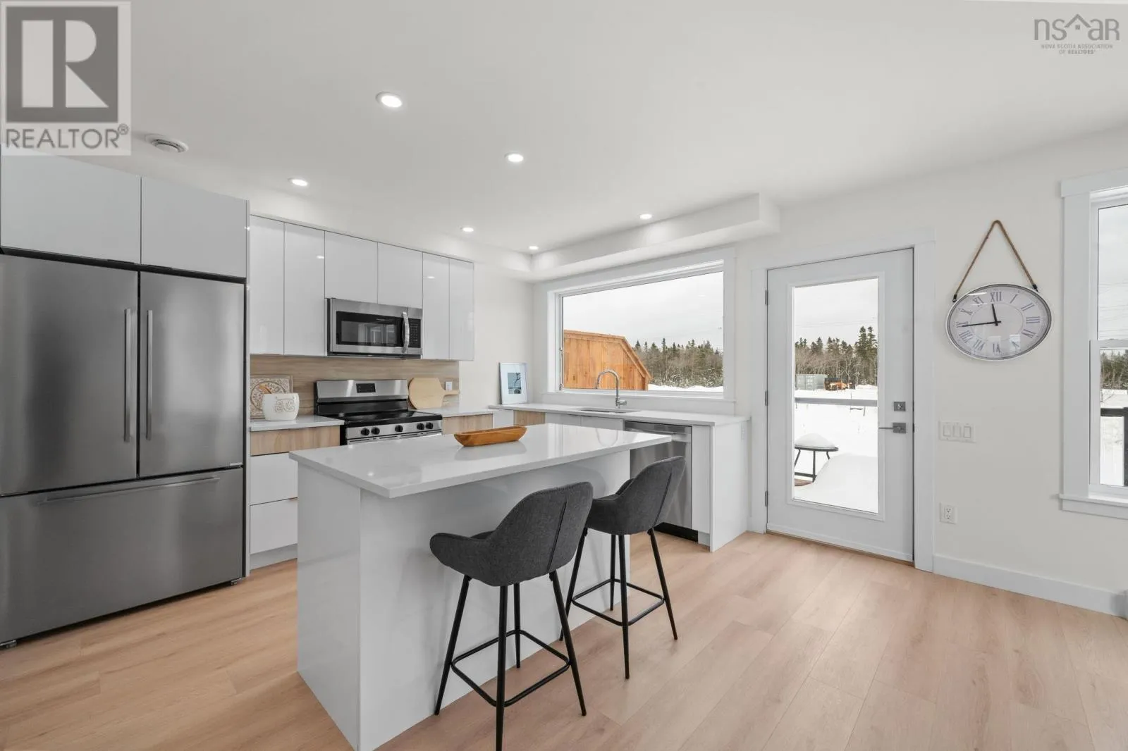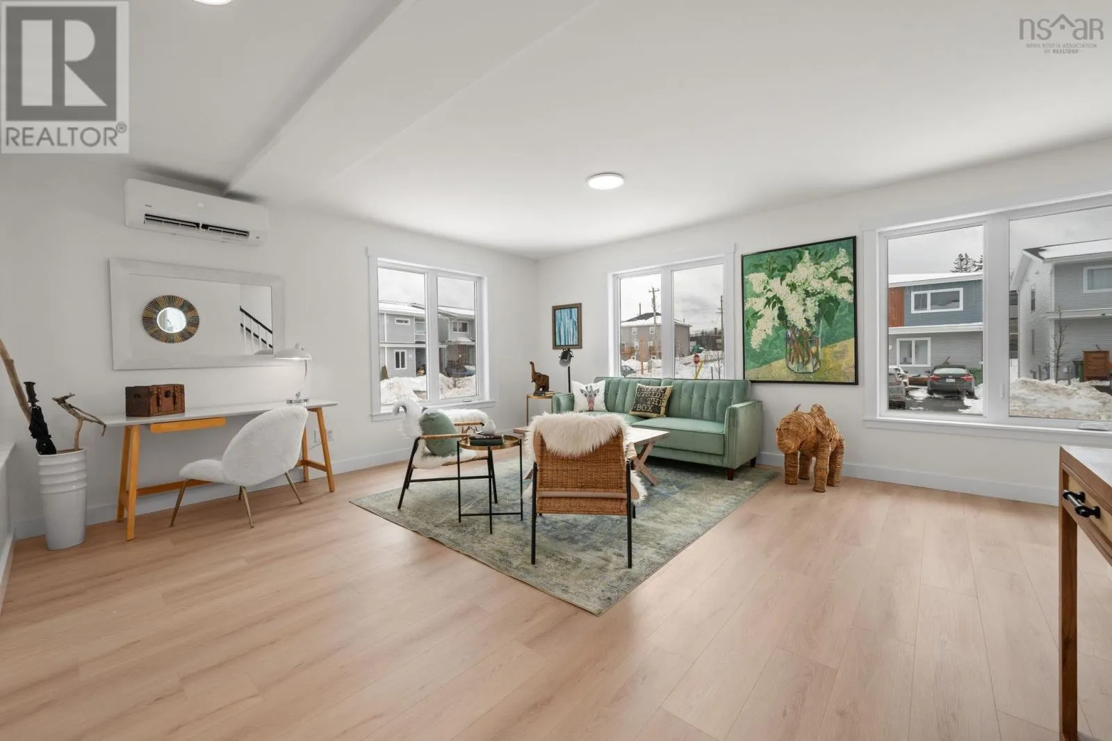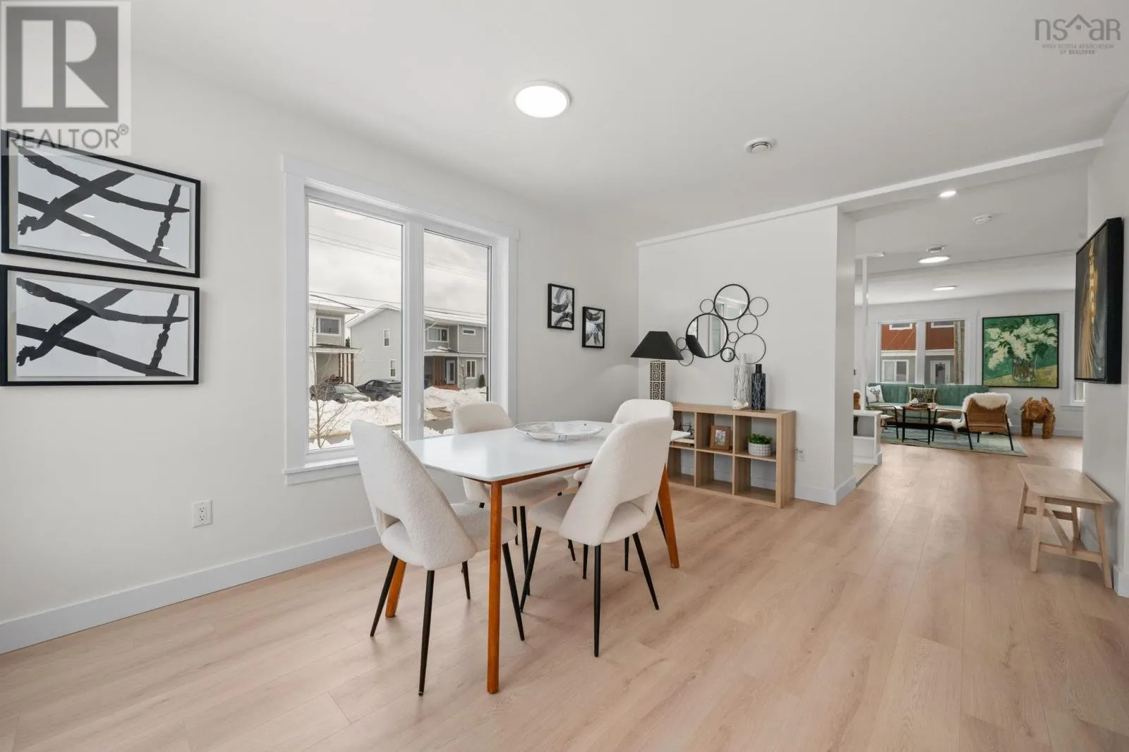 Herring Cove Road to Norris Drive, left on Berm Corner lot with private side entrance and double paved driveway! This very large, super bright, brand new semi-detached home is 2520 sqft. The unique corner lot gives the appearance of being a large detached home from the street. Enter the inviting front porch to a lovely foyer with designer tile flooring. Large kitchen and dining area feature exceptionally large windows for a welcoming space for the family to gather in. White gloss cabinets with wood accent details & quartz countertops, a massive fixed kitchen window bringing in so much light, a walk in pantry and fabulous island to gather around make this a chef's & entertainer's dream. The living room is a grand and a discrete powder room is ideal for guests. Comfort of a ductless heat pump on this level. Up the solid hardwood stairs you'll find a large master retreat with walk in closet and ensuite featuring a double vanity and shower. Two additional nice sized bedrooms up, upper floor laundry, and a 4 pc main bath complete this level. All hardsurface countertops in bathrooms. The basement is finished with a rec room that walks out to the yard, wet bar, good sized separate den/bedroom, and full bath. Carpet free with quality ceramic and laminate floors throughout. Located in the fabulous new Birchdale subdivision on the edge of Halifax/Herring Cove near the supervised beach at Long Pond and within 20 minutes to downtown Halifax. Come visit the furnished model home! Tremendous value in these Provident homes. Additional lots & layouts to choose from. Photos and Virtual tour are of the same layout for reference as facsimile. (id:27476)