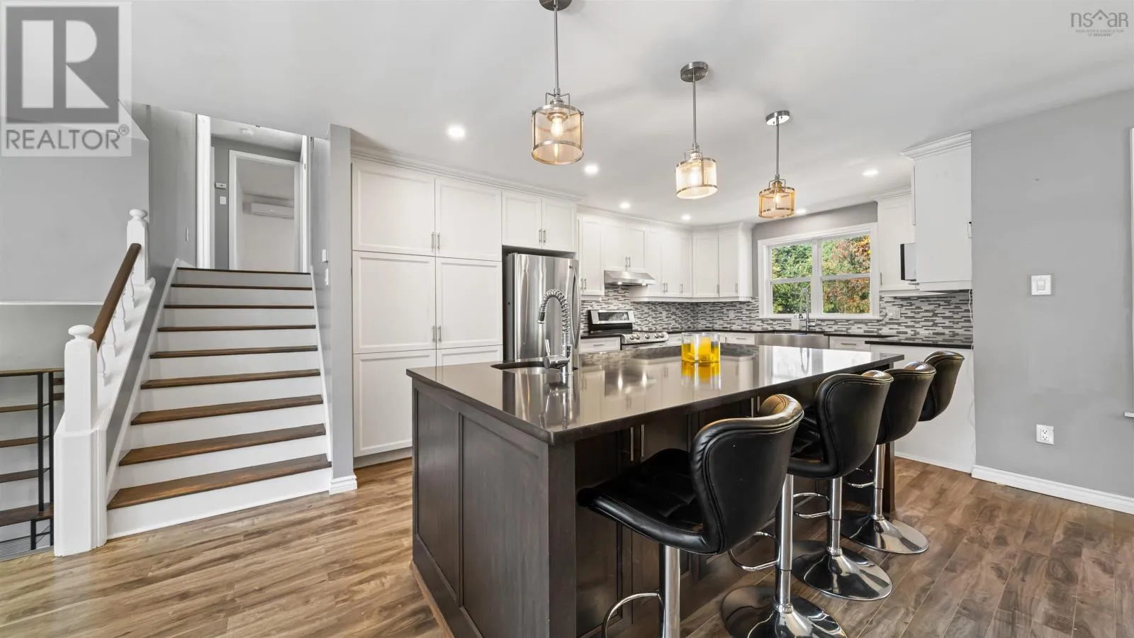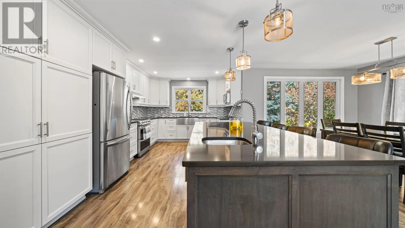 Highway 101 to New Minas Connector Road to Prospect Road Welcome to 5093 Prospect Road! This beautiful four-bedroom, three-bathroom home blends modern updates with family-friendly living. Conveniently located near the highway and just minutes to Kentville and New Minas, this property offers both comfort and accessibility. The layout provides plenty of space for the whole family, the upper level features two spacious bedrooms, a well-sized main bathroom, and a primary bedroom complete with a newly renovated ensuite. On the main level, youll find a bright living room, an additional bedroom, and a brand-new bathroom with a walk-in shower. A few steps up, the open-concept family room, dining area, and expansive kitchen with floor-to-ceiling cabinetry and granite countertops create a welcoming space to gather and entertain. Throughout the home, new heat pumps provide energy-efficient heating and cooling all year round. This side split is move-in ready and available for a quick closing. (id:27476)