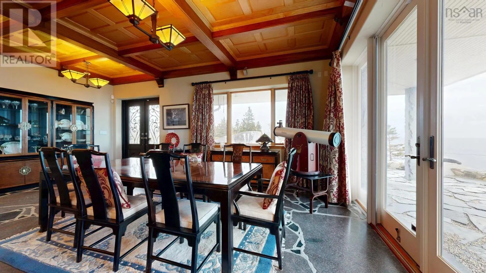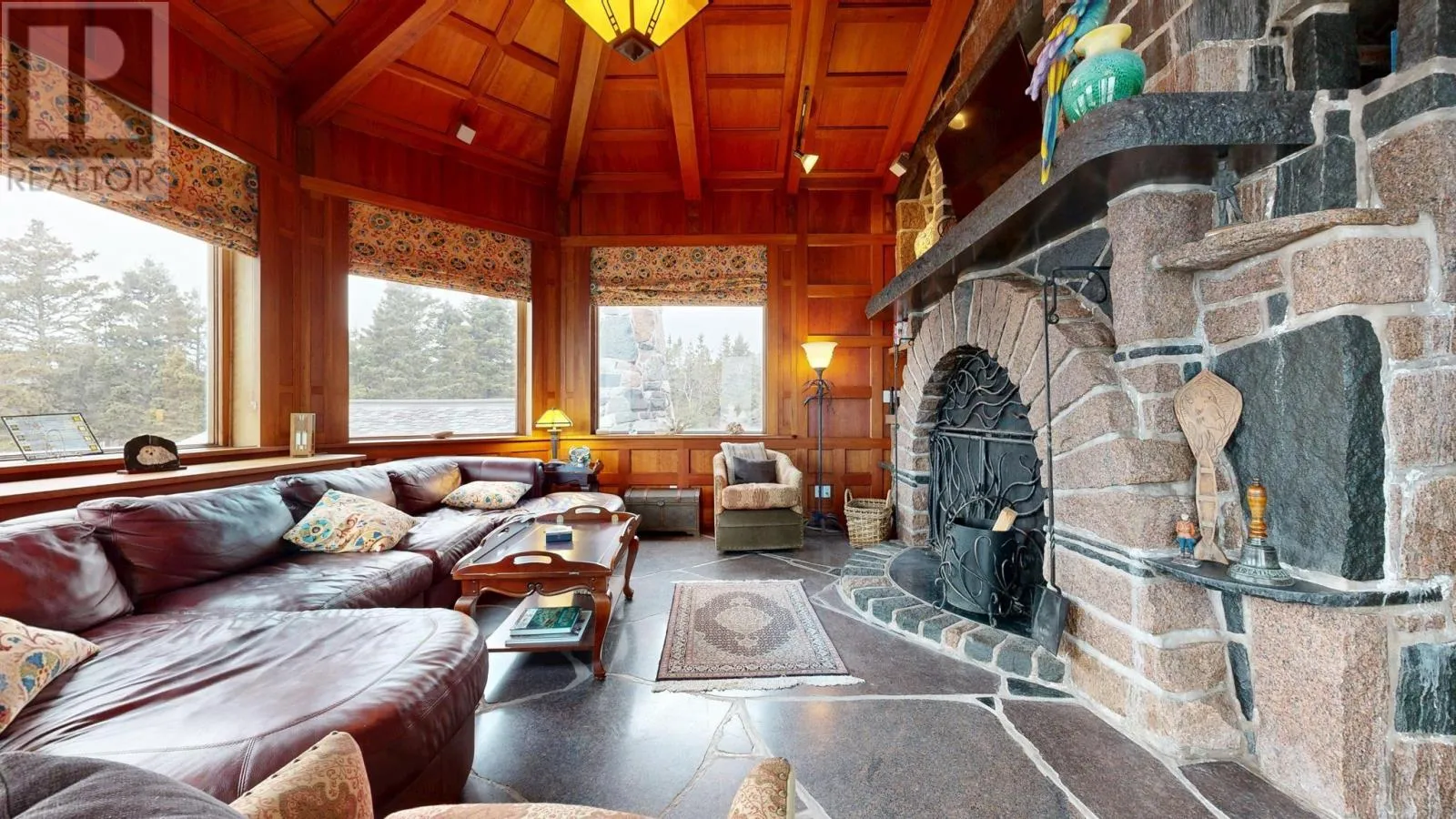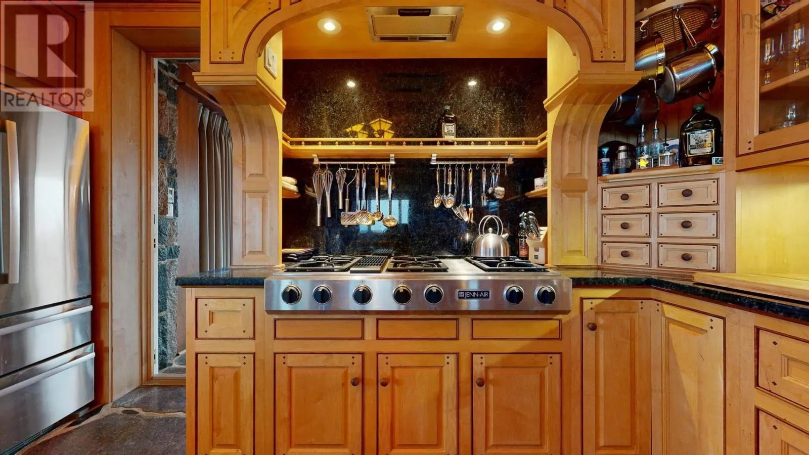 By appointment only!!! Exit 20 or 21 from highway 103, follow #3 to Hunts Point to Hunts Point Wharf Rd. Turn left at cemetery. Left, through gates. *** Visit Realtor.ca for 3D walk through *** Floor plans, survey and more available through your agent. L&S#1295. Chateau by the Sea...... Stunning, dramatic & distinctive, this granite chateau commands a ruggedly beautiful setting with 400 feet of bold oceanfront and panoramic views that encompass sunrise, sunset and the rolling surf. Inside and out, its a showpiece. ICF construction, slate roof with copper flashing, copper garage doors, rock seawall, slate patio and striking granite landscape accents. From the birdseye maple ceilings & cherry panelled living room with stone fireplace to the heated granite floors & intricate wrought iron accents, the materials & craftsmanship are nothing but the best. A chefs dream, theres a gourmet maple kitchen with granite & butcher block countertops, 6 burner Jenn-Air cooktop and breakfast nook. Four bedrooms, all with ensuites and ocean views.The primary suite features soaring ceilings, nautical stained glass windows, 2 covered ocean side balconies, soaker tub and steam shower. An opulent guest suite includes ensuite bath and 2 Juliette balconies graced with ornate copper clematis artwork. Special touches include luxurious draperies, exquisite cabinetry throughout, mission style lighting and propane fireplaces in 2nd floor bedrooms. For outdoor soirees, multiple doors lead from the living areas to an expansive flagstone terrace and curved stone staircase to the lobster pavilion, an outdoor dining facility complete with massive fireplace & chimney, grill and granite table. Get the Catch of the Day from the wharf just around the corner. Further investment will be required to remedy storm damage to hardscaping, rejuvenate gardens and address needed repairs to wooden portions of house exterior. Priced below assessment, offered as is, most furniture and contents included. Within minutes of white sand beaches, golf at White Point and fine dining at the Quarterdeck on Summerville Beach. Less than 2 hours to international airport, within 10 minutes of hospital, shopping, theater, museums and other amenities in Historic Liverpoo (id:27476)