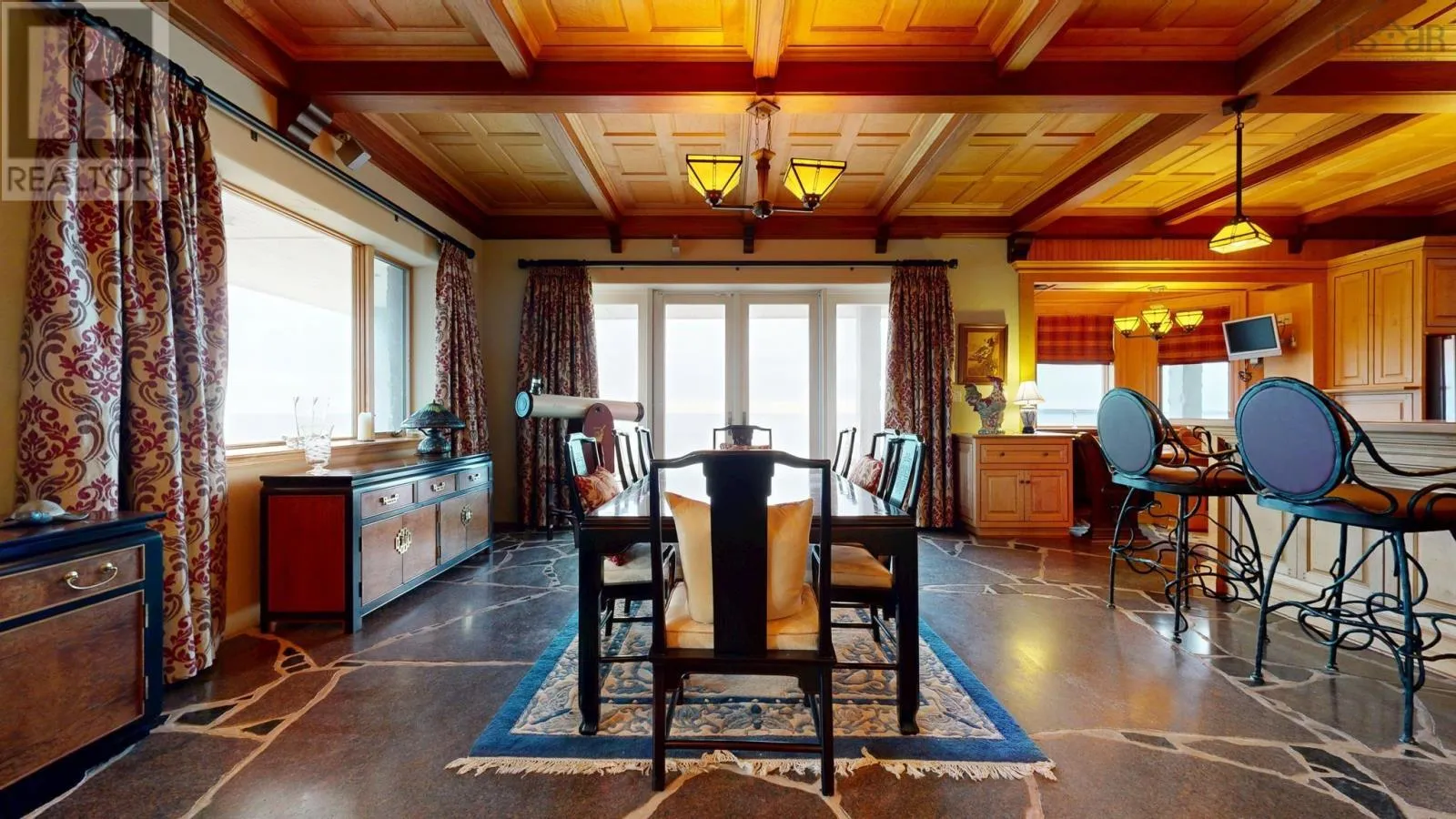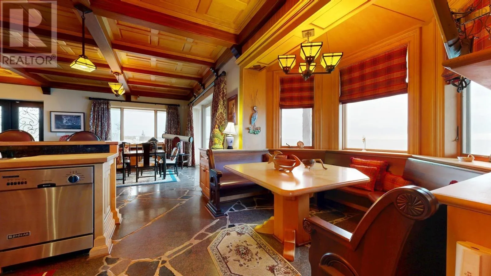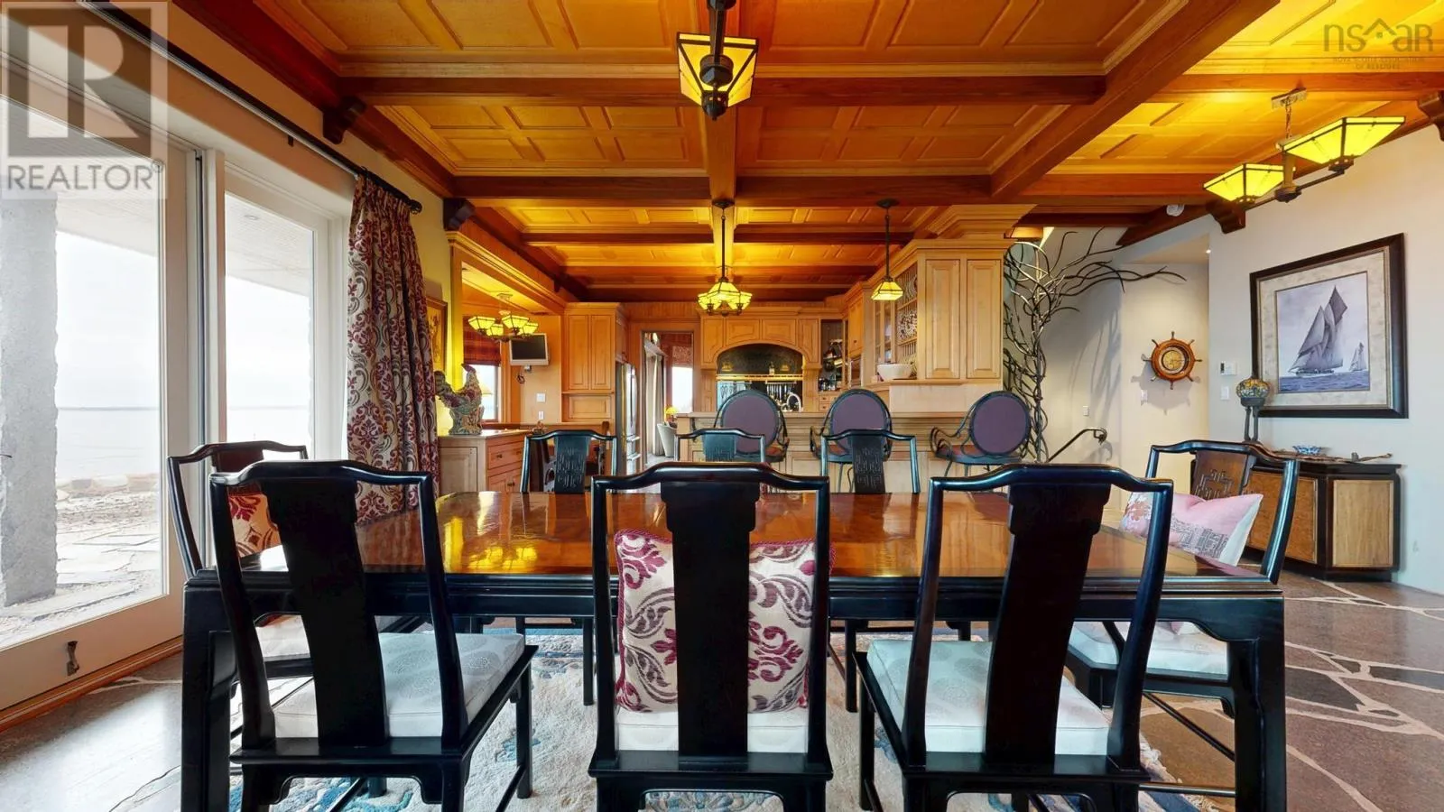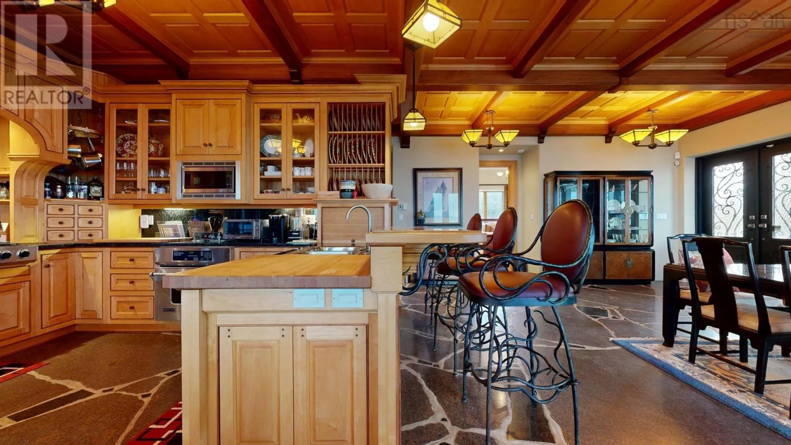 By appointment only!!! Exit 20 or 21 from highway 103, follow #3 to Hunts Point to Hunts Point Wharf Rd. Turn left at cemetery. Left, through gates. *** Visit Realtor.ca for 3D walk through *** Floor plans, survey and more available through your agent. L&S#1295. Chateau by the Sea...... Stunning, dramatic & distinctive, this granite chateau commands a ruggedly beautiful setting with 400 feet of bold oceanfront and panoramic views that encompass sunrise, sunset and the rolling surf. Inside and out, its a showpiece. ICF construction, slate roof with copper flashing, copper garage doors, rock seawall, slate patio and striking granite landscape accents. From the birdseye maple ceilings & cherry panelled living room with stone fireplace to the heated granite floors & intricate wrought iron accents, the materials & craftsmanship are nothing but the best. A chefs dream, theres a gourmet maple kitchen with granite & butcher block countertops, 6 burner Jenn-Air cooktop and breakfast nook. Four bedrooms, all with ensuites and ocean views.The primary suite features soaring ceilings, nautical stained glass windows, 2 covered ocean side balconies, soaker tub and steam shower. An opulent guest suite includes ensuite bath and 2 Juliette balconies graced with ornate copper clematis artwork. Special touches include luxurious draperies, exquisite cabinetry throughout, mission style lighting and propane fireplaces in 2nd floor bedrooms. For outdoor soirees, multiple doors lead from the living areas to an expansive flagstone terrace and curved stone staircase to the lobster pavilion, an outdoor dining facility complete with massive fireplace & chimney, grill and granite table. Get the Catch of the Day from the wharf just around the corner. Further investment will be required to remedy storm damage to hardscaping, rejuvenate gardens and address needed repairs to wooden portions of house exterior. Priced below assessment, offered as is, most furniture and contents included. Within minutes of white sand beaches, golf at White Point and fine dining at the Quarterdeck on Summerville Beach. Less than 2 hours to international airport, within 10 minutes of hospital, shopping, theater, museums and other amenities in Historic Liverpoo (id:27476)