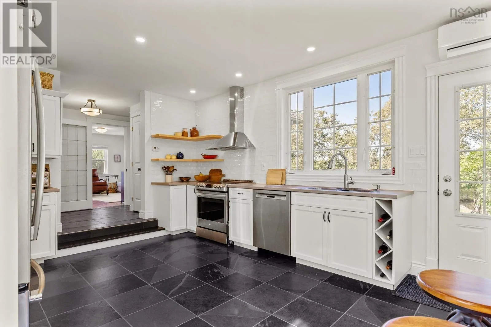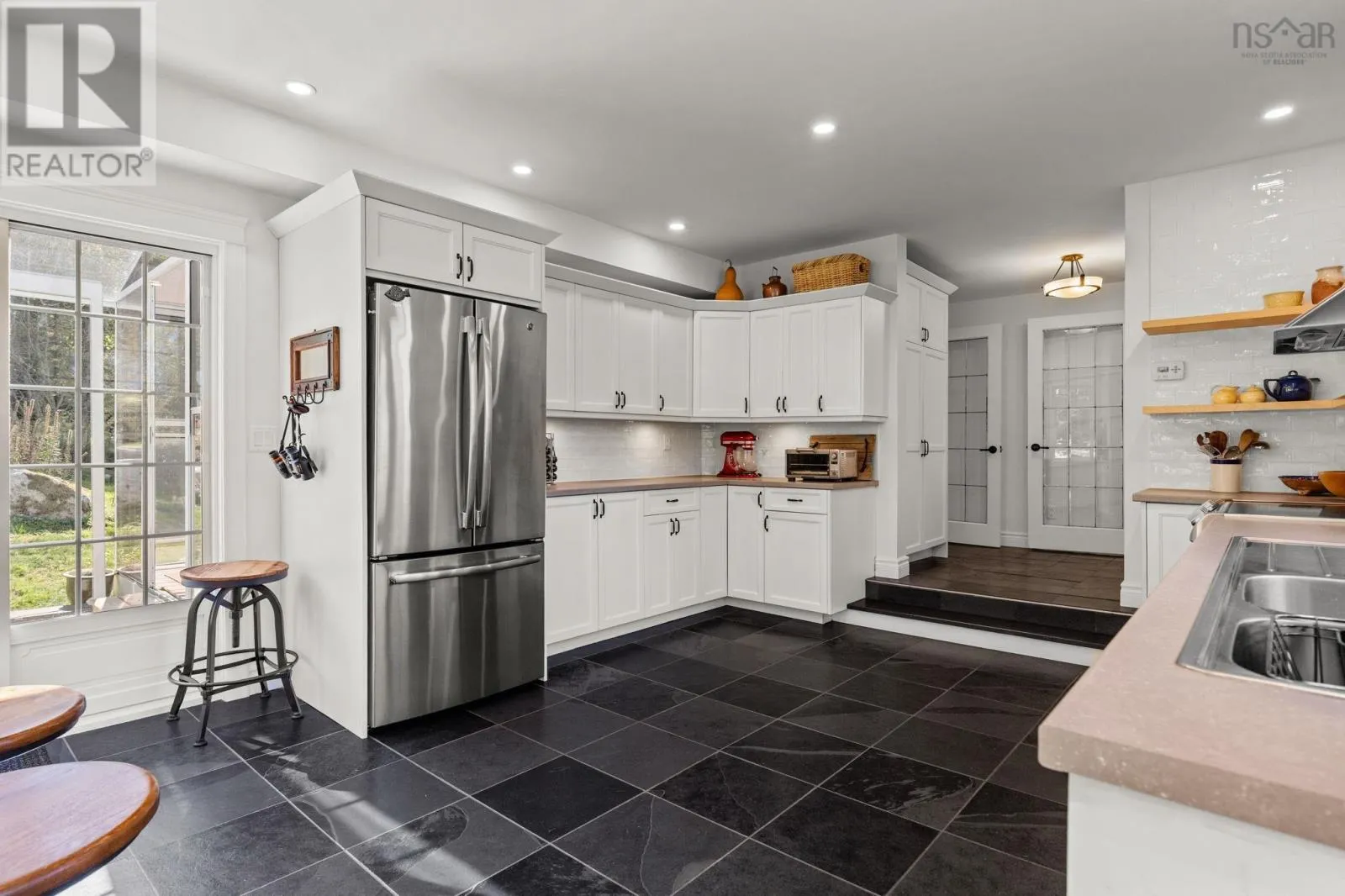 Tantallon-Highway 103 to Exit 5 Take Highway #333 to Indian Harbour. Nestled on a secluded 1.5-acre lot in Indian Harbour, this inviting home with a detached double garage blends historic charm with thoughtful modern upgrades. Originally one of the areas first dwellings, it has been carefully expanded and renovated to offer both character and comfort. Set in a serene location with incredible wildlife views from deer and birds to the occasional bobcat or bear. Step inside to a renovated kitchen featuring heated floors and an oversized window that frames the natural surroundings like living artwork. The sun-drenched atrium is a perfect retreat year-round. The ensuites soaker tub is perfect to enjoy natural scenery and wildlife. Dining area has been upgraded with oak flooring and an updated fireplace. Outdoors, a rustic summer bunkhouse offers potential for a creative fix-up, while numerous fruit trees, along with wisteria, and grape vines, make the property a true delight. This home boasts a long list of improvements: roof(2021), septic(2020), hot water tank, LG heat pump with 3 heads and a generator. The double garage has a new door, reshingled roof and storage space on lower level. Set on a private 1.5-acre parcel in Indian Harbour and close to trails, beaches, and Peggys Cove, this property combines history, modern comfort, and a serene lifestyle in one inviting package. (id:27476)