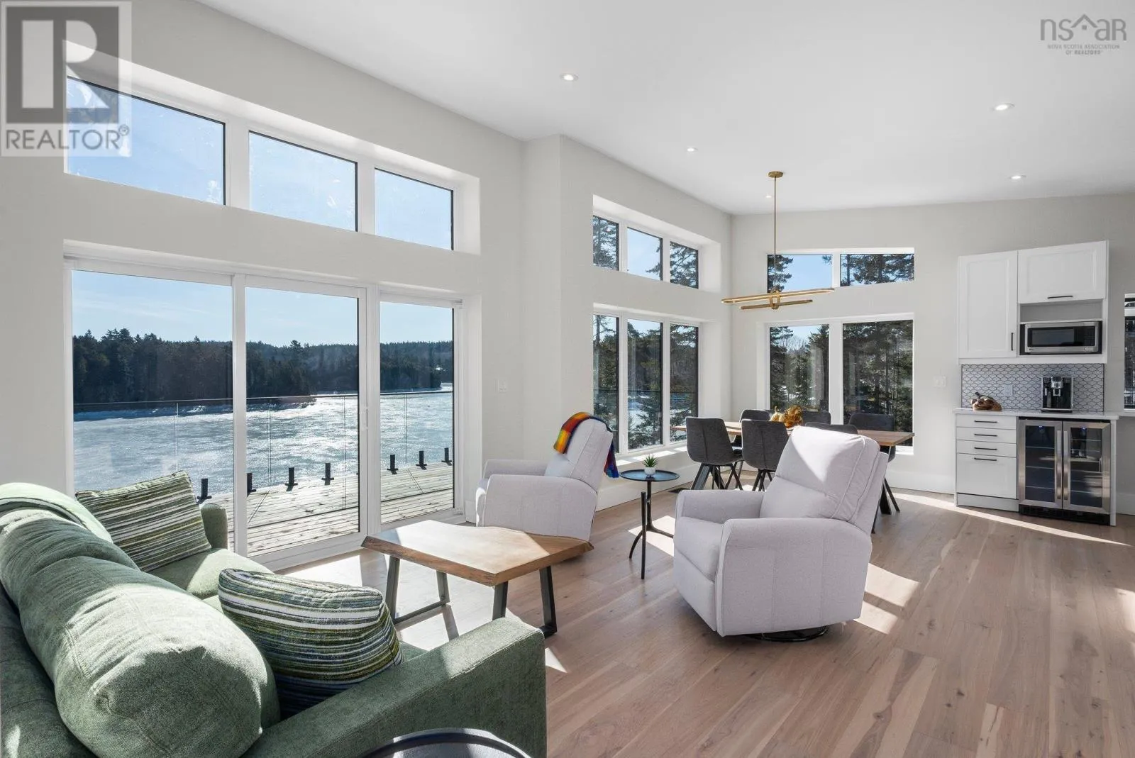From Highway 332, take Indian Path Road. Experience coastal luxury in this brand-new, ICF-constructed oceanfront home, perfectly positioned on 1.34 private, southeast-facing acres. Thoughtfully designed for comfort, efficiency, and breathtaking views, this 2,067 sq. ft. contemporary masterpiece is the ultimate seaside sanctuary. Step inside to an open-concept living space adorned with hickory hardwood floors and modern fixtures, from impressive feature lighting to custom hand rails. The expansive triple-glazed, hurricane-proof windows frame stunning ocean vistas while providing superior energy efficiency and storm protection. The main level is designed for modern living where you'll find the open kitchen, living, dining room, primary bedroom with ensuite and a bright and airy sunroom, perfect for soaking in the coastal scenery. Continuing down to the light lower level, also designed for seamless indoor-outdoor living with its full size walk out doors to the garden in the family room, 2 more bedrooms, a luxurious bathroom, laundry and office nook. The property features two walk out decks, ideal for entertaining or simply unwinding to the sound of the waves. A ducted heating and cooling system ensures year-round comfort, making this home as practical as it is beautiful. Outside, the professionally terraced lawn leads to granite rock tiered walls, enhancing the natural beauty of the shoreline. Enjoy protected kayaking waters right from your doorstep, offering a tranquil escape for paddlers of all levels. This prime location is less than 10 minutes from Lunenburg, a UNESCO World Heritage town brimming with history and charm. You're also just minutes from the LaHave Ferry, the quaint Rose Bay General Store & Bistro, and some of the South Shores most stunning beaches and just 80 mins to the Halifax Airport. A rare opportunity to own a brand-new, high-quality oceanfront home in one of Nova Scotias most sought-after coastal settings. All home visits must be booked through the Real Estate Agent - No trespassi (id:27476)