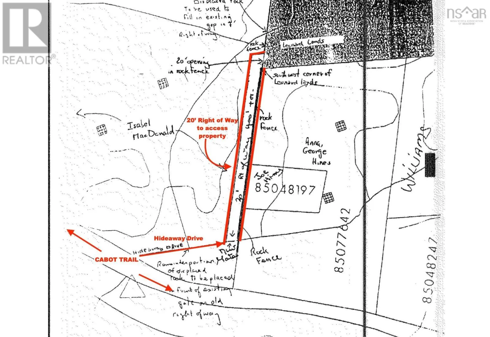 Following Cabot Trail, watch for Hideaway lane on the water-side of the Cabot Trail at civic #39223 Cabot Trail. Take an immediate left to follow a single-lane dirt road and follow it until you see a driveway to your left. Red Arrow sign should be present on the property. Can follow driveway to level area near cliffs top properties. 14+ ACRES of Land with 700ft of WATERFRONT providing UNBEATABLE VIEWS toward Middle Head Peninsula, Ingonish Beach, Freshwater Lake & Ingonish Harbour. This acreage features towering views from the top of the property with ample level area for building on many choice locations The rugged and high coastline is only a short jump off of the Cabot Trail. Accessed through an established laneway. Located in Ingonish Ferry, near the Cabot Breton Highlands National Park, Ski Cape Smokey & famous Ingonish Beach. This property is mostly level nearest the Cabot Trail and slopes gently upward from the laneway, towards a large level area at the top. Overlooking the ocean in one direction and in the other, the land slopes towards the harbour which provides beautiful peaceful viewing opportunity towards the Marina & over the harbour. The property is easy to walk and access for viewings and should be seen to be fully appreciated. You can not beat these views and the driveway has been started to access some of the best locations. Call your agent today for more information and grab your piece of Ingonish acreage. (id:27476)