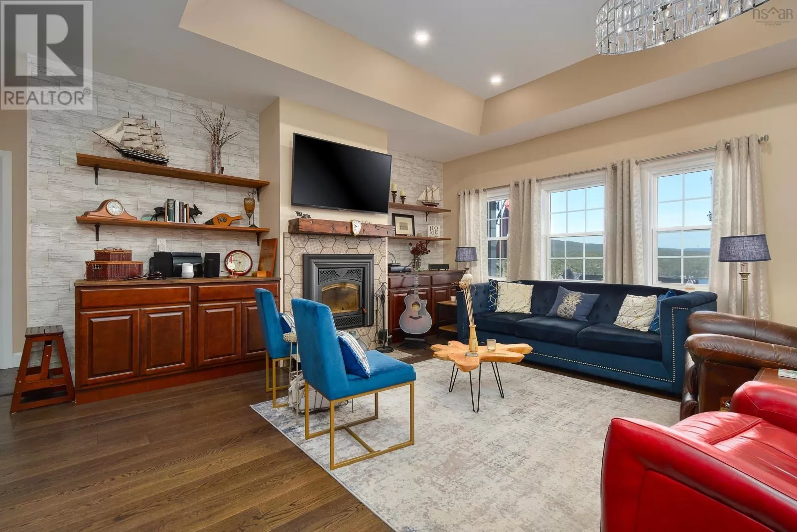 following Cabot Trail, property is near Knotty Pine Cottages. Watch for real estate sign. Executive Style Home overlooking breathtaking views of Ingonish Harbour, towards Middle Head Peninsula. Built in 2018, there were no features overlooked in this beautiful home design. High ceilings, custom cabinets, quartz counter tops & hardwood floors. This home boasts a QUALITY build with high end finishings. Built on one-level with three bedrooms, two full baths plus an open concept main living area. Primary bedroom has TWO walk-in closets (his and hers), 4pc ensuite with soaker tub PLUS a walk-in shower. Separate laundry room is located a short distance off of the primary bedroom. On the opposite side of the living area are two additional bedrooms plus full bath. The double attached garage is heated and separated, allowing one garage to be used as a rec room or converted back to car storage. Outside you will find a 3rd detached garage to be used as your workshop, parking or otherwise. Home is heated with efficient time-of-day in-floor (electric) heat and augmented by a wood burning fireplace for cool winter evenings. Off of the kitchen is a covered patio in addition to the large deck (built to hold a hot tub) which overlooks the harbour! A generlink provides comfort in case of power outage & the convenience of propane to both the kitchen stove and outside BBQ means no worrying about having your propane tanks refilled. Interested in a different layout? Watch the boats sail through the harbour and the waves crash in. All from the comforts of your PRIVATE Property. Perfect for those looking for a family home or retreat in Ingonish. The attractions of Ingonish are endless along with all amenities such as grocery, hospital, school. restaurants. This is an area you will never want to leave! Call your agent today for a viewing and see for yourself. You will not be disappointed. (id:27476)