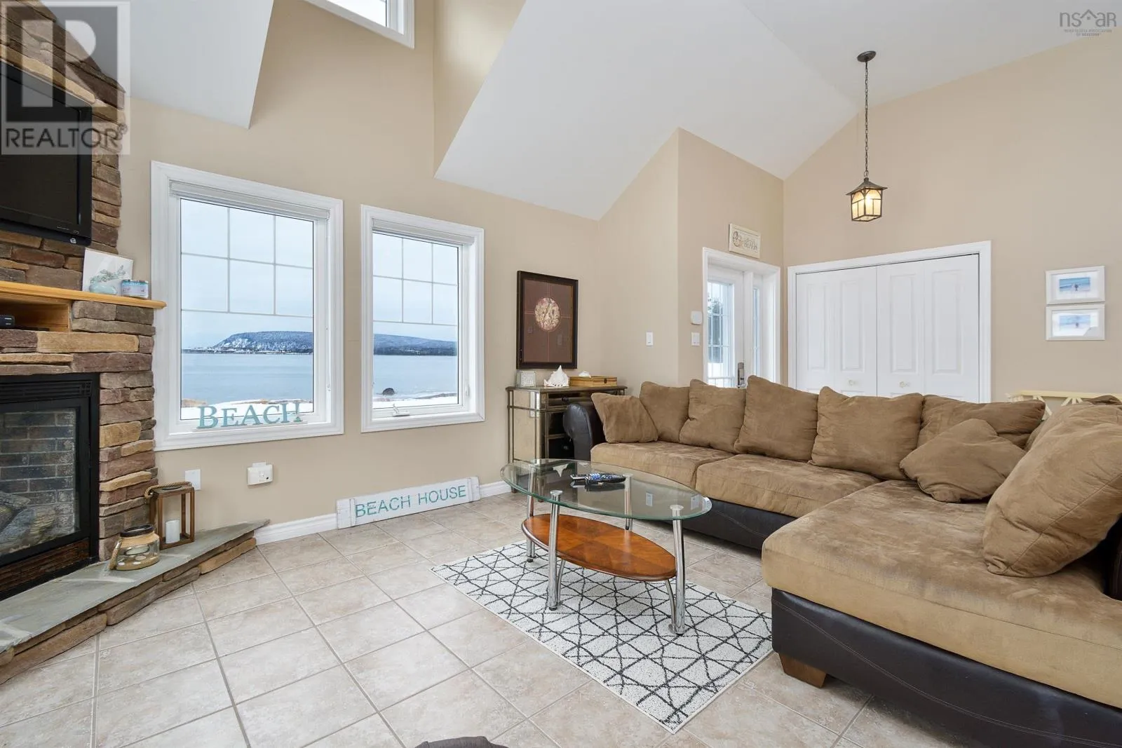 Cabot Trail to Glenghorm Resort Nestled on the shores of North Bay Beach, this contemporary coastal haven seamlessly blends with the beauty of its surroundings. The open concept design captures panoramic views of the Atlantic Ocean and Ingonish Island, creating a serene atmosphere accentuated by a gas fireplace. Crafted with newer energy-efficient construction, this residence ensures sustainability without compromising on luxury. Enjoy the vast deck, perfect for embracing waterfront living. The reinforced coastline guarantees enduring stability, offering tranquility just steps away from the sandy shores. Embrace the vibrant Ingonish community, with quick access to the ski hill, golf course, and the renowned Keltic Lodge. Situated on the Cabot Trail, this property serves as a gateway to coastal elegance, ideal for year-round living or as a seasonal retreat. Experience the convenience of year-round condo-type services, providing peace of mind whether you choose to make it your permanent residence or a seasonal escape. (id:27476)