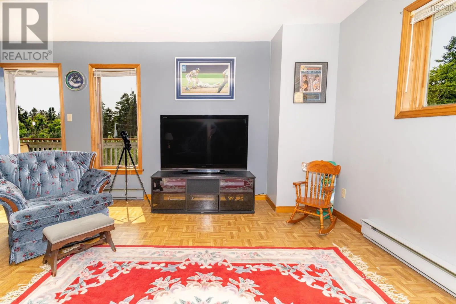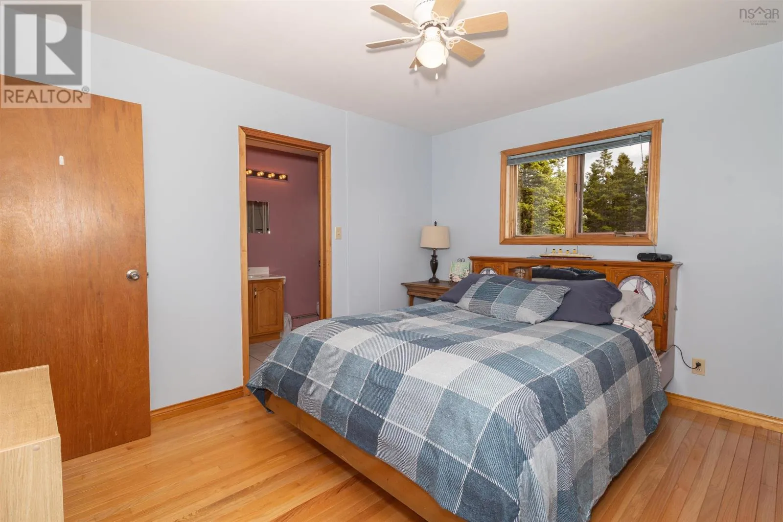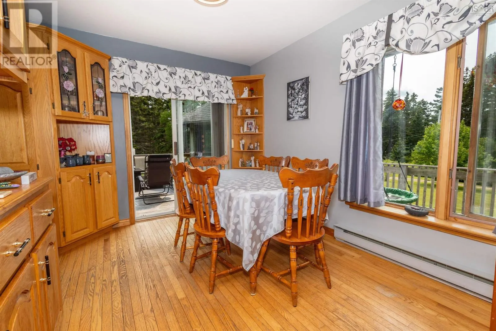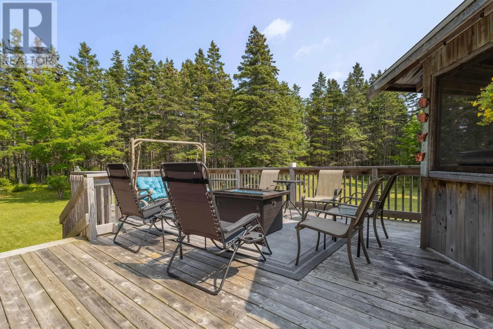 Turn in to the driveway, at signage, across from the Irving in Ingonish Located in beautiful North Ingonish, this lovingly maintained four-bedroom chalet-style home sits on 8 acres of level and treed land, offering a private retreat with ample potential. Just minutes from the beach, the entrance to the Cape Breton Highlands National Park, local restaurants, and other convenience and attractions. With potential for subdivision, cottages, or other ventures, the property offers so much more then just a beautiful home. Tucked off of the Cabot Trail, a treed-in driveway leads you to a private yard with a screened-in gazebo and spacious front deck, creating the ideal outdoor spaces. Inside, the main level welcomes you with hardwood floors and an open-concept layout connecting the living and dining areas, the latter providing access to the main deck through patio doors. A functional galley kitchen features ample cupboard space, and the back entrance is where you find the main-floor laundry. Completing the main level is a bedroom and a full 4-piece bath. Upstairs, a second living room offers a perfect gathering space for family or guests, with access to an upper balcony. The large primary bedroom is also located on this level, along with two additional bedrooms and a 3-piece bath. The basement is dry, spray foam insulated, and walkout, providing excellent storage, workshop potential, or further development options. A 200-amp electrical panel is complemented by a generator panel for added peace of mind. The detached wired garage adds further utility. With a drilled well offering an excellent water supply and a newer roof completed in fall 2024, the home is heated with electric baseboards and a cozy wood stove. This North Ingonish property offers comfort, privacy, and potential in one of Cape Bretons most desirable areas. You will want to see for yourself. Book in with your agent today for a viewing! (id:27476)
