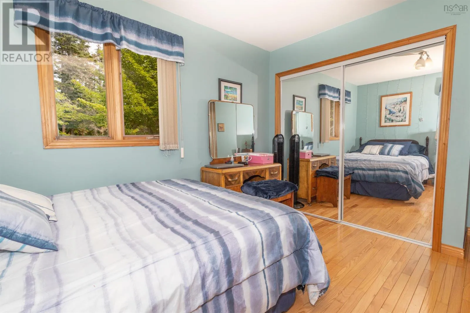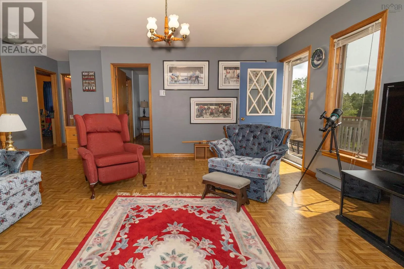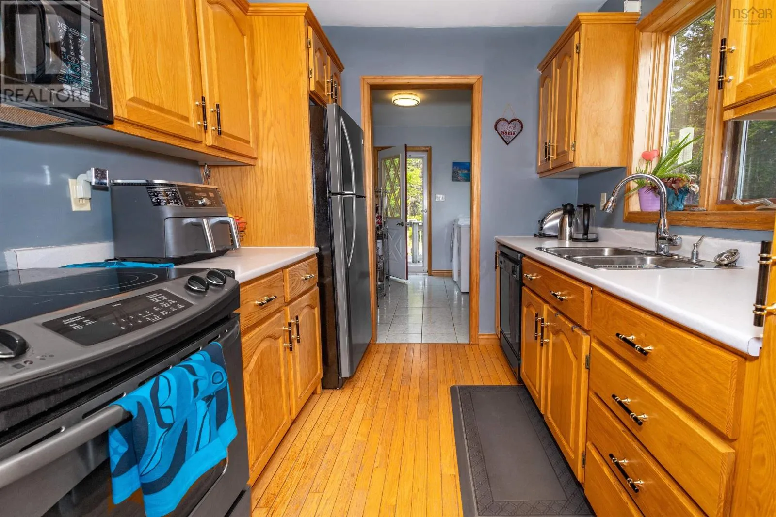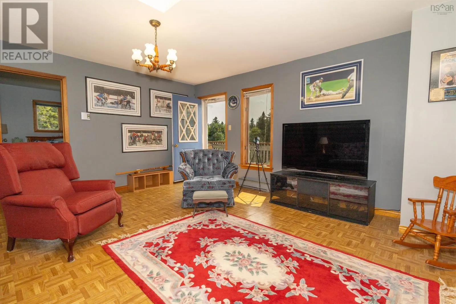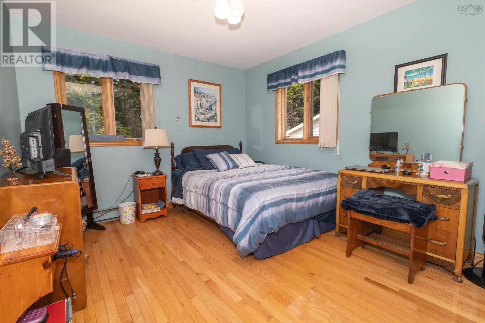 Turn in to the driveway, at signage, across from the Irving in Ingonish Located in beautiful North Ingonish, this lovingly maintained four-bedroom chalet-style home sits on 8 acres of level and treed land, offering a private retreat with ample potential. Just minutes from the beach, the entrance to the Cape Breton Highlands National Park, local restaurants, and other convenience and attractions. With potential for subdivision, cottages, or other ventures, the property offers so much more then just a beautiful home. Tucked off of the Cabot Trail, a treed-in driveway leads you to a private yard with a screened-in gazebo and spacious front deck, creating the ideal outdoor spaces. Inside, the main level welcomes you with hardwood floors and an open-concept layout connecting the living and dining areas, the latter providing access to the main deck through patio doors. A functional galley kitchen features ample cupboard space, and the back entrance is where you find the main-floor laundry. Completing the main level is a bedroom and a full 4-piece bath. Upstairs, a second living room offers a perfect gathering space for family or guests, with access to an upper balcony. The large primary bedroom is also located on this level, along with two additional bedrooms and a 3-piece bath. The basement is dry, spray foam insulated, and walkout, providing excellent storage, workshop potential, or further development options. A 200-amp electrical panel is complemented by a generator panel for added peace of mind. The detached wired garage adds further utility. With a drilled well offering an excellent water supply and a newer roof completed in fall 2024, the home is heated with electric baseboards and a cozy wood stove. This North Ingonish property offers comfort, privacy, and potential in one of Cape Bretons most desirable areas. You will want to see for yourself. Book in with your agent today for a viewing! (id:27476)