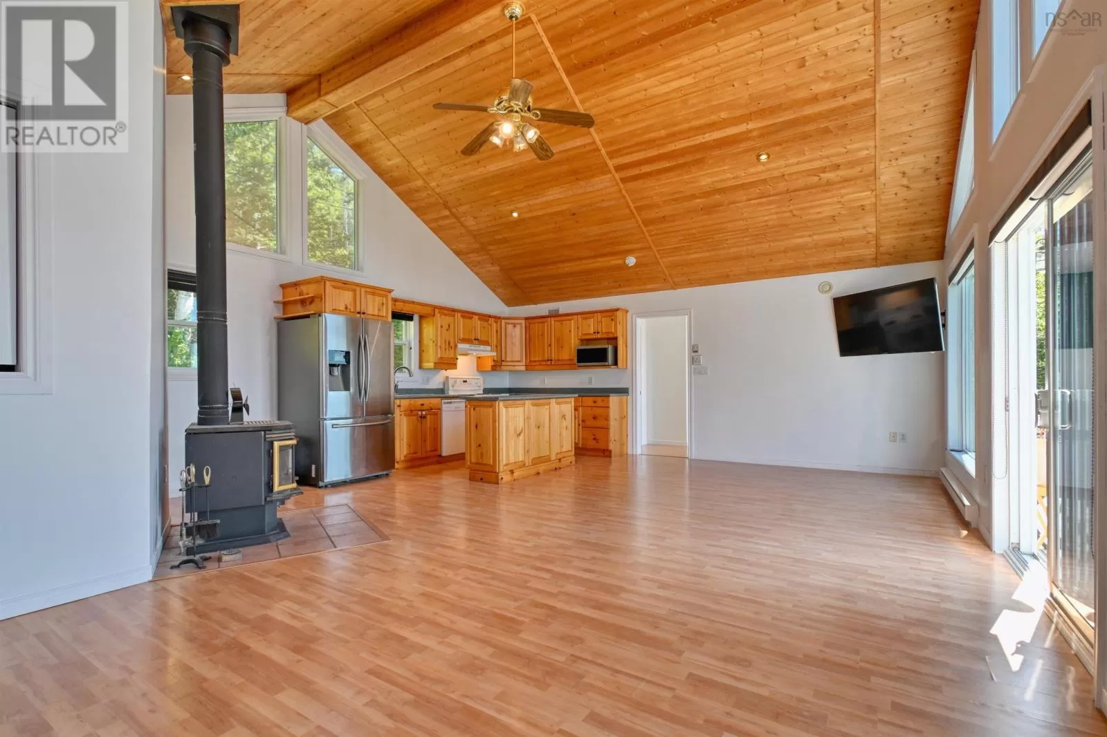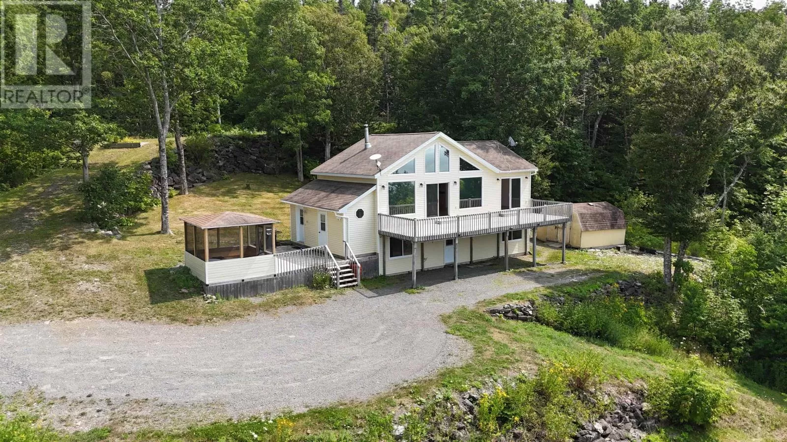 From Sydney, just past the Bras d'Or Look-off in Irish Cove, turn right and watch for Civic Number on the left. Feast your eyes on 95 Lakeshore Drive, an attractive property in Irish Cove, ready to be the backdrop for your most fabulous life. Prepare to be impressed. All bedrooms overlook the breathtaking Bras dOr Lake, delivering stunning water views from every room. The primary bedroom features an ensuite bath and patio doors that open onto the deck, perfect for morning coffees or evening sunsets. Imagine whipping up culinary masterpieces in an open-concept kitchen and living area, crowned by a wood ceiling and anchored by a kitchen islandthe ideal stage for everything from casual breakfasts to dazzling dinner parties. The open-concept living room shines with a warm wood stove and a beamed, vaulted ceiling that soars toward the sky, highlighting the inviting warmth of wood. Step outside onto the deck that expands your living space outdoors, and enjoy the screened gazebo on the second deckan ideal, bug-free spot for relaxing while soaking in the water views. A winding path leads to the lake with a stairway down to the water, offering access for swimming, kayaking, or simply soaking in the scenery. The property also includes a generator, a large shed, an enclosed storage shed for all your gear, and versatile space for outdoor living and entertaining. Best of all, numerous trails nearby invite you to explore on foot, by ATV, or on horsebackperfect for hikers, thrill-seekers, and nature lovers alike. This residence offers an open floor plan that creates a seamless, inviting atmosphere for entertaining and everyday living. With its stunning water views and delightful features, this isnt just a homeits your own personal paradise waiting to be enjoyed. (id:27476)