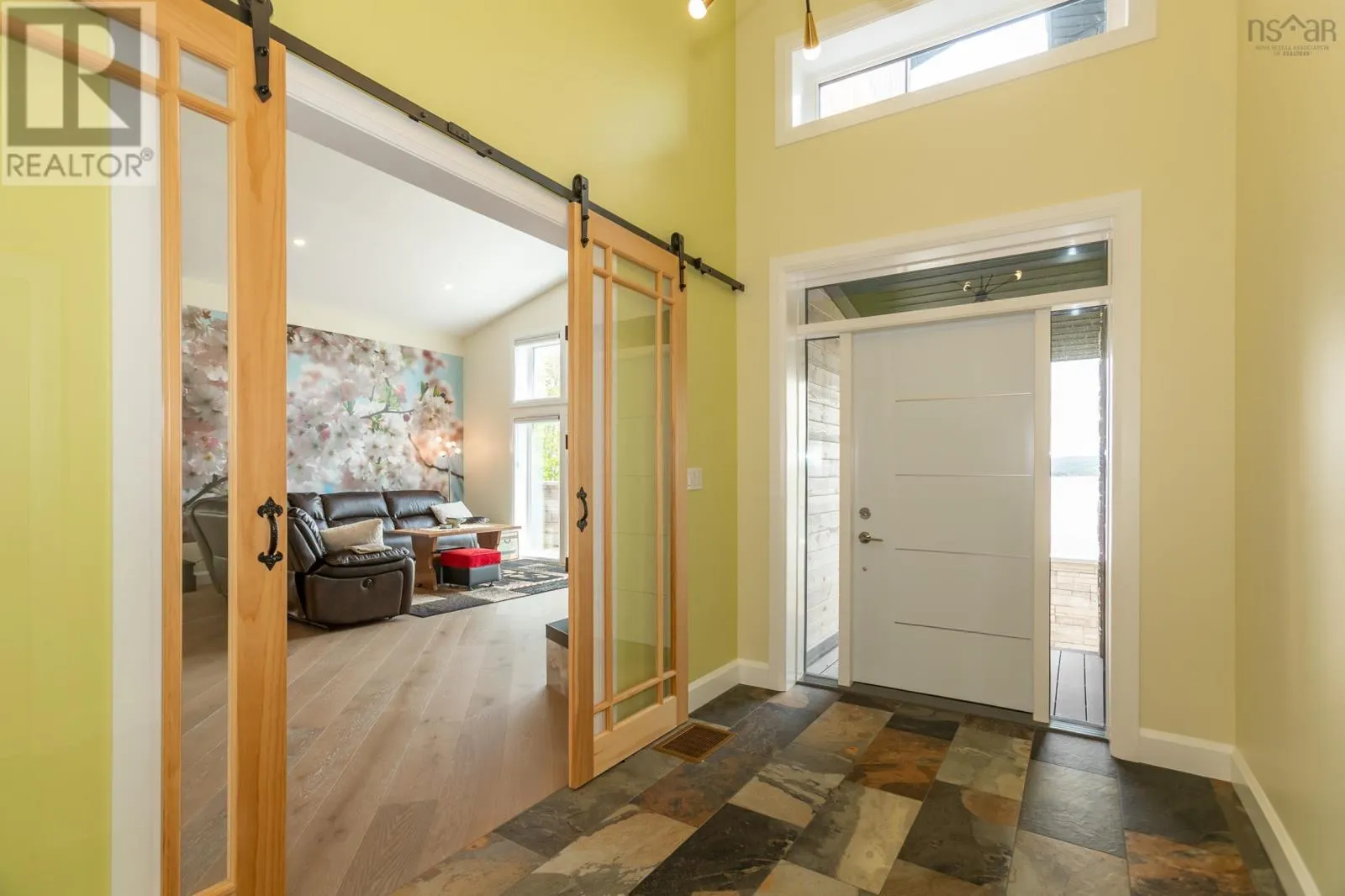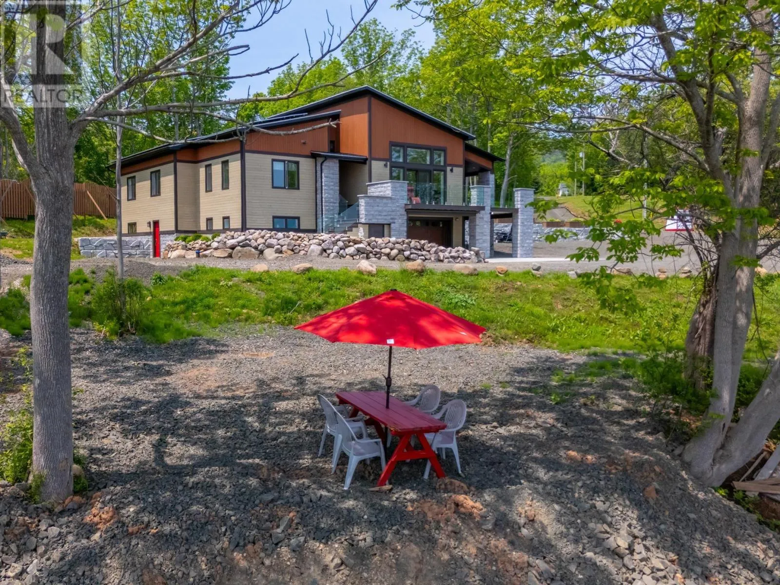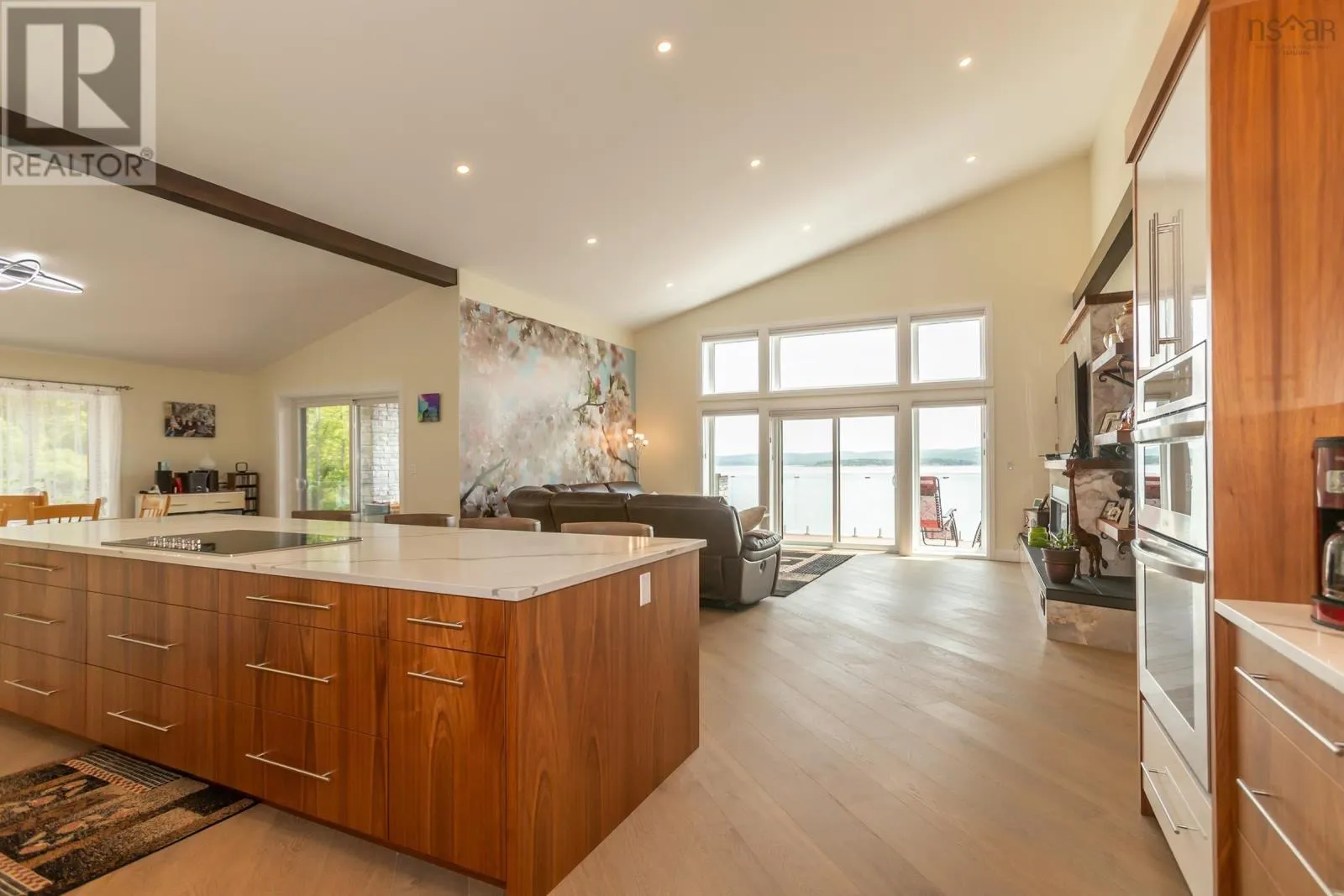 Granville Road to Karsdale, watch for civic and real estate sign Built to endure and designed with care, this oceanfront home pairs high-end materials with long-term thinking, offering peace of mind for decades to come. Set on 2.2 acres with 270 feet of accessible shoreline and a view of Goat Island, the property is just 15 minutes from Annapolis Royal, yet feels a world apart. Constructed in 2022 with ICF to the top of the windows, triple-glazed glass on the ocean side, spray foam insulation in the garage ceiling and 8 inches in the roof, soundproof interior walls, and underground wiring, the homes envelope is as efficient as it is resilient. Cape Cod siding, cultured stone, architectural shingles, composite decking, and concrete retaining walls reflect quality in every detail. Drainage, grading, and hardscaping were professionally designed, because the foundation of a great home is what you dont see. Inside, natural light pours through skylights and oversized windows, highlighting engineered hardwood laid on the diagonal and slate tile in entryways and baths. The main living spaces include the kitchen, dining, and living room, all with ocean views, as well as the primary bedroom. The kitchen features quartz countertops, soft-close custom cabinetry, under-cabinet lighting, and a seamless connection to the open-concept layout. Vaulted ceilings add height and airiness throughout. The primary suite is a private retreat with an air-jet tub, multifunction shower with app-connected audio, and a custom walk-in closet. A second oversized bedroom offers space for lounging or work, while a third bedroom, main-floor laundry, and 1.5 additional baths complete the level. Below, a large rec room with water views leads to double and single garages that are ideal for workshop use or future suite conversion. Twenty-seven solar panels cover nearly all electrical needs and are app-monitored for performance. Heating is high-efficiency wood and electric. A 13,000-watt generator, FibreOp internet, and 200-amp service ensure comfort and reliabil (id:27476)