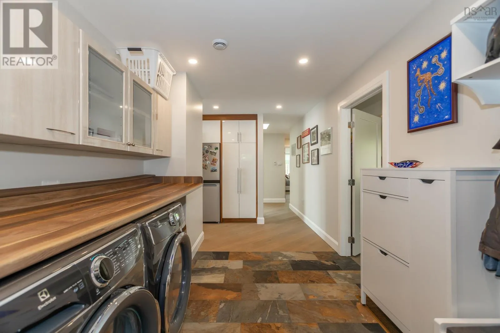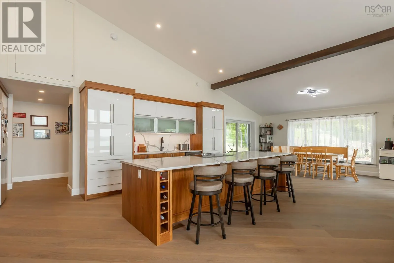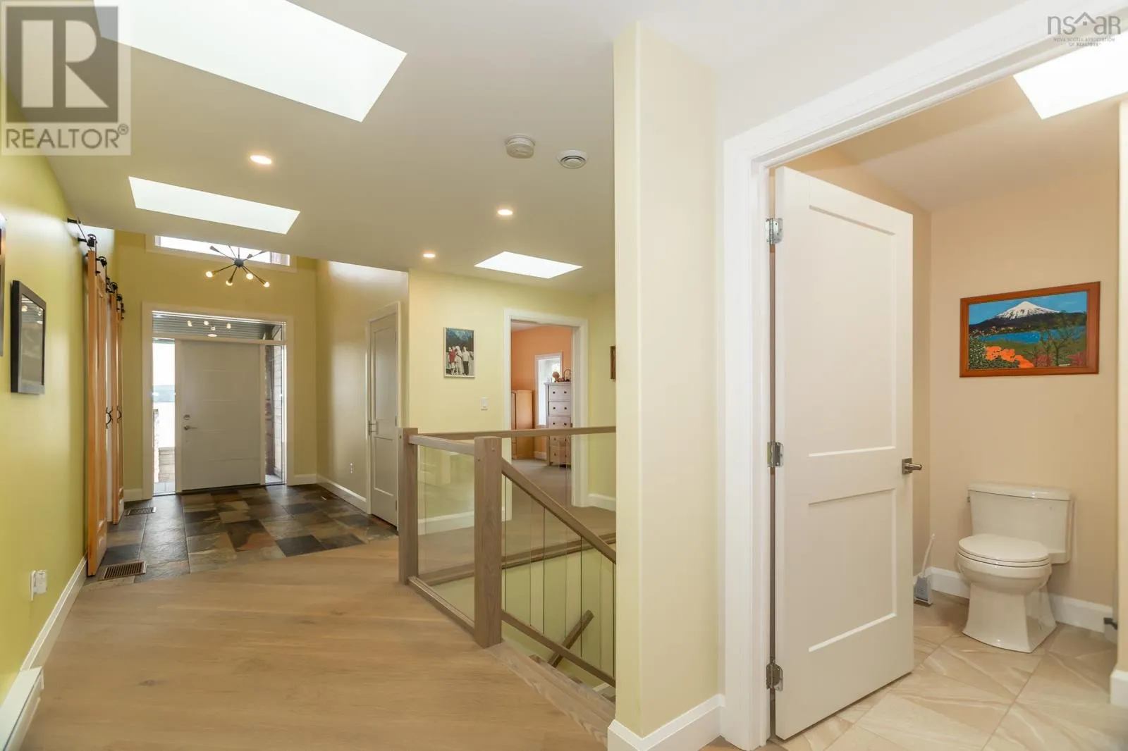 Granville Road to Karsdale, watch for civic and real estate sign Built to endure and designed with care, this oceanfront home pairs high-end materials with long-term thinking, offering peace of mind for decades to come. Set on 2.2 acres with 270 feet of accessible shoreline and a view of Goat Island, the property is just 15 minutes from Annapolis Royal, yet feels a world apart. Constructed in 2022 with ICF to the top of the windows, triple-glazed glass on the ocean side, spray foam insulation in the garage ceiling and 8 inches in the roof, soundproof interior walls, and underground wiring, the homes envelope is as efficient as it is resilient. Cape Cod siding, cultured stone, architectural shingles, composite decking, and concrete retaining walls reflect quality in every detail. Drainage, grading, and hardscaping were professionally designed, because the foundation of a great home is what you dont see. Inside, natural light pours through skylights and oversized windows, highlighting engineered hardwood laid on the diagonal and slate tile in entryways and baths. The main living spaces include the kitchen, dining, and living room, all with ocean views, as well as the primary bedroom. The kitchen features quartz countertops, soft-close custom cabinetry, under-cabinet lighting, and a seamless connection to the open-concept layout. Vaulted ceilings add height and airiness throughout. The primary suite is a private retreat with an air-jet tub, multifunction shower with app-connected audio, and a custom walk-in closet. A second oversized bedroom offers space for lounging or work, while a third bedroom, main-floor laundry, and 1.5 additional baths complete the level. Below, a large rec room with water views leads to double and single garages that are ideal for workshop use or future suite conversion. Twenty-seven solar panels cover nearly all electrical needs and are app-monitored for performance. Heating is high-efficiency wood and electric. A 13,000-watt generator, FibreOp internet, and 200-amp service ensure comfort and reliabil (id:27476)