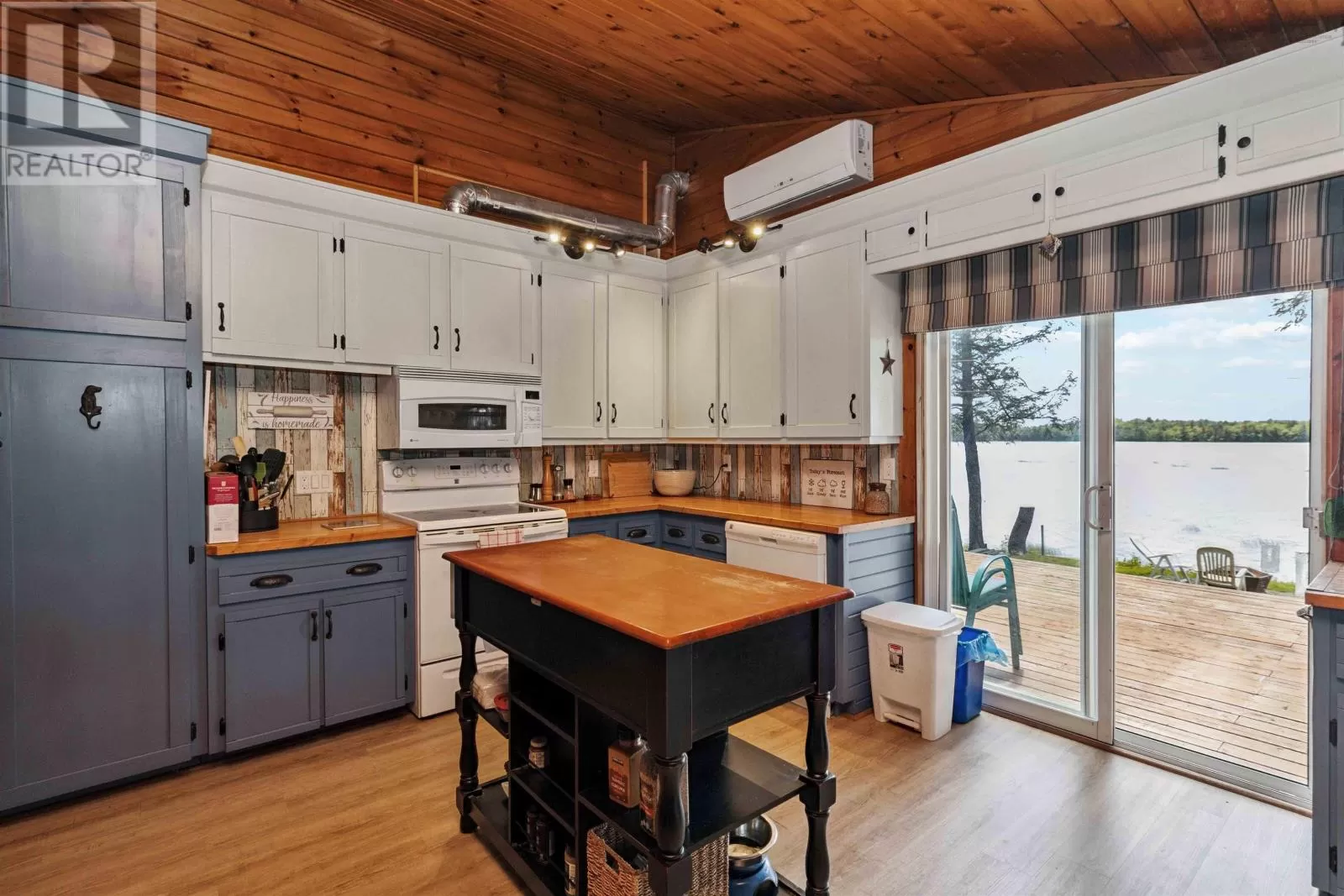 From Annapolis Royal on highway 8, proceed to civic #12439 then up the roadway, turn right at the arrow then proceed along the road to the property. Welcome to 12439 Peskawa Close, Kempt a true lakefront treasure nestled on the serene shores of Minard Lake. This 1+2 bedroom, 2-bath chalet-style retreat is perfectly placed in a private setting where show-stopping sunsets soothe the soul and nature surrounds you in every direction. Just minutes from Kejimkujik National Park and a short drive to Caledonias everyday conveniences, this property is the ultimate escape. Expansive front and rear decks, seamlessly connected with wraparound walkways, create the ideal outdoor living and entertaining space, whether you're soaking up the afternoon sun, hosting friends, or unwinding beside the fire pit with front-row seats to tranquil lake views. Inside, the main floor is thoughtfully arranged to take full advantage of the lake views, featuring a spacious living room with a cozy wood-burning fireplace and direct access to the deck through sliding patio doors. The eat-in kitchen, designed for both ease and enjoyment, also offers deck access making entertaining effortless. The primary bedroom provides its own access to the deck, while a 4-piece bath with soaker tub invites you to relax and unwind. Downstairs, two additional bedrooms, a 3-piece bath, a private sauna, laundry, and generous storage complete the home. Heating options include a wood fireplace, kitchen cookstove, electric baseboards, and efficient heat pumps that also offer cooling, ensuring year-round comfort. A rare opportunity to own your own slice of lakeside paradise, this is a property you simply must experience, prepare to fall in love with the lifestyle that awaits on Minard Lake. (id:27476)