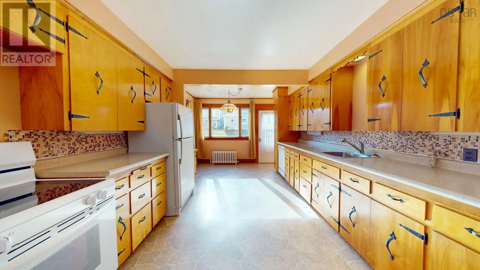 From New Minas travelling to Kentville on the #1 Highway, turn left onto Southview Avenue, then turn right onto Montgomery to sign and civic number on the left. Welcome to 4 Montgomery Street, a charming 1.5 story home located on a spacious corner lot in one of Kentville's original subdivisions. This 5 bedroom, 1.5 bath home exudes character, and with some renovations and updating it could become the home of your dreams. Ideal for the growing family or first time home buyers, this property is centrally located, 5 minutes to downtown Kentville and 5 minutes to downtown New Minas. Features include a large kitchen, wood burning fireplace, updated oil furnace and oil tank (2019), a huge yard with lots of room for flower gardens, a paved driveway and a detached double car garage. This is your chance to bring your modern touches to a classic design in a fantastic neighbourhood of single family homes - so don't hesitate, book your showing today! (id:27476)