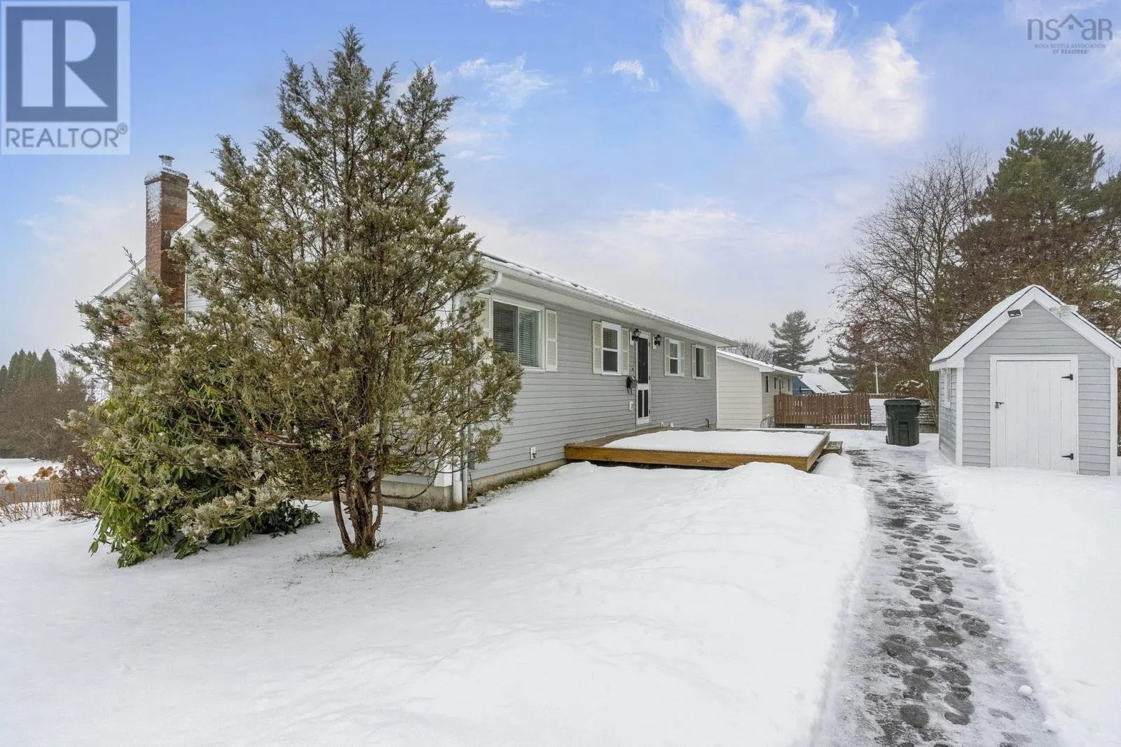 From Belcher Street to Apple Tree Lane, ppty on RHS before turn at bottom This lovely home is well maintained and move-in ready, with lots of possibilities! Main-level living attainable with back entrance at grade. This floor offers convenient laundry closet, an open kitchen (complete with appliances), dining area and bright living room, with an economical heat pump. Down the hall, two bedrooms and the primary, with direct access to the main bath. Downstairs has a generous rec room (gravity-fed oil stove disconnected/oil tank removed but could easily be reconnected or switched to wood or gas), a bathroom, plenty of storage space and another bedroom/den/office with walkout at grade and separate paved drive - ideal for an in-law/guest suite! Recently painted throughout, new flooring, most windows replaced, chimney repointed (2025), heat pump (2 yrs), siding (8 yrs), custom blinds, Hot Water Heater (2 yrs-wrapped) and more. Lovely, mature landscaping, easily maintained with inground irrigation. Great location, just minutes from Valley Regional Hospital, NSCC, schools, parks, and local amenities, this property should be on your list! (id:27476)