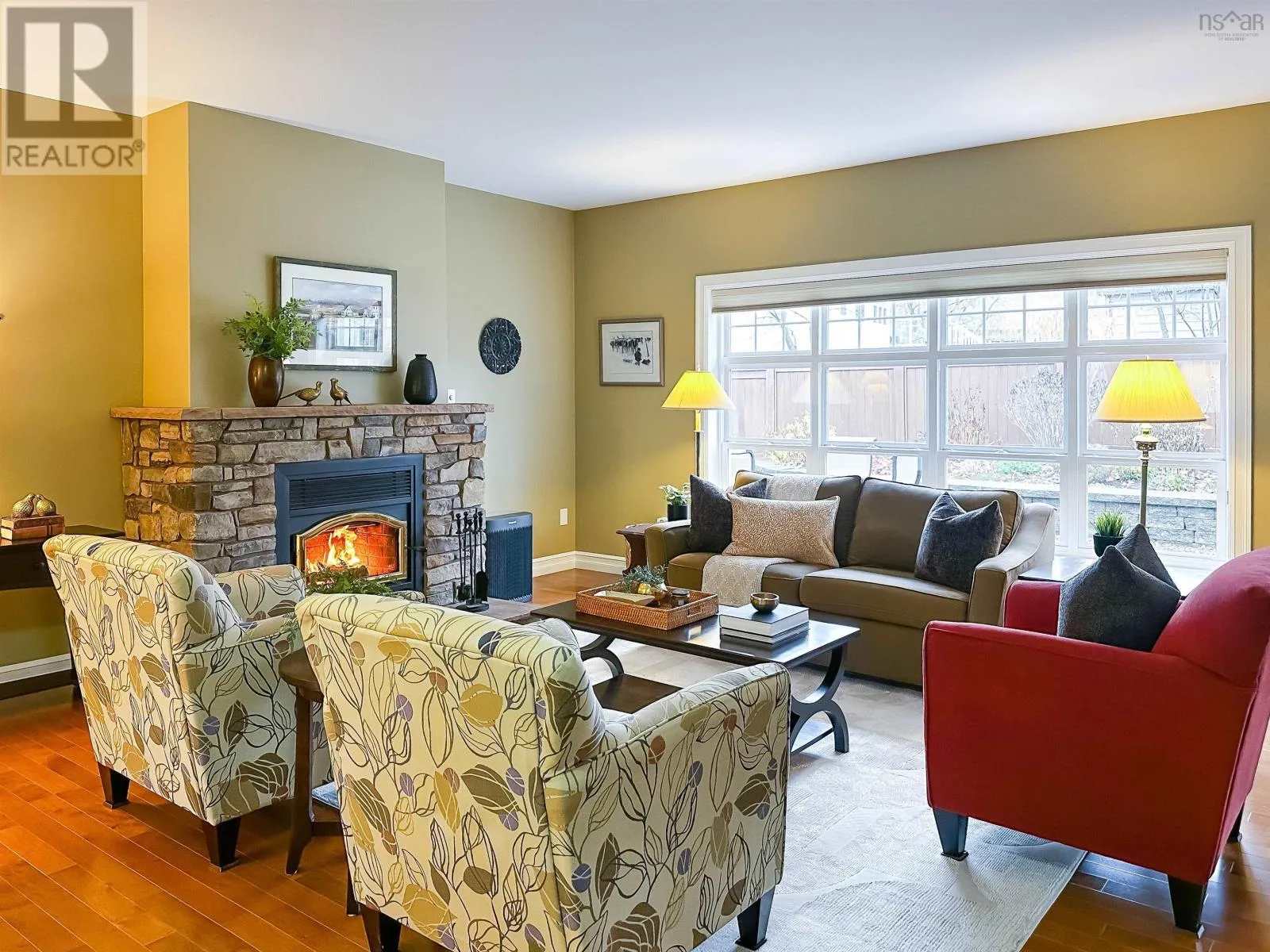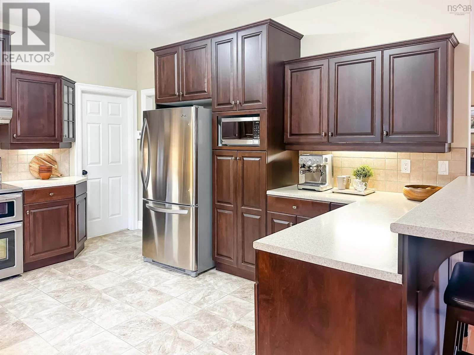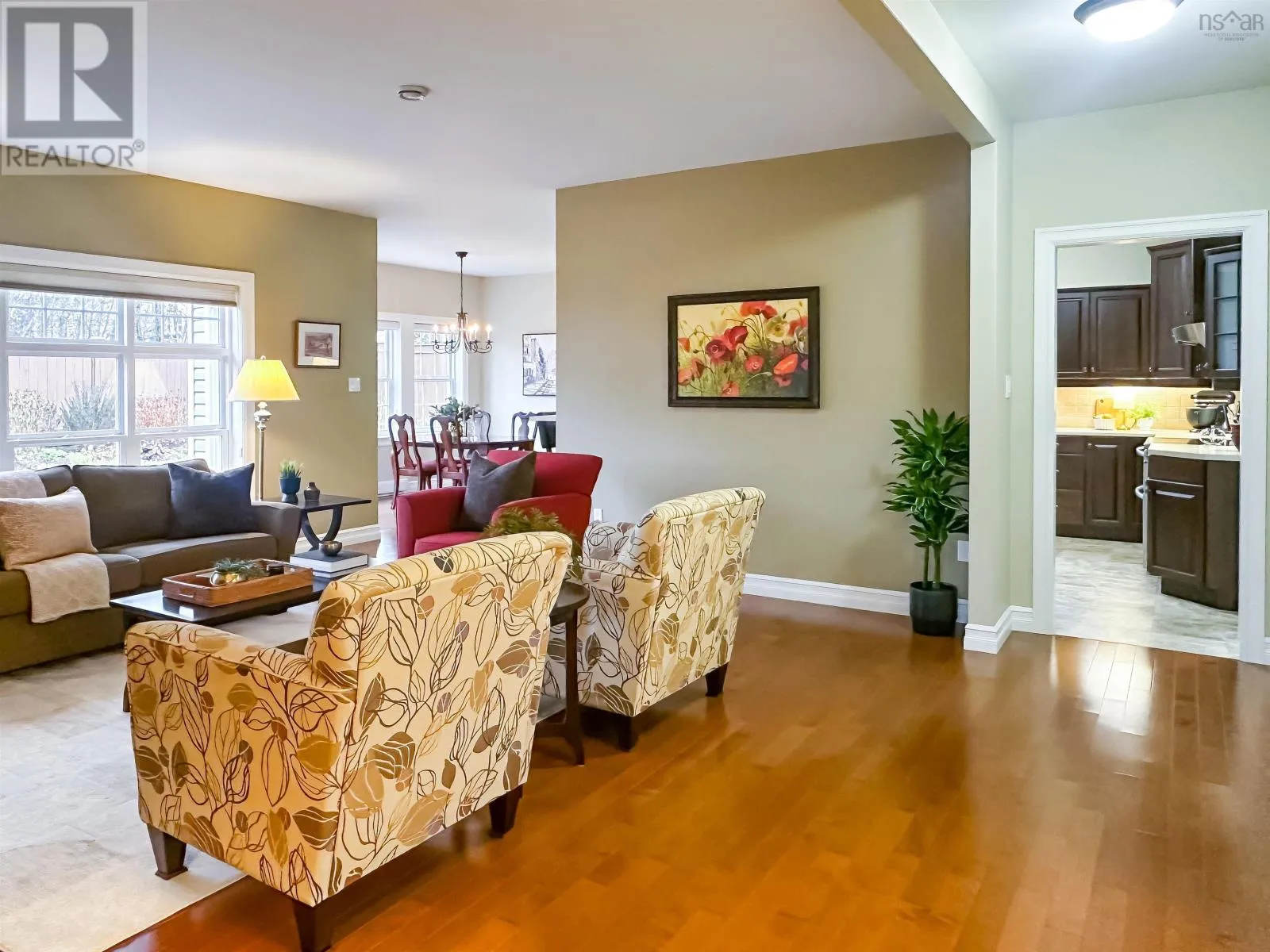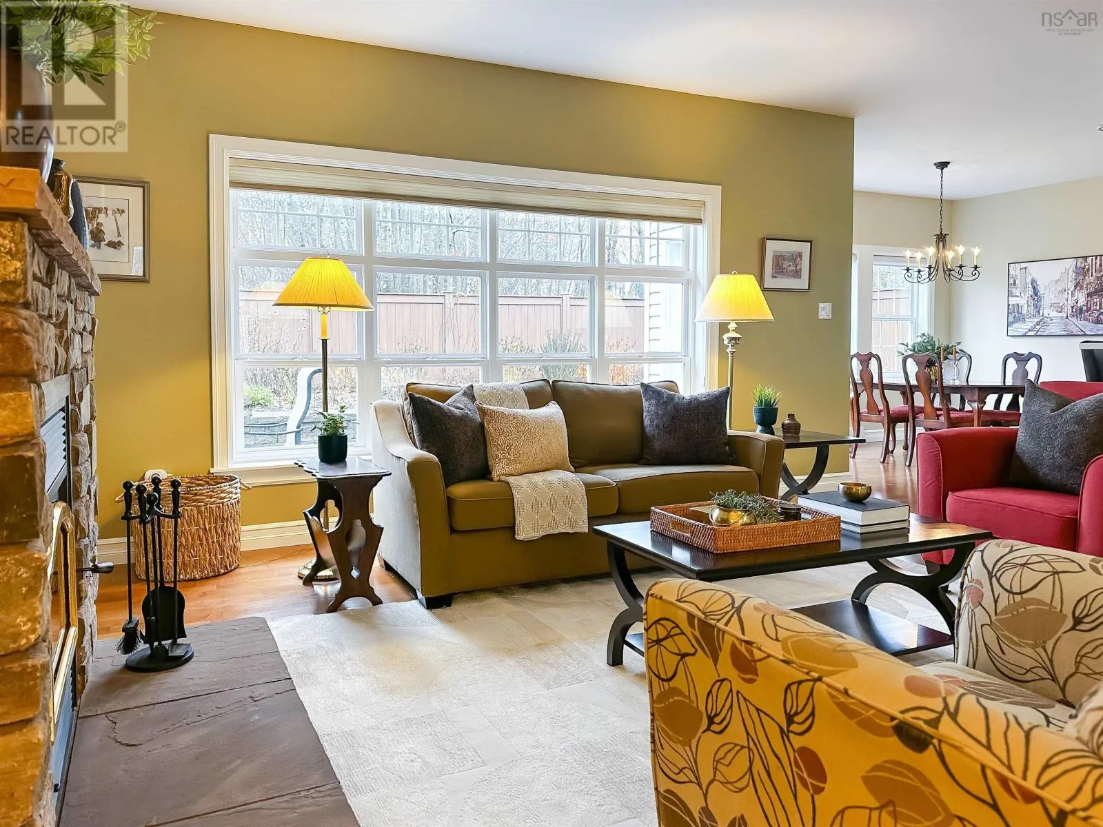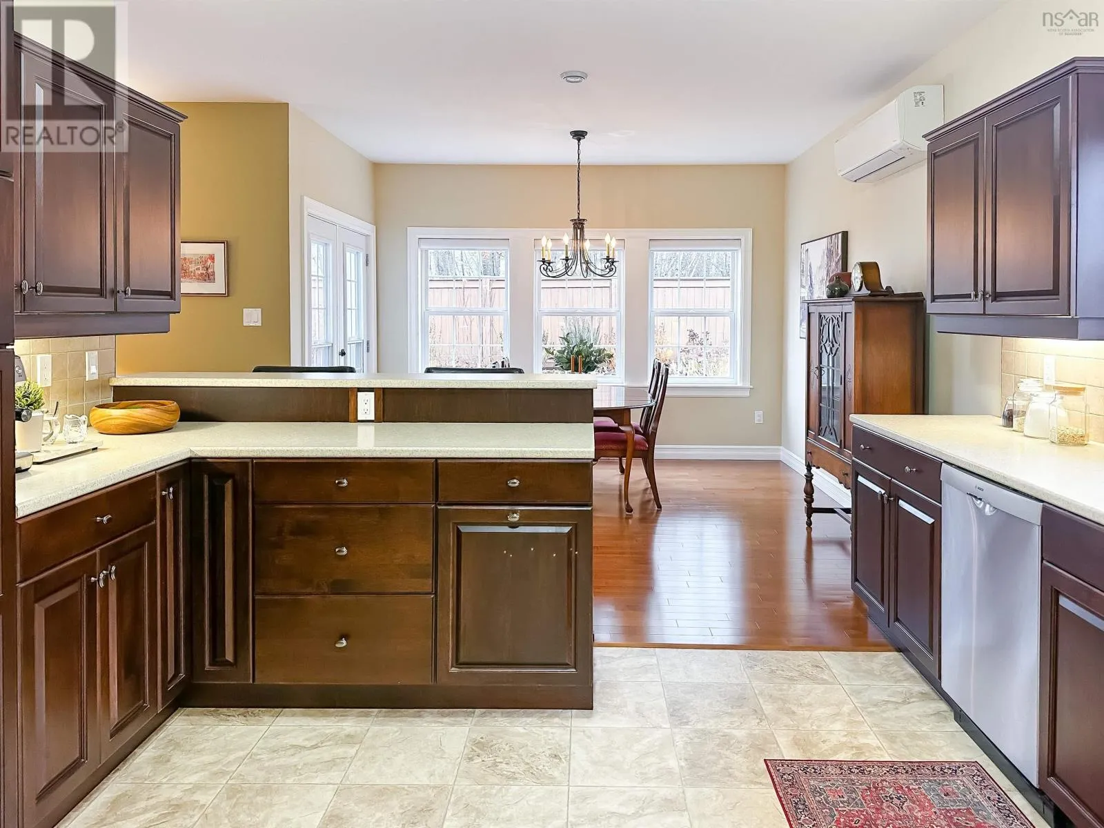 Heading west on Park Street, Kentville turn left on Acadia Dr, left on Dalhousie Avenue, Right onto MacDonald Park Rd, look for civic sign on LHS Beautifully maintained bungalow showcasing true pride of ownership, ideally located in one of Kentvilles most sought-after subdivisions. Enjoy the convenience of walking distance to schools, recreation facilities, trails, and amenities. This bright and inviting home features 9-foot ceilings, a welcoming foyer, and a spacious living room anchored by a cozy, high-efficiency wood fireplace. The functional layout flows seamlessly to a formal dining area with access to a private, fully fenced backyard and a chef-inspired kitchen offering ample cabinetry and an eat-up bar. The main level includes three bedrooms, two serviced by a 3-piece bath, plus a luxurious primary suite complete with walk-in closet and private 5-piece ensuite featuring dual vanity and a relaxing soaker tub. Energy-efficient ductless heat pumps provide year-round comfort, while large windows fill the home with beautiful natural light. A well-designed mudroom and laundry area are conveniently located adjacent to the attached, heated, and wired double garage, complemented by a double paved driveway for ample parking and everyday convenience. A separate walk-in pantry located just off the mudroom provides exceptional storage and functionality. The home is thoughtfully built on a slab with an insulated subfloor, offering enhanced comfort, efficiency, and low-maintenance living. Above the garage, a versatile bonus room provides flexible space for a home office, gym or family room. Outdoors, enjoy beautifully landscaped perennial gardens and both front (covered) and rear decks. At the rear of the property, the southeast exposure provides morning sun and afternoon shade in the summer, and warmth and natural light during the winter months. An exceptional opportunity for executive downsizers or those seeking refined living in a prime location! (id:27476)