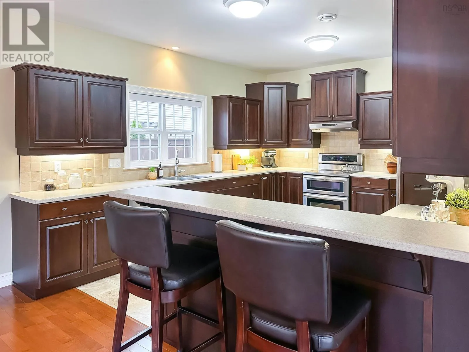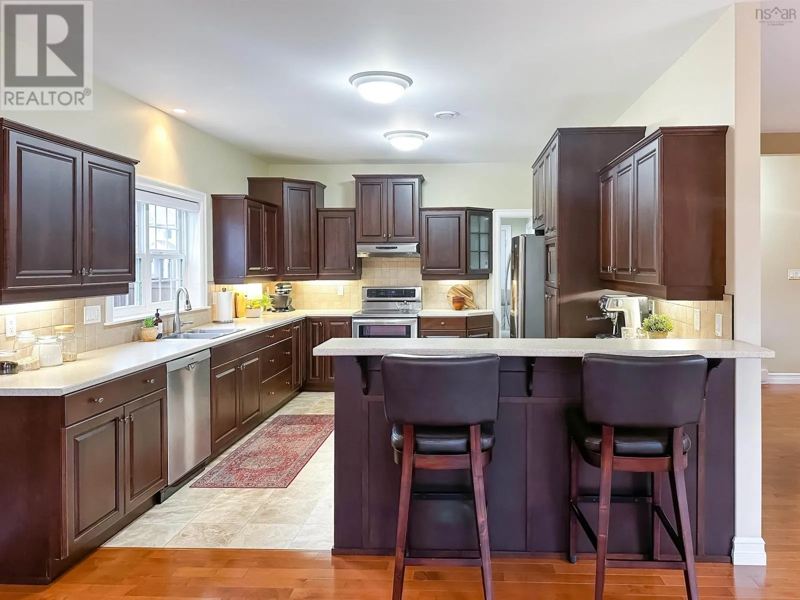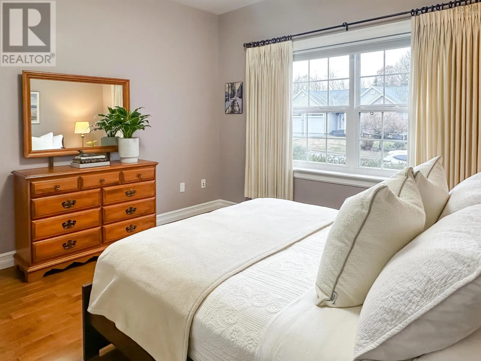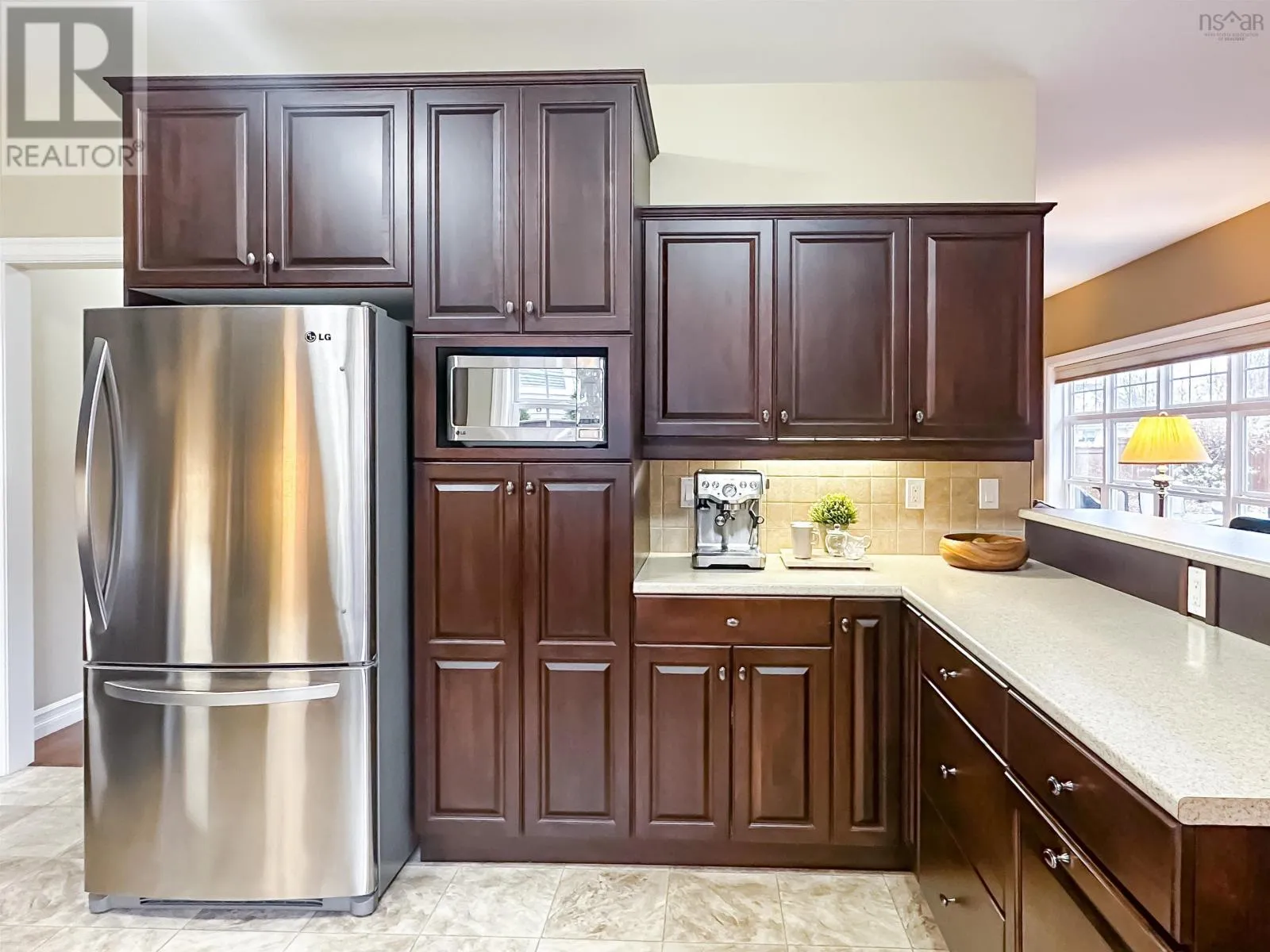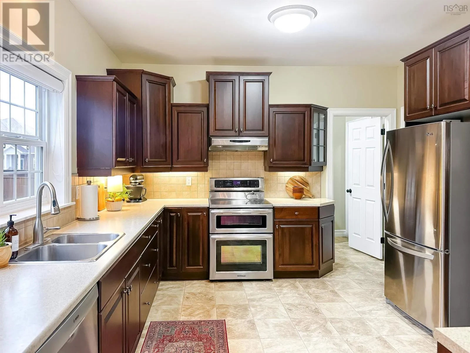 Heading west on Park Street, Kentville turn left on Acadia Dr, left on Dalhousie Avenue, Right onto MacDonald Park Rd, look for civic sign on LHS Beautifully maintained bungalow showcasing true pride of ownership, ideally located in one of Kentvilles most sought-after subdivisions. Enjoy the convenience of walking distance to schools, recreation facilities, trails, and amenities. This bright and inviting home features 9-foot ceilings, a welcoming foyer, and a spacious living room anchored by a cozy, high-efficiency wood fireplace. The functional layout flows seamlessly to a formal dining area with access to a private, fully fenced backyard and a chef-inspired kitchen offering ample cabinetry and an eat-up bar. The main level includes three bedrooms, two serviced by a 3-piece bath, plus a luxurious primary suite complete with walk-in closet and private 5-piece ensuite featuring dual vanity and a relaxing soaker tub. Energy-efficient ductless heat pumps provide year-round comfort, while large windows fill the home with beautiful natural light. A well-designed mudroom and laundry area are conveniently located adjacent to the attached, heated, and wired double garage, complemented by a double paved driveway for ample parking and everyday convenience. A separate walk-in pantry located just off the mudroom provides exceptional storage and functionality. The home is thoughtfully built on a slab with an insulated subfloor, offering enhanced comfort, efficiency, and low-maintenance living. Above the garage, a versatile bonus room provides flexible space for a home office, gym or family room. Outdoors, enjoy beautifully landscaped perennial gardens and both front (covered) and rear decks. At the rear of the property, the southeast exposure provides morning sun and afternoon shade in the summer, and warmth and natural light during the winter months. An exceptional opportunity for executive downsizers or those seeking refined living in a prime location! (id:27476)