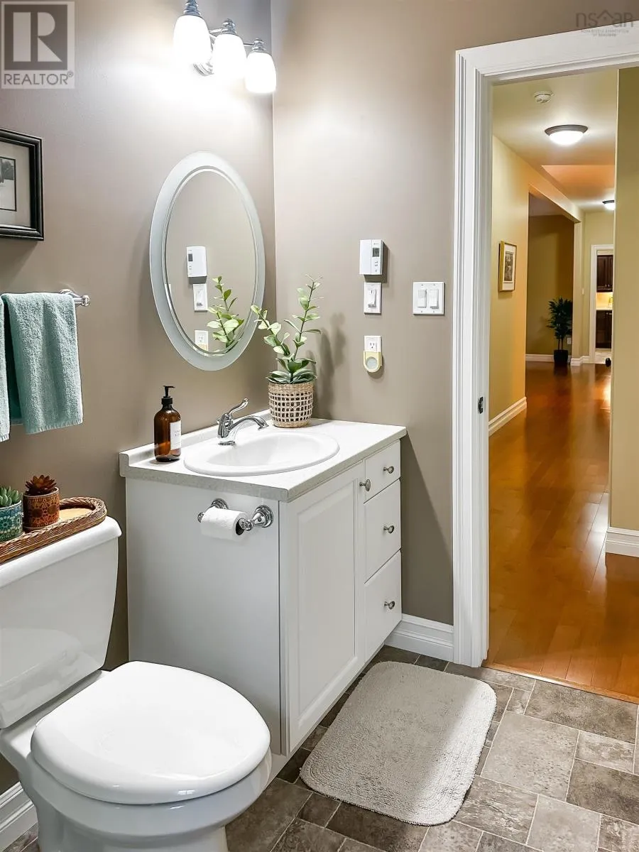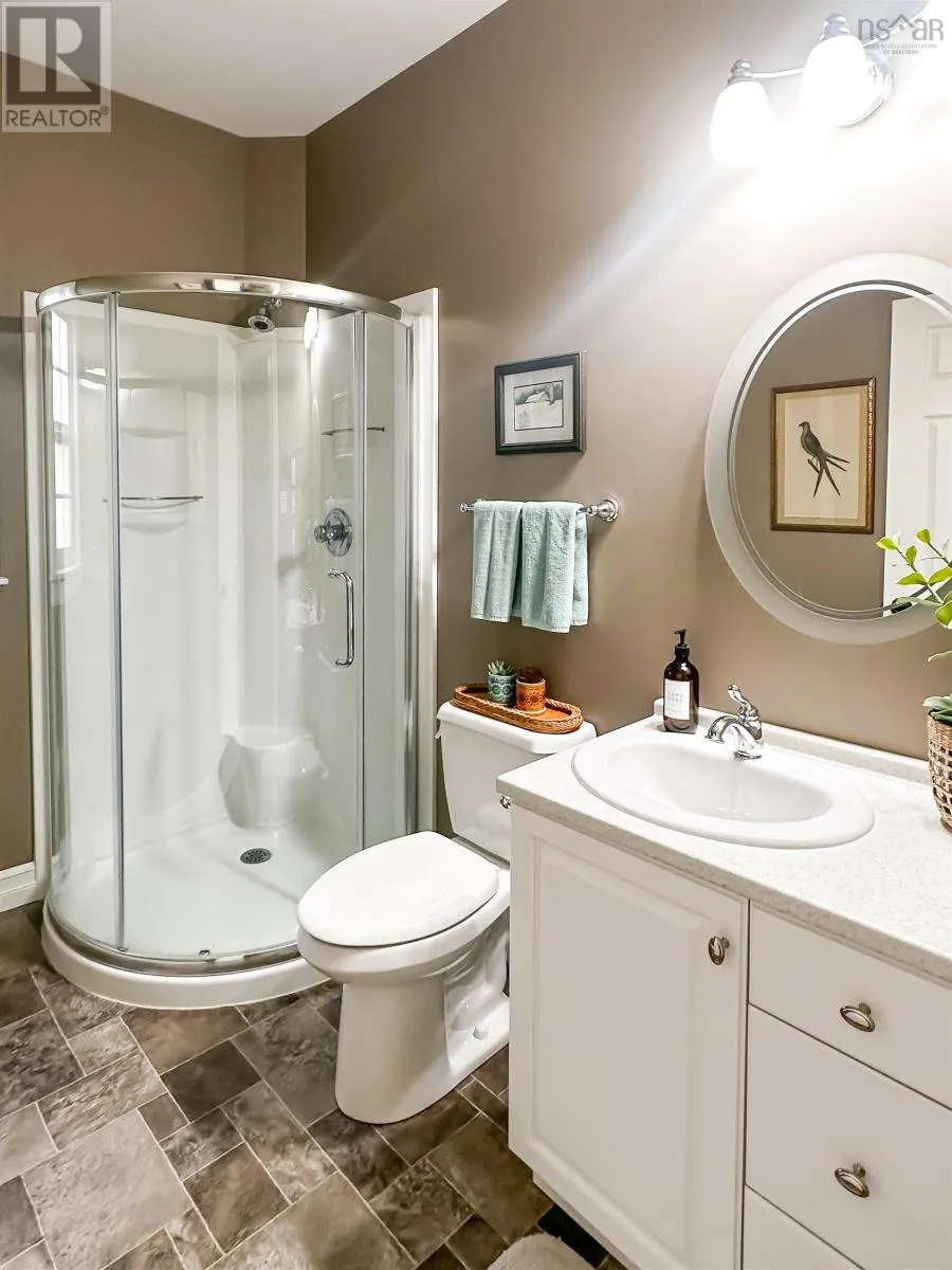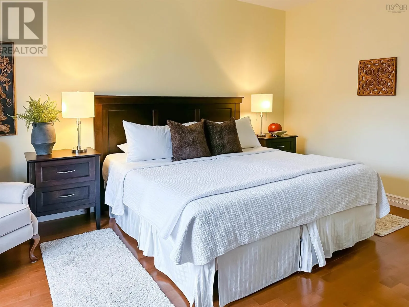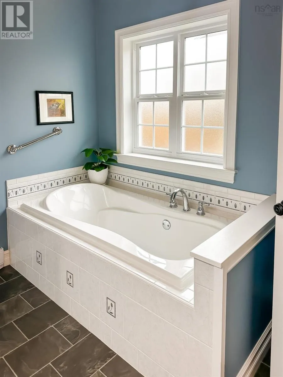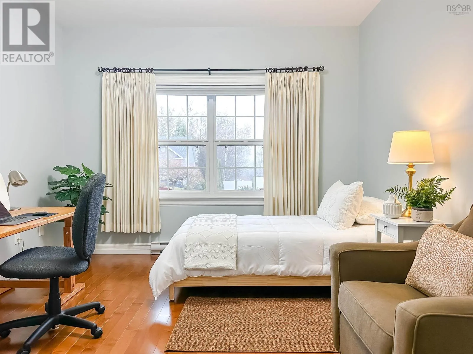 Heading west on Park Street, Kentville turn left on Acadia Dr, left on Dalhousie Avenue, Right onto MacDonald Park Rd, look for civic sign on LHS Beautifully maintained bungalow showcasing true pride of ownership, ideally located in one of Kentvilles most sought-after subdivisions. Enjoy the convenience of walking distance to schools, recreation facilities, trails, and amenities. This bright and inviting home features 9-foot ceilings, a welcoming foyer, and a spacious living room anchored by a cozy, high-efficiency wood fireplace. The functional layout flows seamlessly to a formal dining area with access to a private, fully fenced backyard and a chef-inspired kitchen offering ample cabinetry and an eat-up bar. The main level includes three bedrooms, two serviced by a 3-piece bath, plus a luxurious primary suite complete with walk-in closet and private 5-piece ensuite featuring dual vanity and a relaxing soaker tub. Energy-efficient ductless heat pumps provide year-round comfort, while large windows fill the home with beautiful natural light. A well-designed mudroom and laundry area are conveniently located adjacent to the attached, heated, and wired double garage, complemented by a double paved driveway for ample parking and everyday convenience. A separate walk-in pantry located just off the mudroom provides exceptional storage and functionality. The home is thoughtfully built on a slab with an insulated subfloor, offering enhanced comfort, efficiency, and low-maintenance living. Above the garage, a versatile bonus room provides flexible space for a home office, gym or family room. Outdoors, enjoy beautifully landscaped perennial gardens and both front (covered) and rear decks. At the rear of the property, the southeast exposure provides morning sun and afternoon shade in the summer, and warmth and natural light during the winter months. An exceptional opportunity for executive downsizers or those seeking refined living in a prime location! (id:27476)