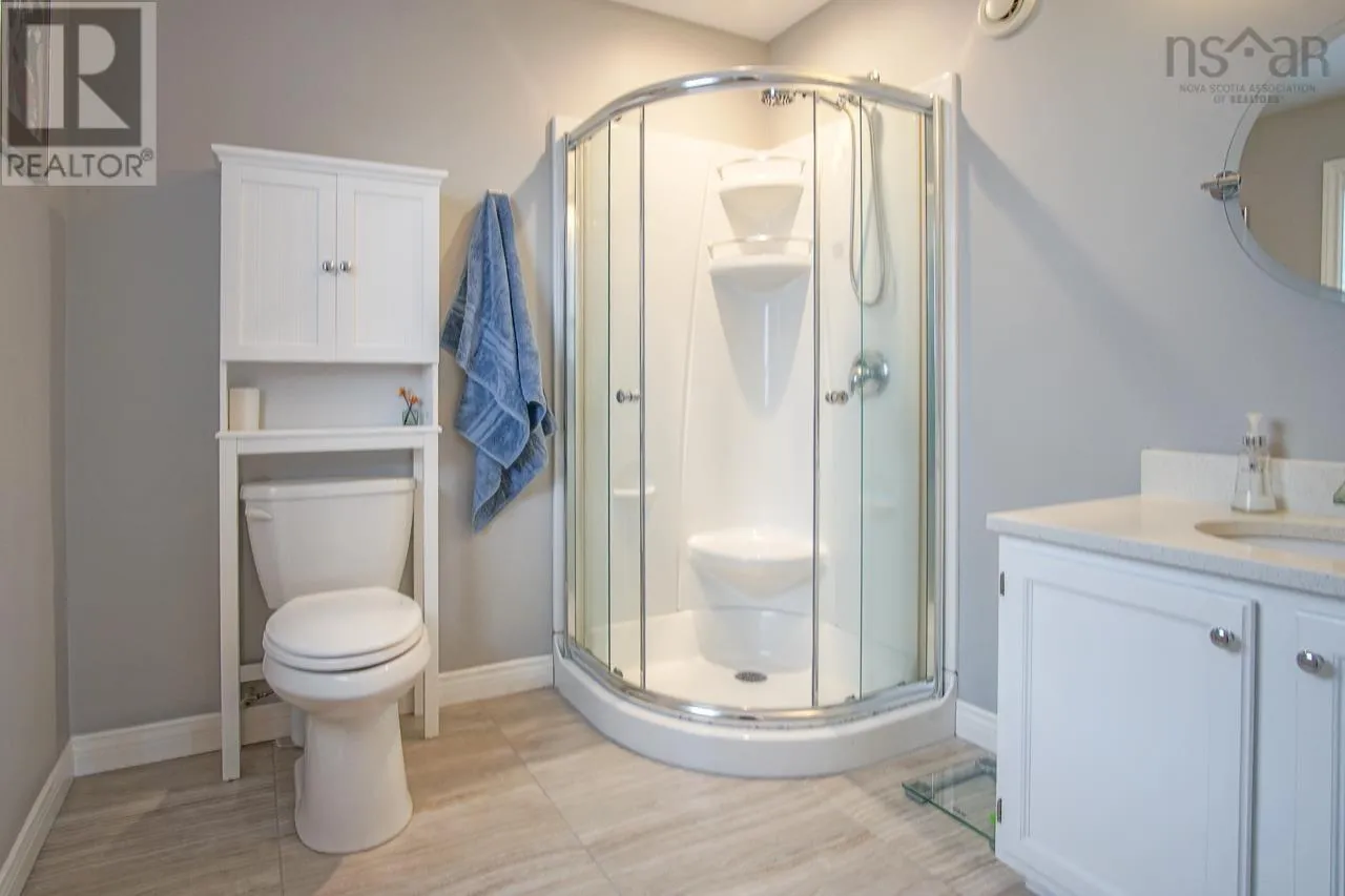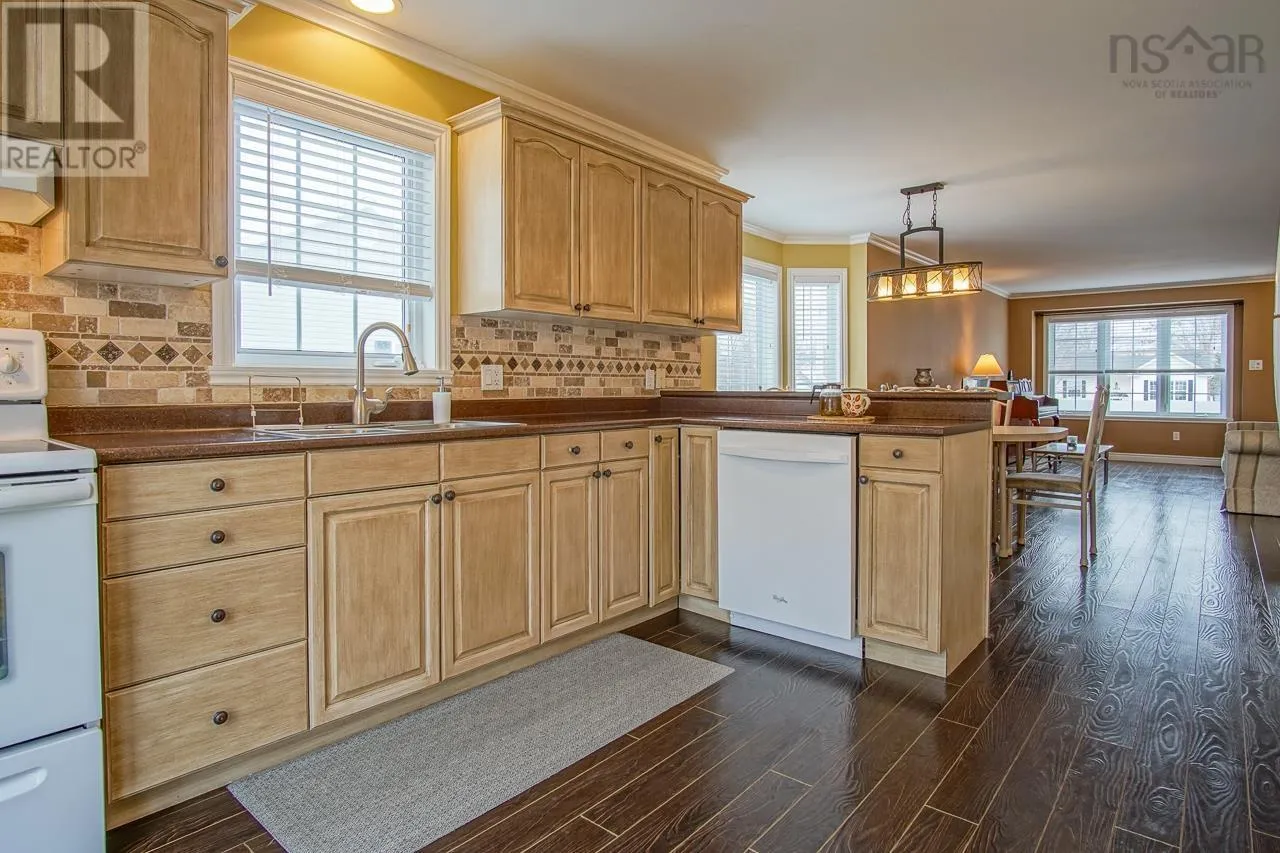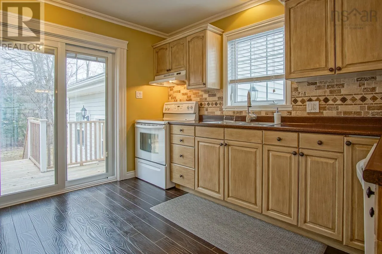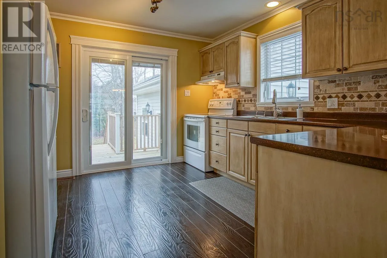 From Hwy#1, South on English Mtn Rd, right on Langille Dr, property is on the left side. A beautifully maintained 3-bedroom bungalow 2 bath home located in the desirable Hayes Subdivision in Coldbrook, close to the Coldbrook District School. The main level offers a bright open-concept layout featuring the kitchen, dining, and living areas, ideal for both everyday living and entertaining. The spacious primary bedroom includes a walk-in closet, ensuite bath, cathedral ceiling, and the added comfort of heated floors. Two additional bedrooms, a full bath, and convenient main floor laundry complete this level. Patio doors off the kitchen lead to a private sun deck, perfect for relaxing or hosting guests. The lower level features a large finished rec room along with ample storage space. Set on a nicely landscaped lot, the property also includes a garage and a paved double driveway. All appliances are included, making this a truly move-in ready home. (id:27476)