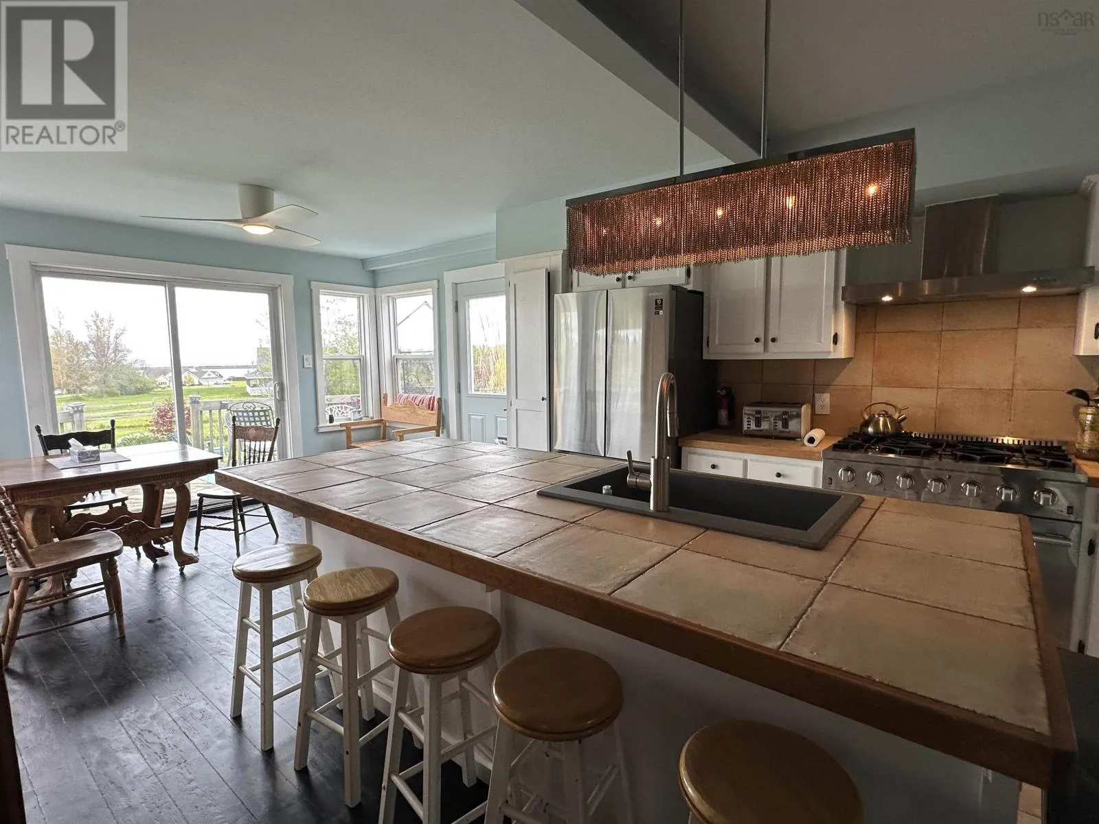 Little Harbour to Kings Head to Sea Oats Drive. See sign. Welcome to your dream residence located in the picturesque area of Kings Head! This charming farmhouse boasts inspiring ocean views with deeded access where you can moor your boat, pick oysters, and walk the sandy beach as far as the eye can see! This exceptional property exudes uniqueness in every corner and when updated it was stripped to the studs! There are three expansive bedrooms and two full bathrooms, including a main level ensuite featuring a custom tile walk-in shower. Indulge in relaxation in the sophisticated soaker tub, ideal for unwinding after a long day. The main level showcases a kitchen with abundant storage space, ensuring you have all the room you need for your culinary pursuits. The spacious living room, complete with a Napoleon insert fireplace, adds a warm and inviting ambiance for cozy gatherings. Surrounded by mature trees and enchanting gardens, this property offers a serene and scenic atmosphere. The partially fenced yard is perfect for children and pets to play safely. Additionally, a separate studio with a loft that once served as an artist's studio, offers a creative sanctuary for individuals to bring their artistic talents to life or it could be turned into a guest house. This home blends traditional charm with contemporary design, delivering comfort in every detail. Experience the unparalleled charm, a truly one-of-a-kind gem that must be seen to be fully appreciated. (id:27476)