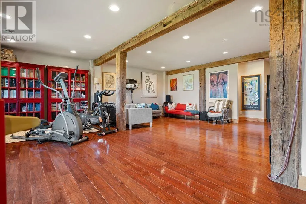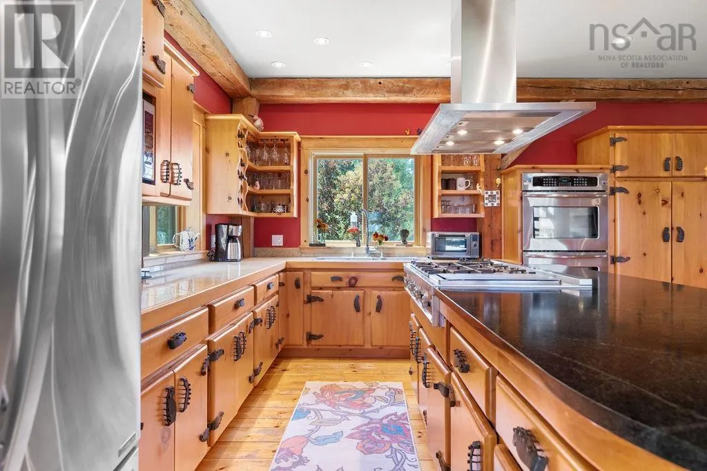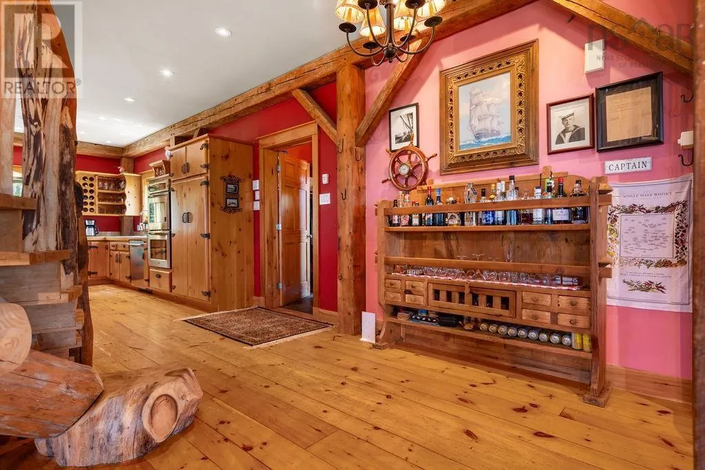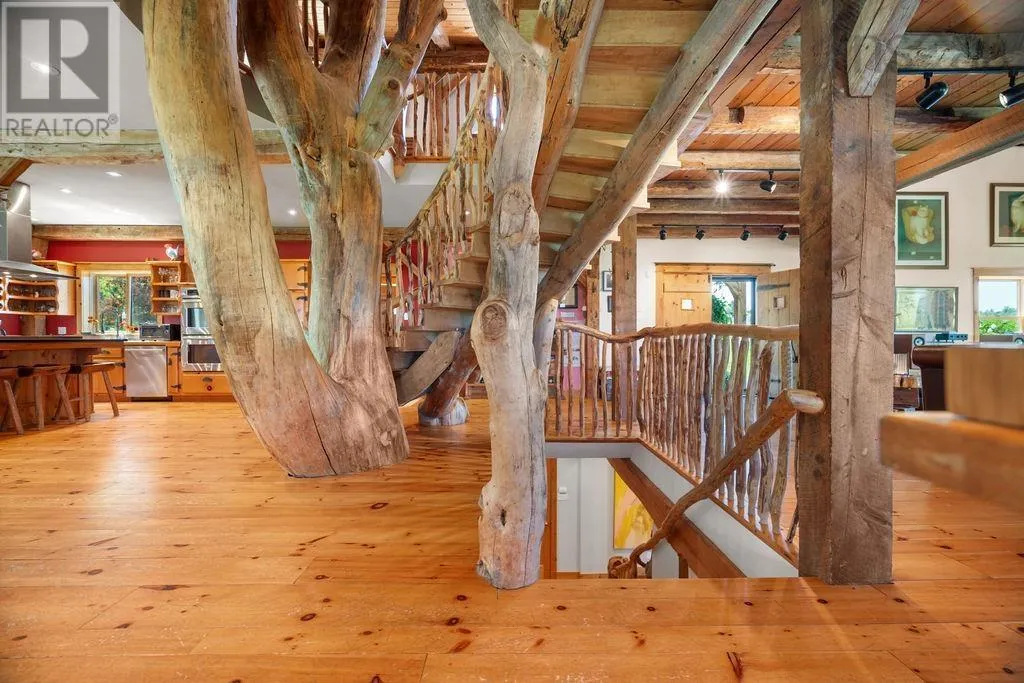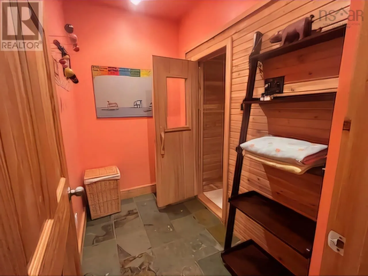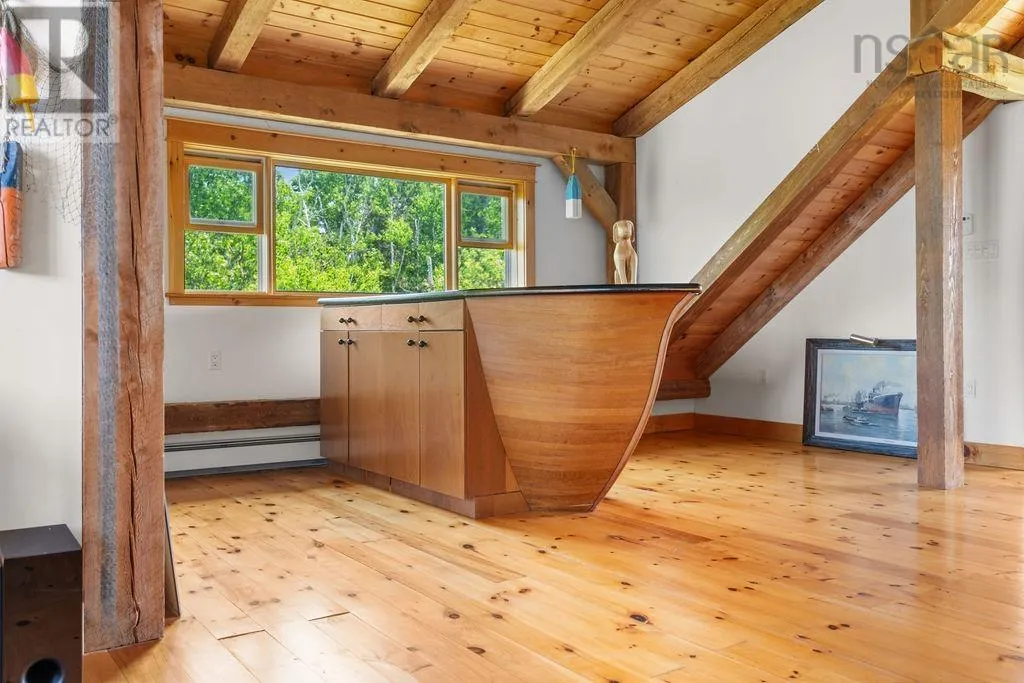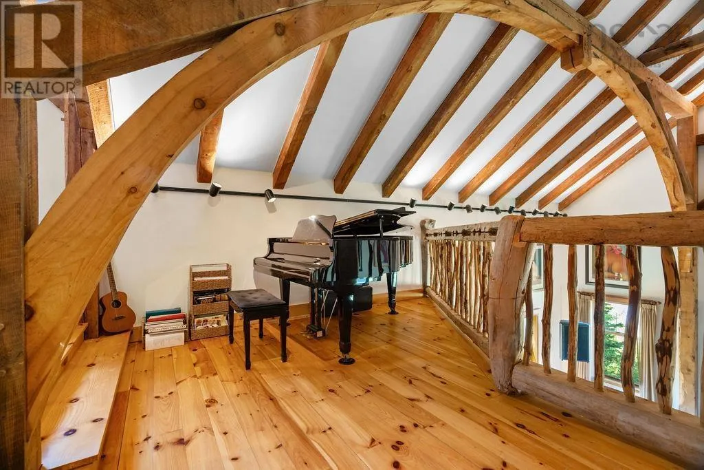 From Hwy 104, take exit 27 (Pine Tree) to Hwy 4 toward Merigomish. Right onto Woodburn Rd, Right onto Little Harbour, Left to Sea Oats and Right to Meadow Breeze. Uncover the unparalleled charm of this extraordinary 5-bedroom, 5-bath timber frame home, meticulously crafted from salvaged barn wood and adorned with beams from historic barns. Central to its design is a majestic white pine tree over a century old, adding a touch of heritage to this architectural gem spanning about 6,000 square feet. Currently serving as a family residence, this unique property also offers commercial potential. Located near Melmerby Beach and a short drive from Trenton airport, as well as within reach of the international airport and prestigious golf courses, this residence provides a serene escape with convenient access to amenities and attractions. The main level's open concept boasts cathedral ceilings, exposed beams, and exquisite wood floors. The kitchen features soapstone countertops, while a spacious dining room, office, and family room with a grand sandstone fireplace, offer stunning views of the Atlantic. The second floor includes a balcony overlooking the great room and the primary bedroom with a fireplace, walk-in closet, balcony, and lavish ensuite bathroom. The third floor offers another bedroom and sitting area. The lower level encompasses three bedrooms, two baths, a sauna, a games/exercise room, a theater, and multiple fireplaces. Each level's outdoor deck provides ample space for leisure and gatherings. The master bath showcases slate-tiled shower walls for added luxury. With its distinctive attributes, flexible layout, and prime location, this property offers a rare opportunity for those seeking a unique living or business environment. An outdoor fireplace on the main level enhances the property's appeal, creating a cozy setting for outdoor activities and relaxation. With 2.3 acres and access to a lovely beach to moor your boat and swim, enjoy East Coast living. More acreage is available and negotiable. Watch the fishers from your balcony and call them to have lobster delivered to your door. Explore the matterport here. (id:27476)