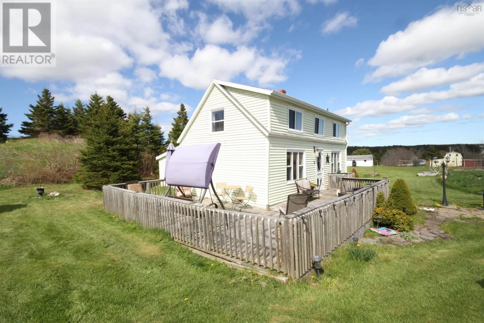 Hwy 247 to Lerues Nestled in a beautiful Maritime community on 3.45 acres, this quaint Century home offers the perfect cottage setting, "pretty as a picture" with distant ocean views from the upper bedroom windows. The home is beautifully maintained, featuring vinyl windows, forced air oil heating, and a fully furnished interior that exudes charm. The open-concept dining area boasts a large picture window, filling the space with natural light and offering lovely country views. A cozy living room, galley-style kitchen, and a main-floor bedroom provide a comfortable living experience. The updated 3-piece bath completes the home's inviting layout. The upper floor features 2 lovely spacious bedrooms. Ideally located, this property is just a stone's throw from Pt. Michaud Beach and St. Peters Marina, offering easy access to bike and walking trails, fishing, boating, and a wealth of outdoor activities. Whether youre looking for a peaceful retreat or a place to embrace the vibrant local lifestyle, this home is the perfect fit. (id:27476)