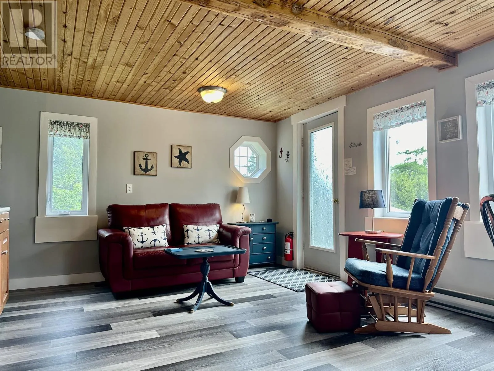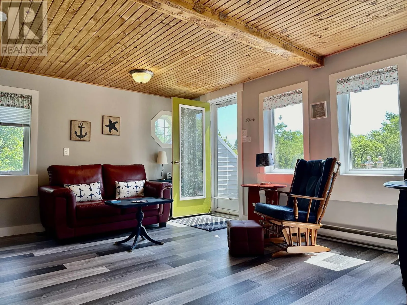 From Bridgewater to Highway 331 to Lahave. K/Just past Lahave Ferry. Property on the right (signed). Prepare to be impressed! Welcome to the "Nautical Nest", cute as a button, located in the scenic community of Lahave. Such a pretty drive along the Lahave River to this little piece of paradise, from the minute you turn on the stunning tree lined drive you will feel like you are entering the enchanted forest. The "Nautical Nest" does not disappoint, you will love the privacy and water views! This open concept, one bedroom is set on a secluded 3 acre lot surrounded with natural beauty and offers the perfect escape from everyday life. Upon entering the inviting front door you will be greeted with wooden ceilings and an open living / kitchen and dining area, which offers a water view. Lovely bedroom and spacious bath, the coziness will make you feel right at home. Fully furnished, you will just need to pack a bag. Step outside to the expansive front deck, an ideal space to enjoy your morning coffee or dinner with evening sunset views! Did I mention the view! There is also a 12' x 11' shed for storage or to convert into a charming bunkie, for family visits. The level lot offers ample space for outdoor activities. This property would be ideal for a smaller home or used as a cottage, or perhaps re-situate and use as an in-law suite and build a new home~ lots of possibilities. Fort Point Museum and beach is located across the road~ great space for a relaxing walk. Minutes to the famous Lahave Bakery, Lahave and some of the most beautiful beaches the South Shore has to offer, including Crescent, Rissers & Green Bay. Or enjoy a lovely dinner at "Ospreys Nest Public House" minutes away in Petite Riviere or catch the Lahave Ferry and discover the cuisine that the UNESCO Town of Lunenburg has to offer. Such a great location! (id:27476)