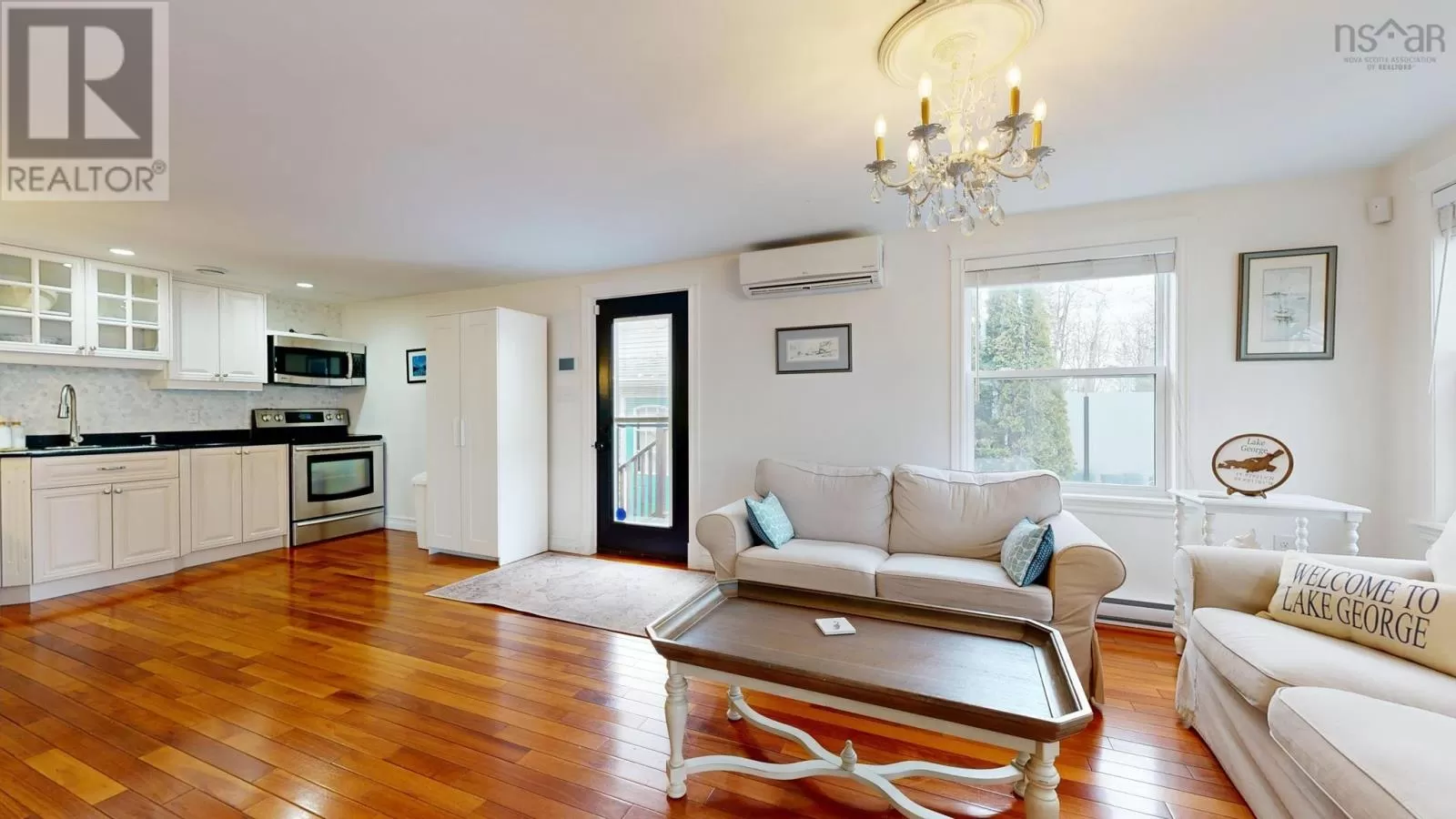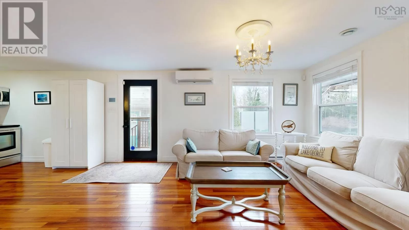 From North River road Take a right onto Beach Hill Road then continue straight see for sale sign on the left. Welcome to your luxurious year-round bungalow or your extravagant weekend retreat tucked away in a peaceful cove on Lake George, one of Nova Scotias most stunning lakes. This low-maintenance property is beautifully finished and designed for both comfort and ease of ownership. Featuring 2 bedrooms and 2 bathrooms, including a 3-piece ensuite, it offers all the luxuries of home in a serene lakeside setting. Inside, enjoy breathtaking lake views and high-end finishes, including hardwood and tile floors and Corian countertops. A heat pump ensures year-round comfort, keeping you cool in the summer and warm in the winter. From the lake to the spacious deck, this property is made for unforgettable summers perfect for hosting friends and family. An outdoor shower with hot and cold water makes it easy to rinse off after a swim or paddle, keeping the interior fresh and clean. The property also includes a shed for storage and a Bunkie for extra storage, making it an ideal space for both relaxation and entertaining. A rare opportunity to own a low-maintenance luxury bungalow, tucked away in a cove on Lake George (id:27476)