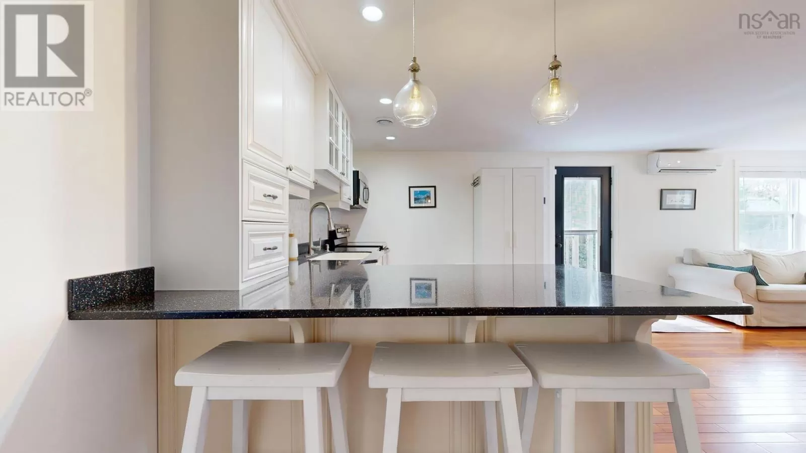 From North River road Take a right onto Beach Hill Road then continue straight see for sale sign on the left. Welcome to your luxurious year-round bungalow or your extravagant weekend retreat tucked away in a peaceful cove on Lake George, one of Nova Scotias most stunning lakes. This low-maintenance property is beautifully finished and designed for both comfort and ease of ownership. Featuring 2 bedrooms and 2 bathrooms, including a 3-piece ensuite, it offers all the luxuries of home in a serene lakeside setting. Inside, enjoy breathtaking lake views and high-end finishes, including hardwood and tile floors and Corian countertops. A heat pump ensures year-round comfort, keeping you cool in the summer and warm in the winter. From the lake to the spacious deck, this property is made for unforgettable summers perfect for hosting friends and family. An outdoor shower with hot and cold water makes it easy to rinse off after a swim or paddle, keeping the interior fresh and clean. The property also includes a shed for storage and a Bunkie for extra storage, making it an ideal space for both relaxation and entertaining. A rare opportunity to own a low-maintenance luxury bungalow, tucked away in a cove on Lake George (id:27476)