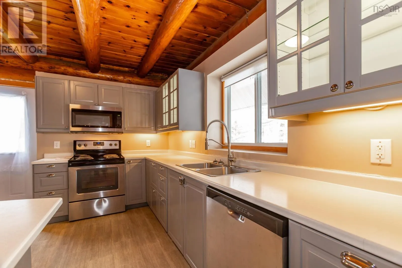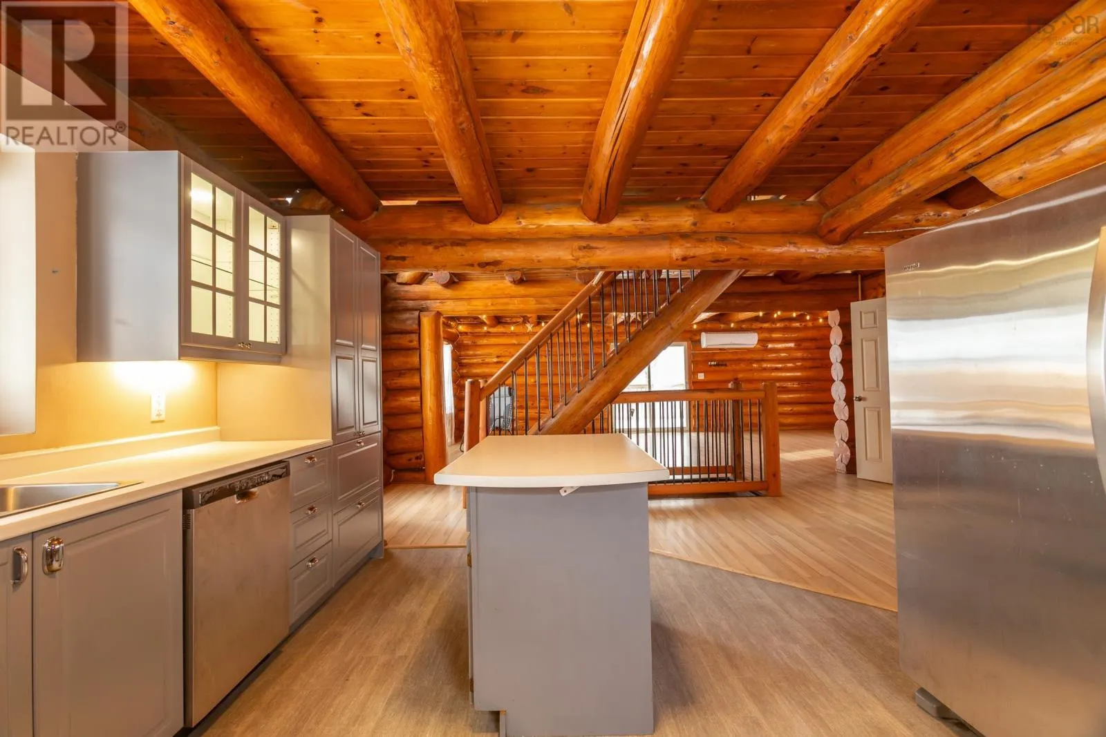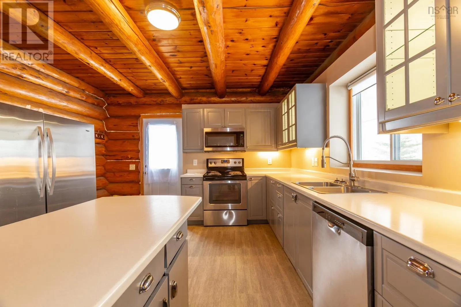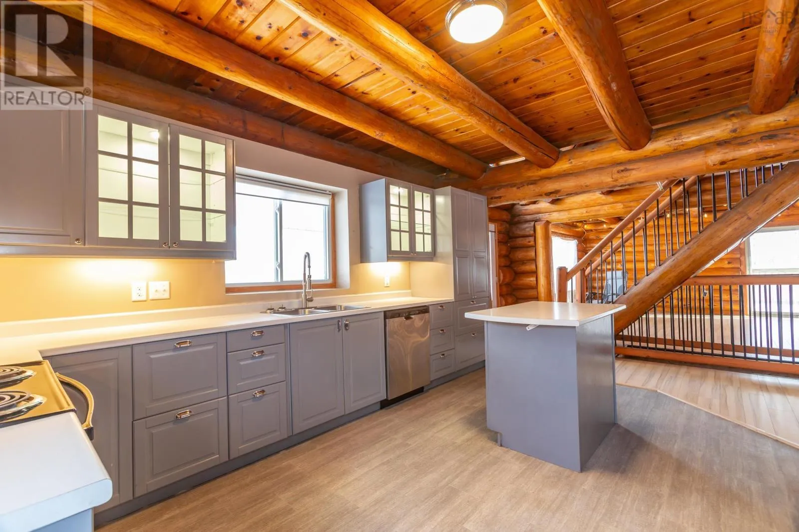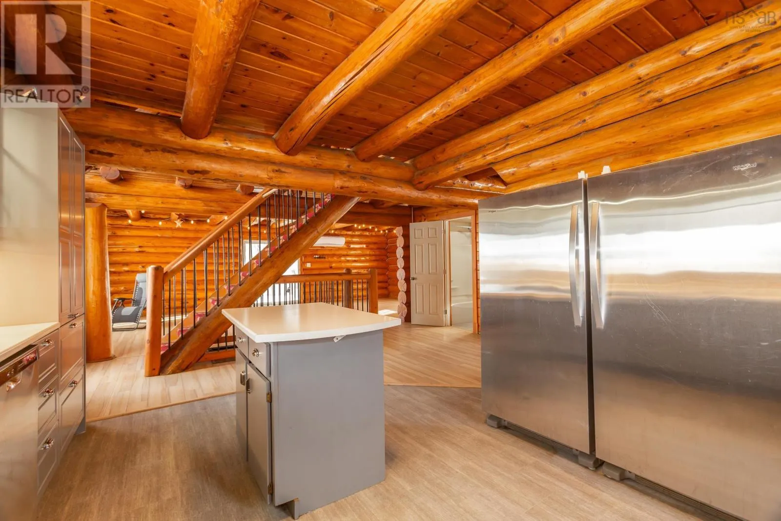 Aylesford Road from Highway 1 then left on North River Road or Hwy 12 from Kentville to Casey Corner then right on North River Rd. Directly across from Lake George. Looking for the real thing? This beautifully updated 3-bedroom, 2-bath authentic log home offers 2,000 sq.ft. of living space plus a full unfinished basement with rough in for a third bath, ideal for a rec room or extra bedroom. Situated on a spacious 28,000 sq.ft. lot just across from Lake George Beach and Boat Launch. Recent upgrades include a modern new kitchen with quality appliances, new vinyl and laminate flooring, high-end washer and dryer, new doors and windows, over and under decks, and upgraded plumbing and electrical with 220 panels. Efficient heating is provided by two heat pumps with electric baseboard backup. Outdoor lovers will appreciate the hidden hiking trail starting in the backyard and proximity to Aylesford Lake Park, only 2km away. High-speed fibre optic internet is available, with Greenwood and Kentville just 20-25 minutes away. Nestled among a friendly mix of cottages and year-round homes, this property perfectly blends rustic charm with modern convenience-ready for you to move in and enjoy. See feature sheet. (id:27476)